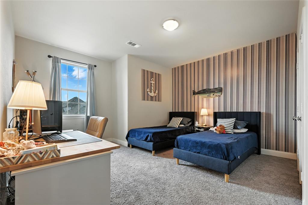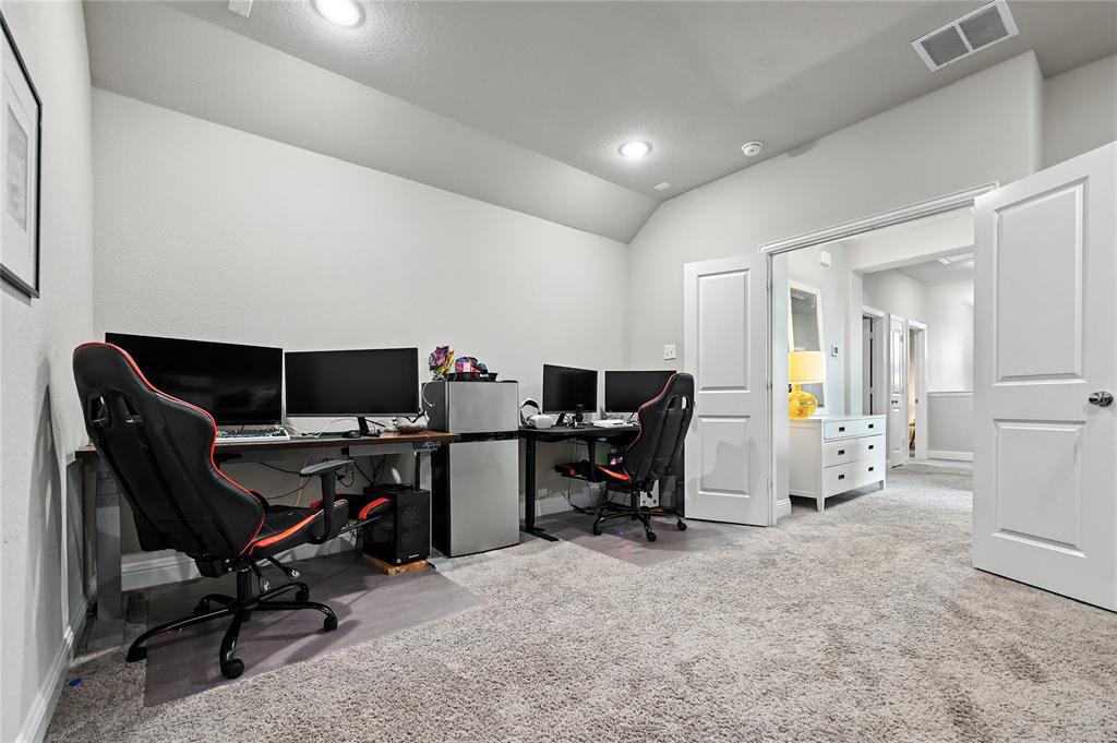Step into style and comfort with this spacious 4-bedroom, 2.5-bath home in Forney’s highly sought-after Grayhawk community. Built in 2020, this well-designed residence offers 2,669 sq. ft. of living space with an open floor plan perfect for everyday living and entertaining. The main level features a bright and welcoming living room with a cozy fireplace, a dedicated home office, and a modern kitchen complete with quartz countertops, a large island, stainless-steel appliances, walk-in pantry, and an eat-in dining area. The primary suite is conveniently located downstairs with a spa-like bath featuring dual sinks, a garden tub, separate shower, and generous walk-in closet. Also on the main floor is an appointed office that can be used as flex space, a half bath, and laundry room. Upstairs, you’ll find a spacious game room and three additional bedrooms along with a full bath. Community amenities include a pool, parks, and scenic walking trails. Conveniently located near Forney ISD schools, shopping, and dining with easy access to major highways. This move-in ready home blends modern features with family-friendly living—don’t miss your chance to make it yours!
