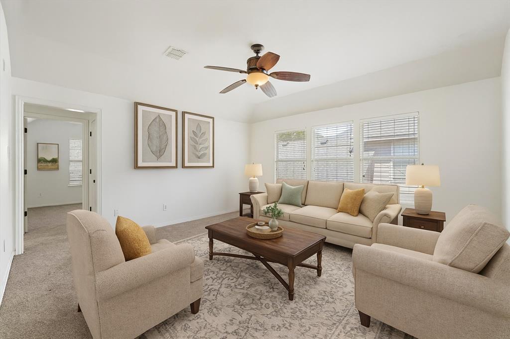 Welcome to this beautiful home located in the highly sought-after Oakmont community in Corinth, Texas, zoned for Hawk, Crownover and Guyer. This property offers 4 bedrooms and 2.5 bathrooms, 2 living spaces, as well as 2 dining spaces. Step inside to find an open floor plan, featuring a formal dining room and in home office, creating a warm and inviting atmosphere. The kitchen boasts a bar, breakfast area and plenty of counter and cabinet space, perfect for both everyday living and entertaining. The primary suite features, stunning windows, as well as a walk-in closet, and large spa-like bathroom with soaking tub and separate shower, providing the ideal retreat at the end of the day. Additional bedrooms offer flexibility for family, or guests, and the living areas are designed for both comfort and function. Step outside to enjoy your fully fenced backyard, perfect for relaxing or hosting gatherings. Living in Oakmont means having a community around you, and access to amenities such as a golf course, clubhouse, pool, and parks, while also being conveniently located near schools, shopping, dining, and I35.