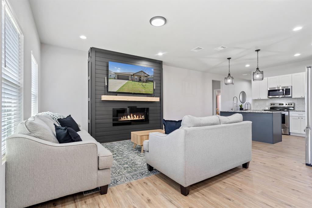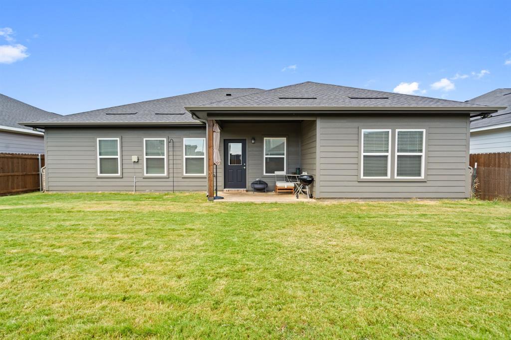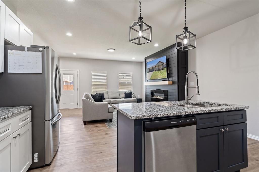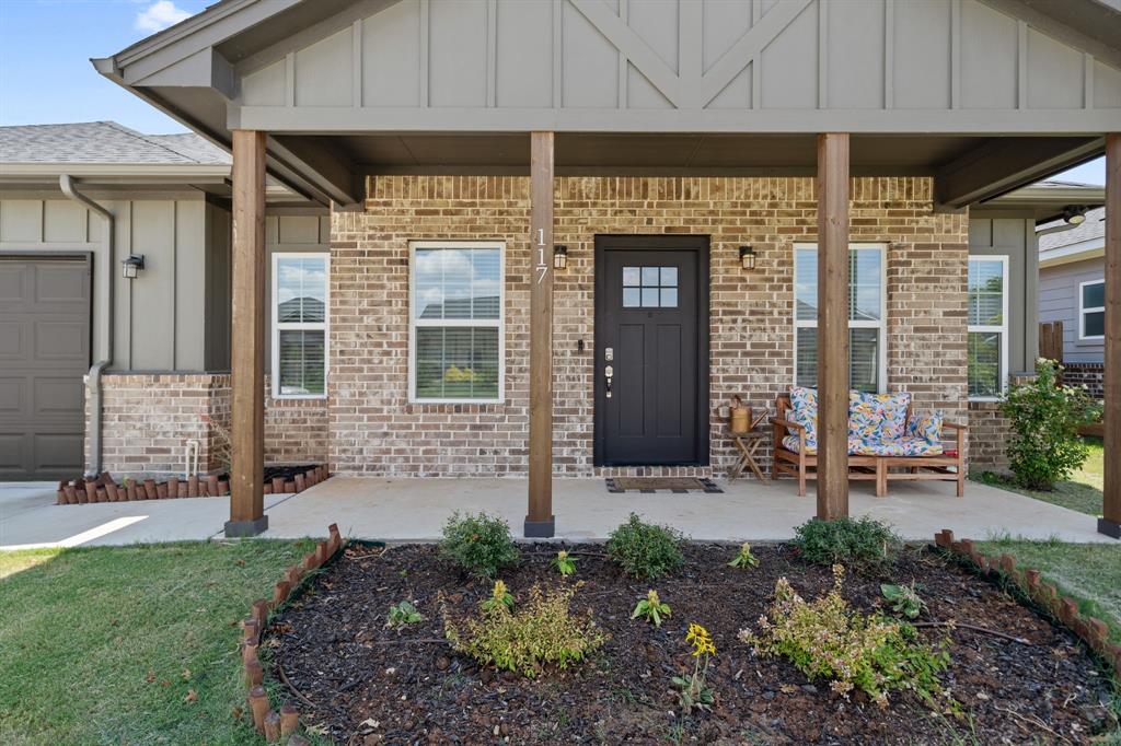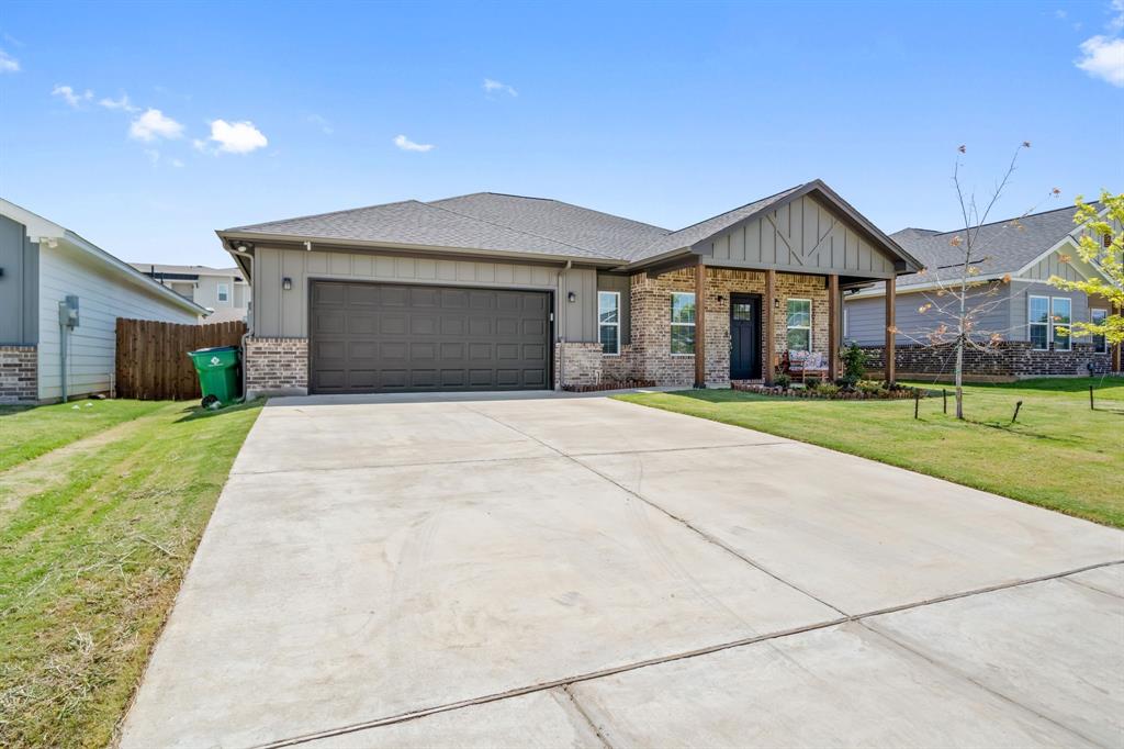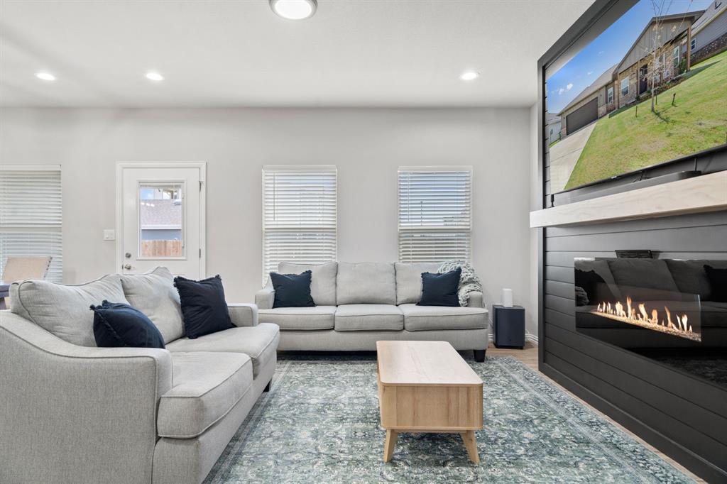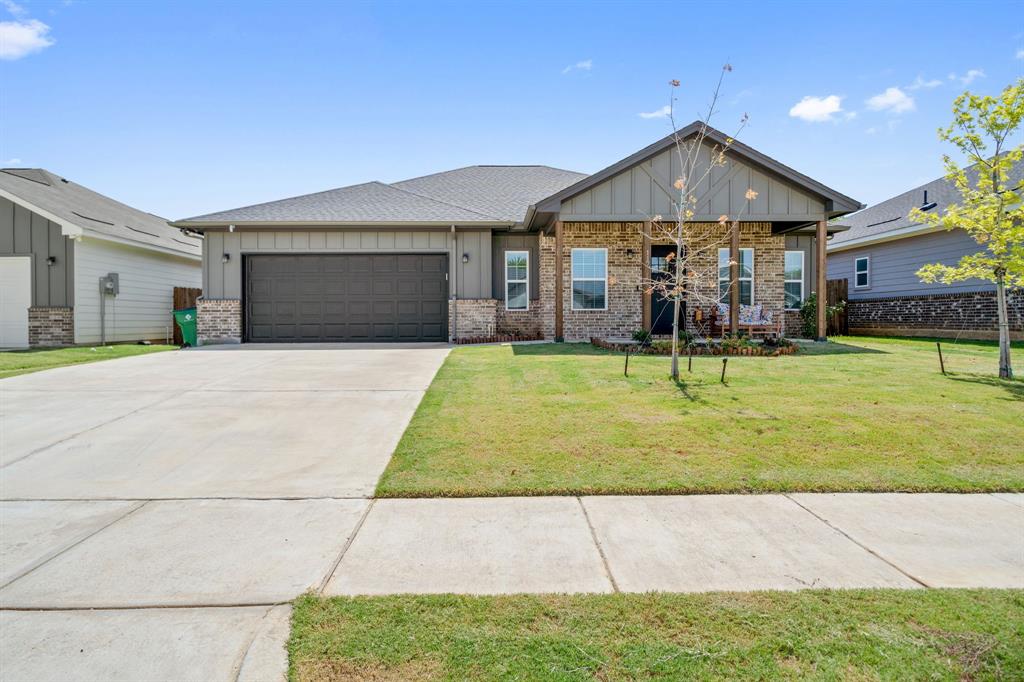 Welcome home to this darling single-story gem, nestled in the small and quaint Magnolia Estates community of Crowley. Boasting picture-perfect curb appeal and an inviting front porch, this home makes a warm first impression. The thoughtfully curated floor plan is perfect for both family living and entertaining, as it seamlessly connects the living, kitchen, and dining areas. Prepare meals in the stylish and functional kitchen, featuring crisp white cabinetry that contrasts beautifully with the granite countertops and stainless-steel appliances. The family room is filled with natural light and accented by a sleek electric fireplace with a striking shiplap surround—creating a cozy yet open space for everyday relaxation and hosting guests. Retreat to the oversized primary suite, featuring a tray ceiling and lovely bath with frameless marble shower and spacious walk-in closet. The secondary bedroom upon entry is tucked behind double doors and can easily serve as a home office. Relax under the covered patio in the private backyard, with plenty of space for kids and pets to play. The home is ideally positioned for educational excellence, with elementary, middle, and high schools just minutes away. Excellent location offers easy access to major thoroughfares and the newly renovated downtown with a variety of restaurants, shopping and recreation.