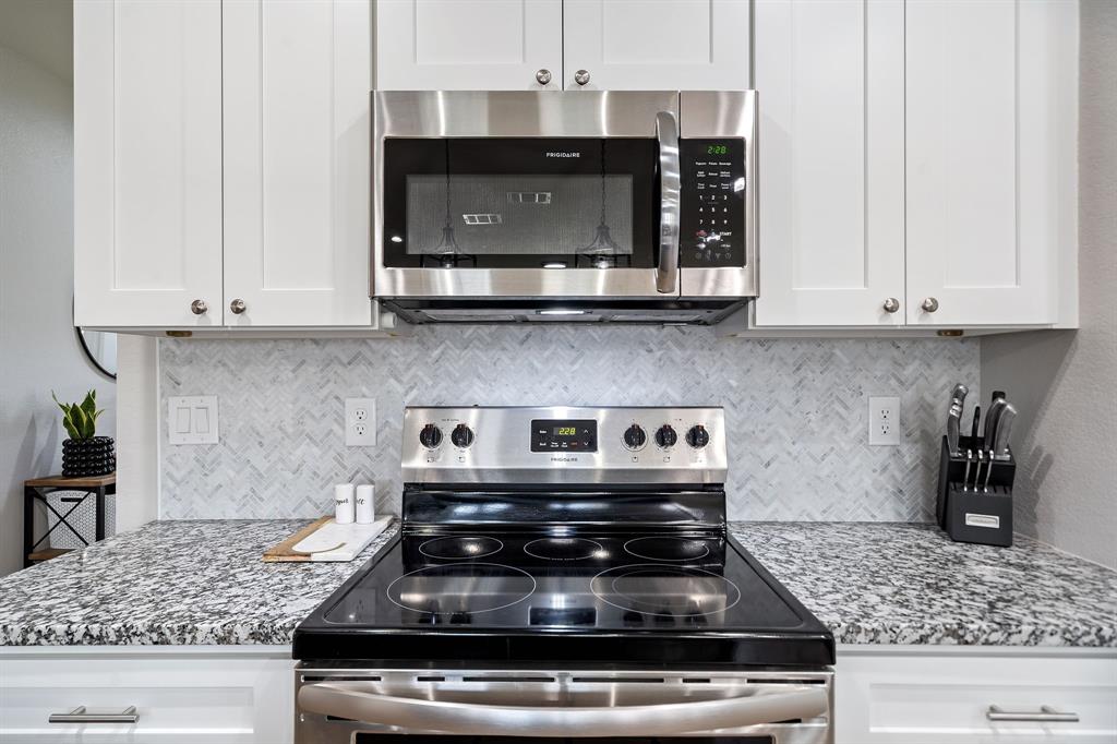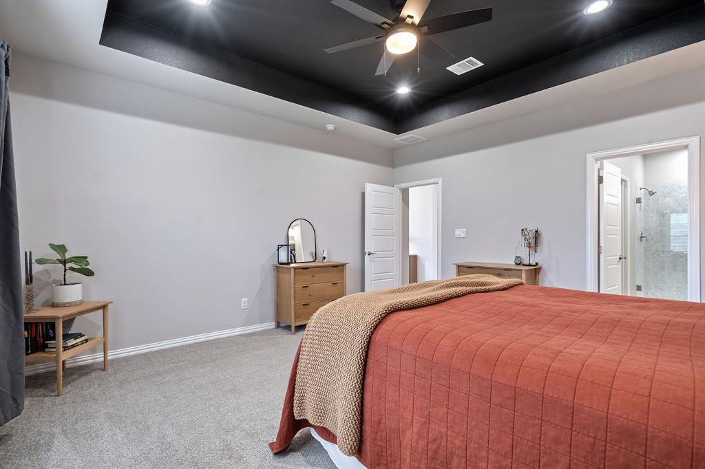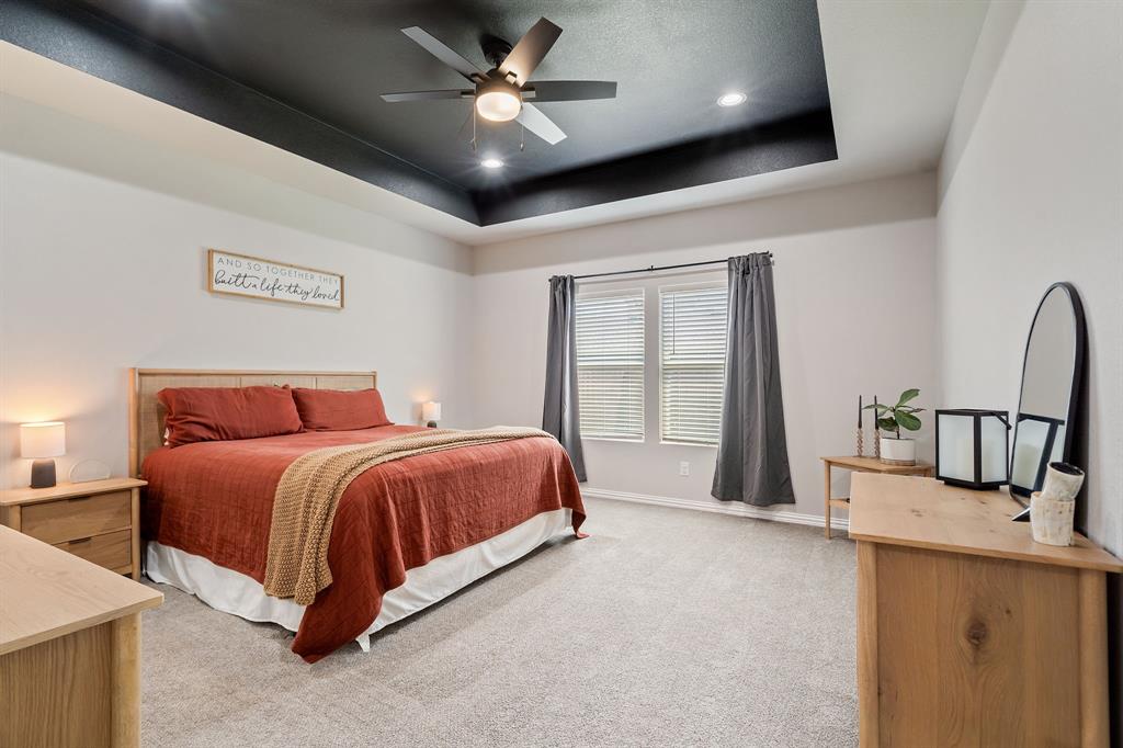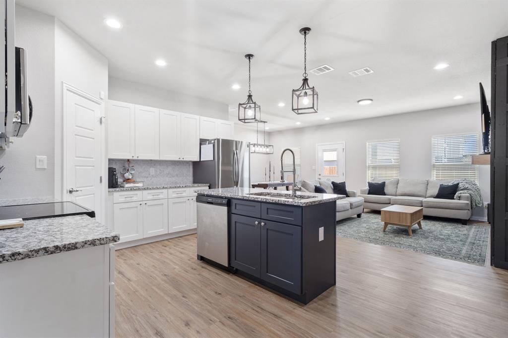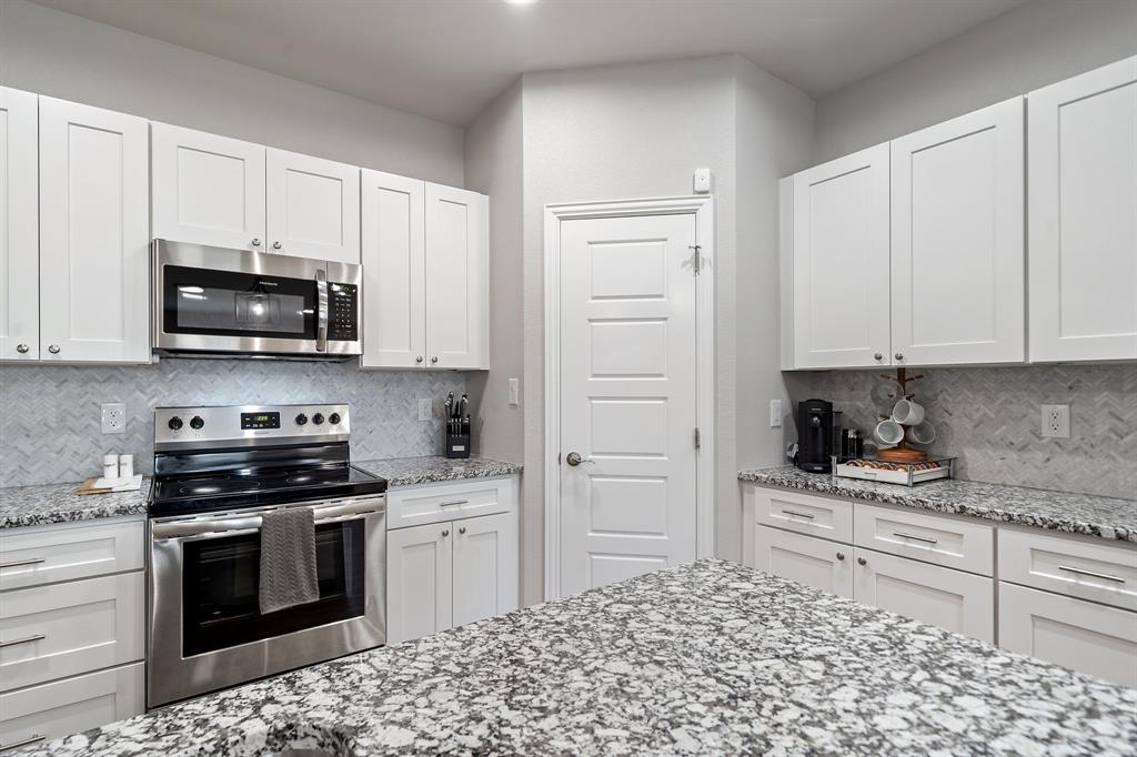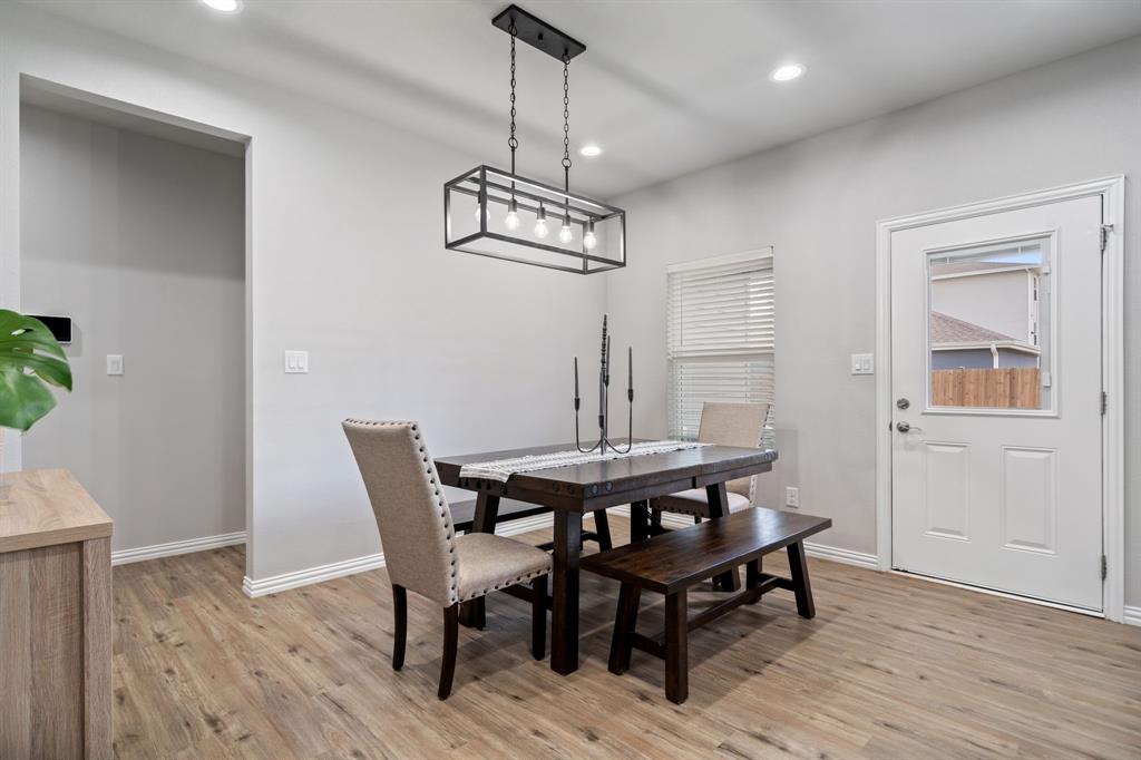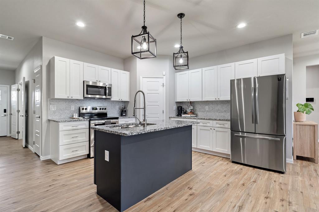 Welcome home to this darling single-story gem, nestled in the small and quaint Magnolia Estates community of Crowley. Boasting picture-perfect curb appeal and an inviting front porch, this home makes a warm first impression. The thoughtfully curated floor plan is perfect for both family living and entertaining, as it seamlessly connects the living, kitchen, and dining areas. Prepare meals in the stylish and functional kitchen, featuring crisp white cabinetry that contrasts beautifully with the granite countertops and stainless-steel appliances. The family room is filled with natural light and accented by a sleek electric fireplace with a striking shiplap surround—creating a cozy yet open space for everyday relaxation and hosting guests. Retreat to the oversized primary suite, featuring a tray ceiling and lovely bath with frameless marble shower and spacious walk-in closet. The secondary bedroom upon entry is tucked behind double doors and can easily serve as a home office. Relax under the covered patio in the private backyard, with plenty of space for kids and pets to play. The home is ideally positioned for educational excellence, with elementary, middle, and high schools just minutes away. Excellent location offers easy access to major thoroughfares and the newly renovated downtown with a variety of restaurants, shopping and recreation.