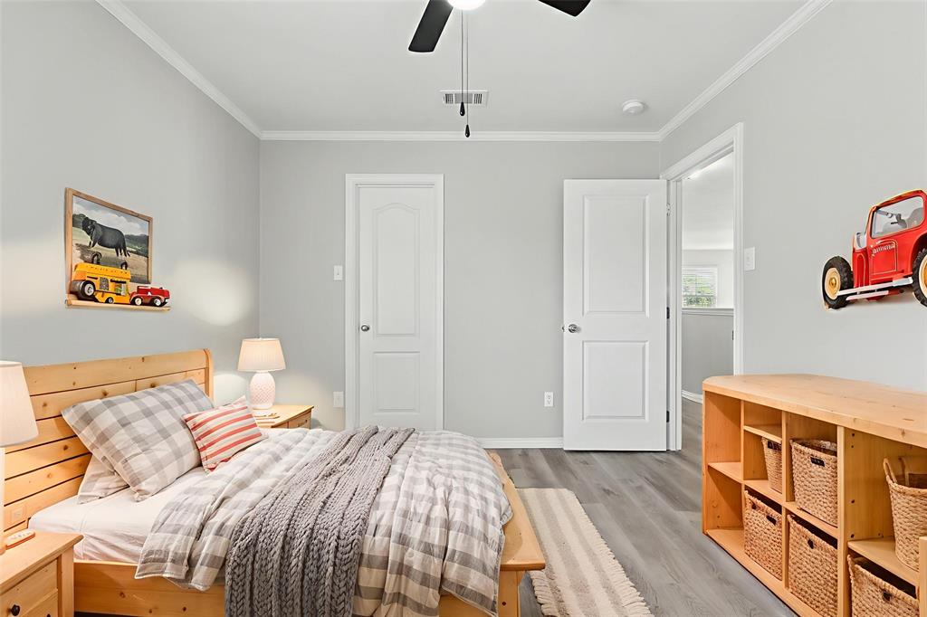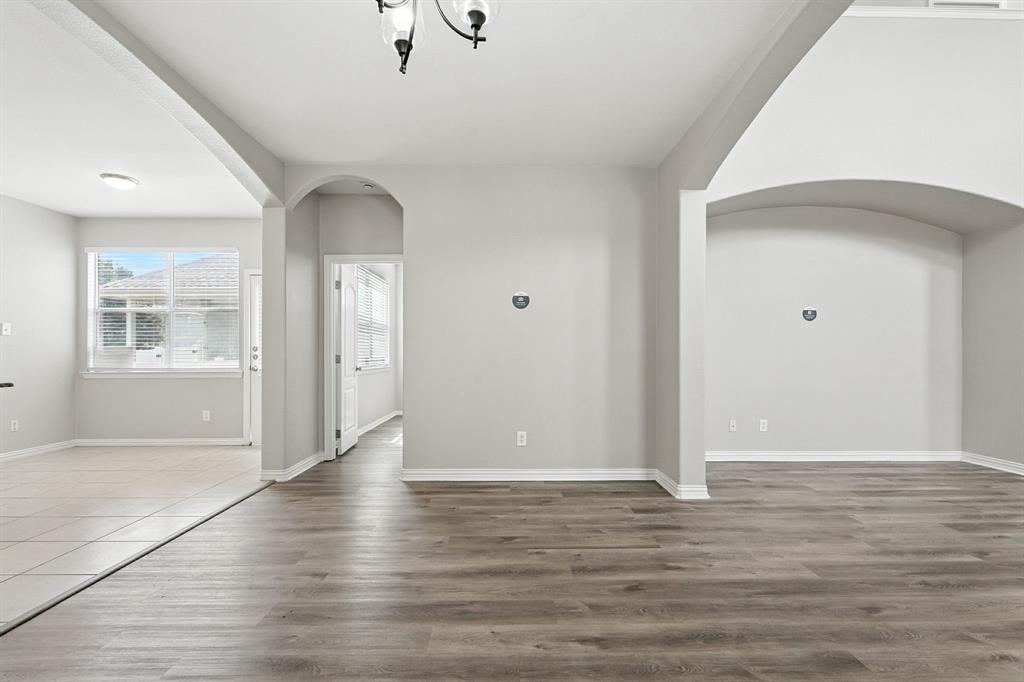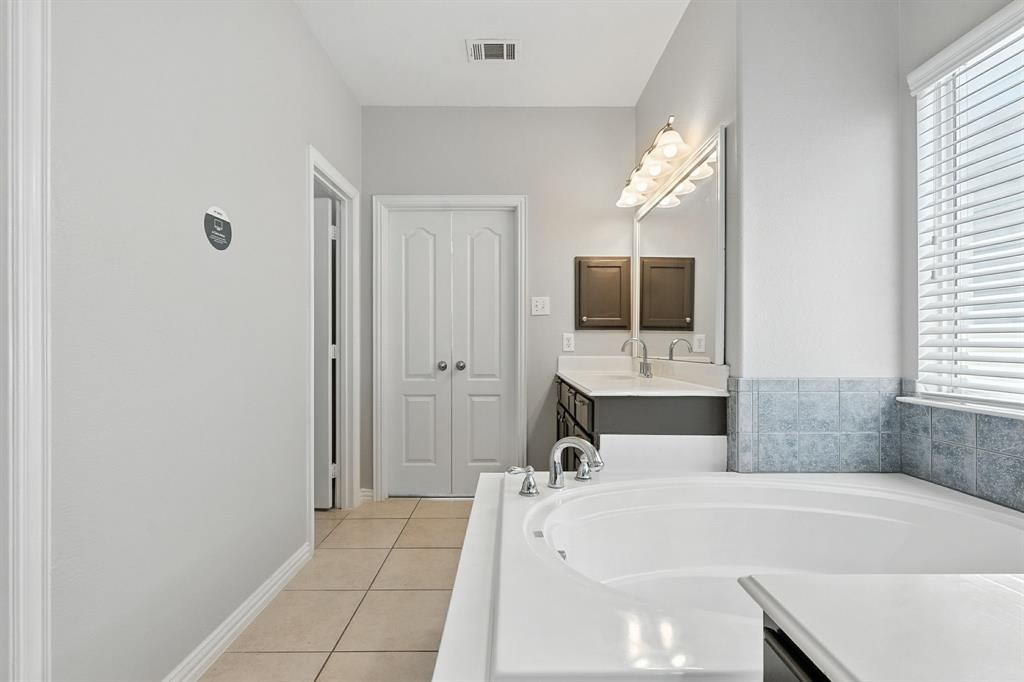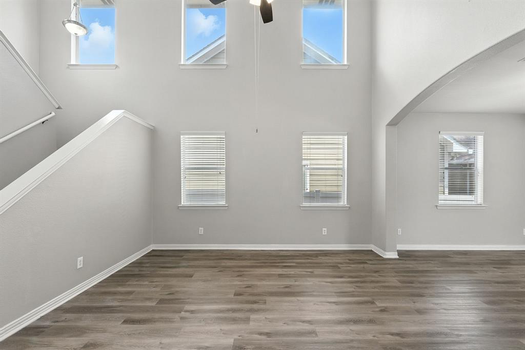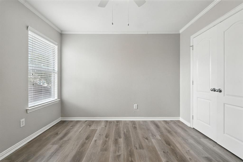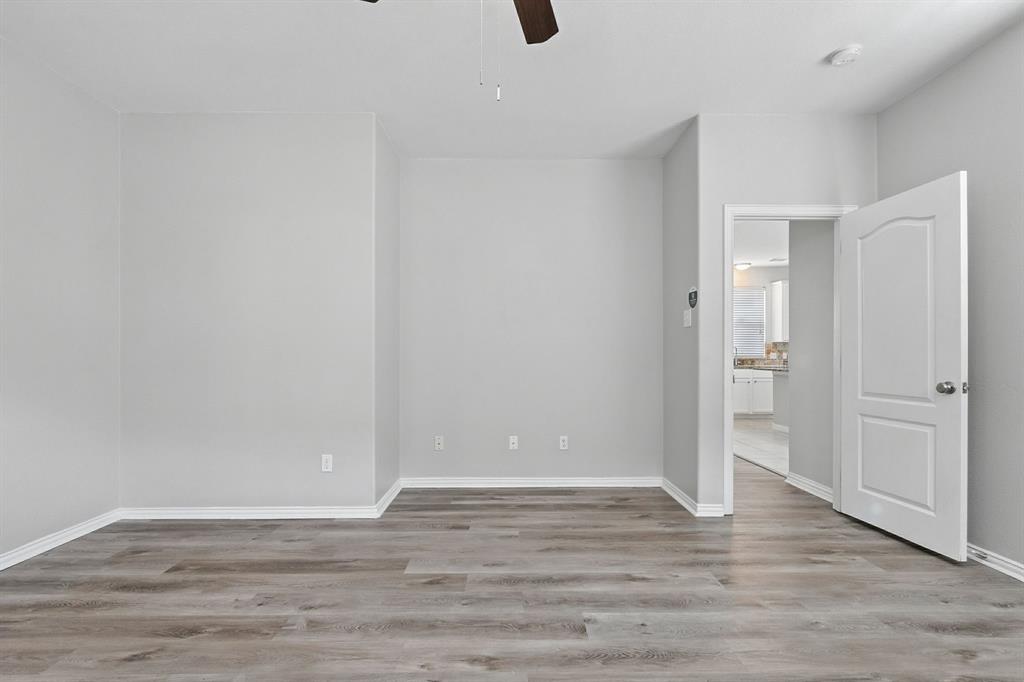 Upstairs, a generously sized primary suite includes a dual-sink vanity, soaking tub, separate shower, and walk-in closet. Additional bedrooms offer flexibility for guests, home office, or hobby space. A second living area upstairs can serve as a game room or cozy retreat. Enjoy morning coffee or weekend grilling on the covered patio, overlooking a backyard with room to run or relax.