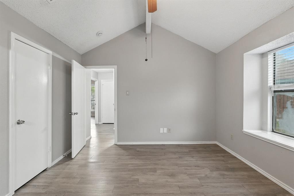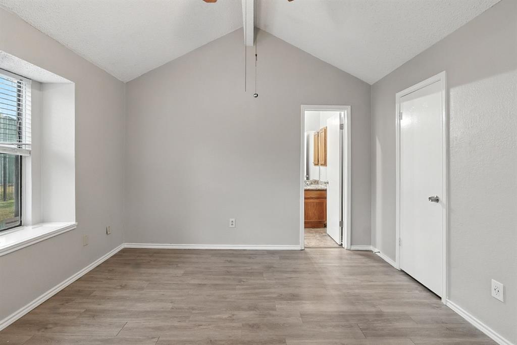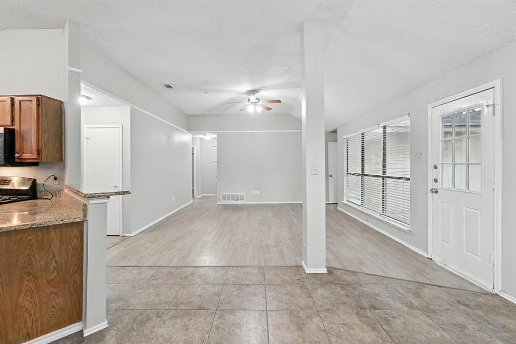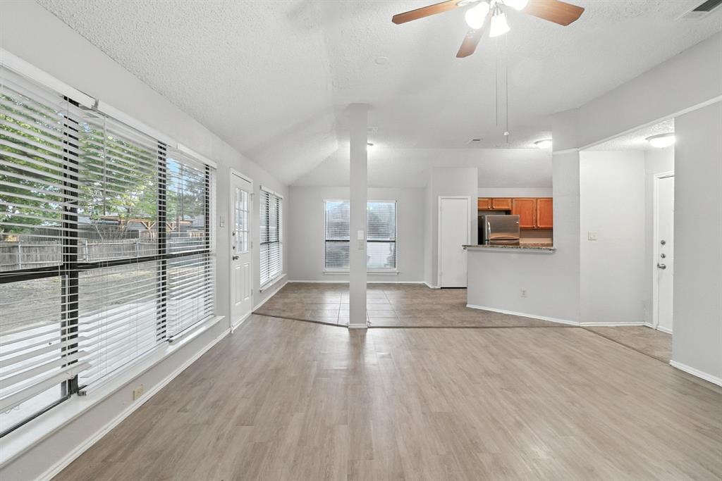 Charming 3-bedroom, 2-bath home sits on a quiet cul-de-sac in Rowlett’s Lakecrest neighborhood. Inside, you’ll find an open-concept layout with vaulted ceilings, great natural light, and a spacious living room that flows into the dining area and kitchen. The home has been recently refreshed with full interior paint, giving it a bright and updated feel throughout. The primary suite includes an en-suite bath and walk-in closet, while the secondary bedrooms offer flexible space for guests or a home office. Enjoy a private, fenced backyard and a two-car garage. One or more photos have been virtually staged.