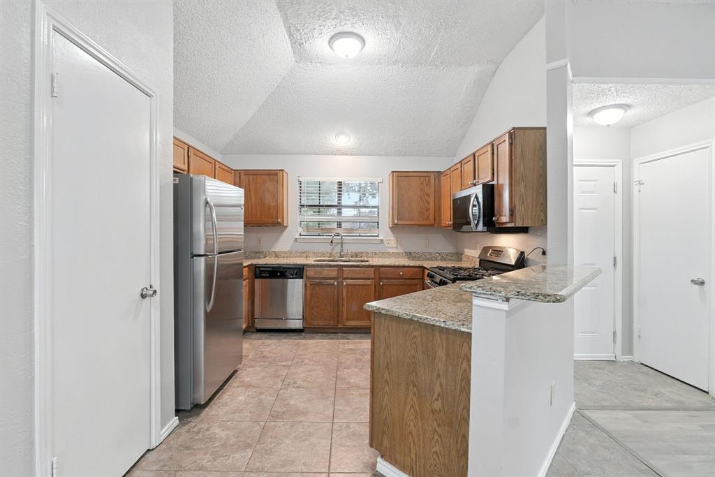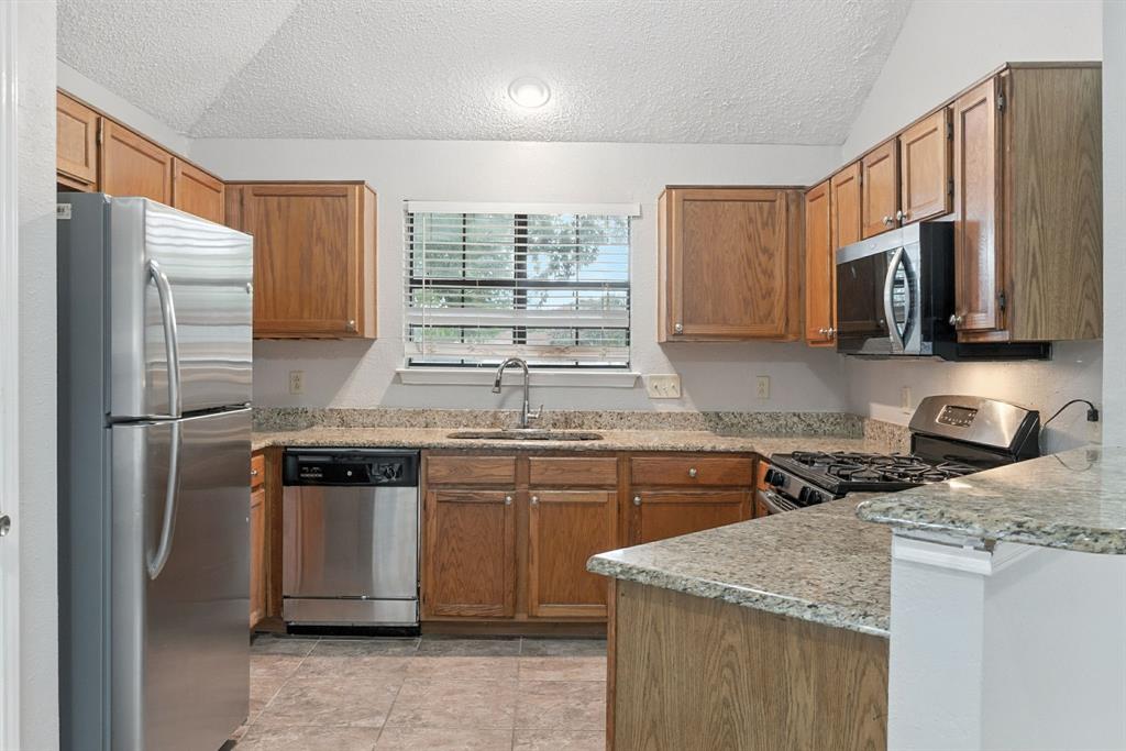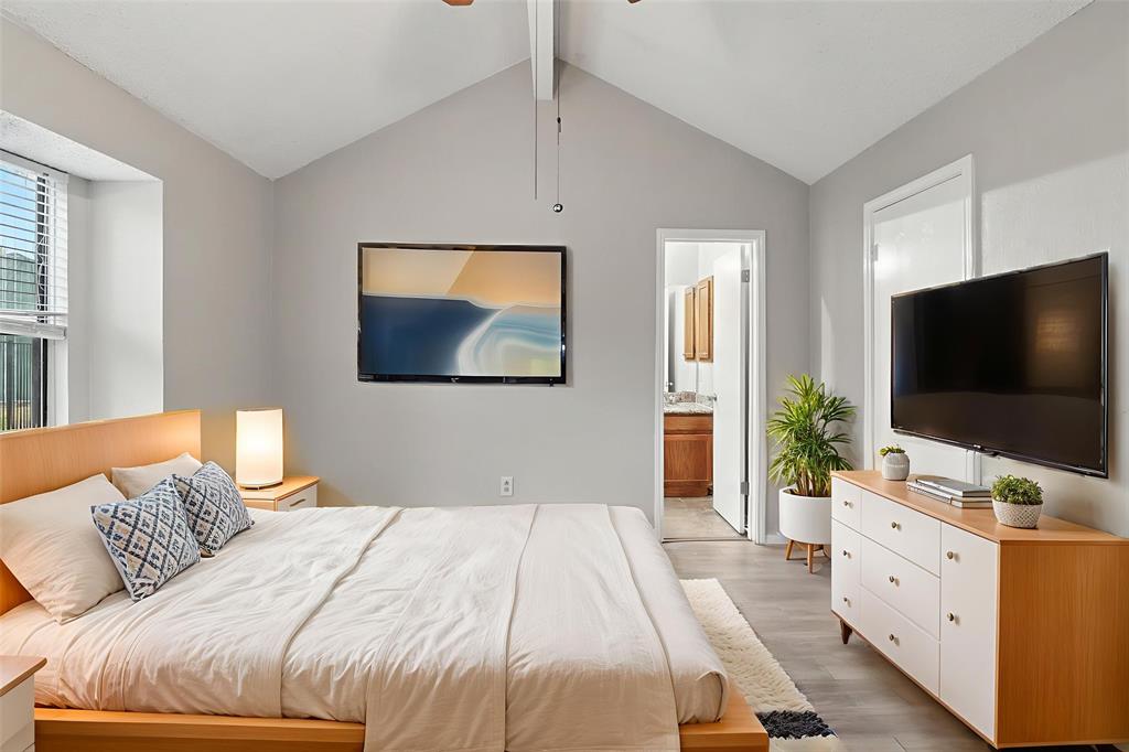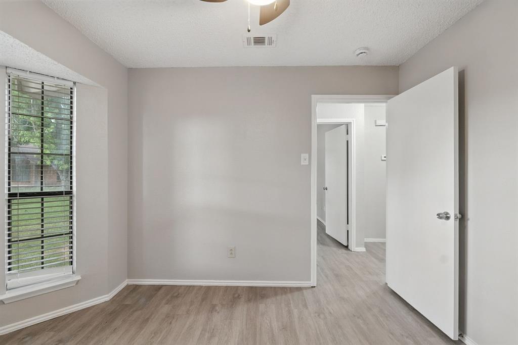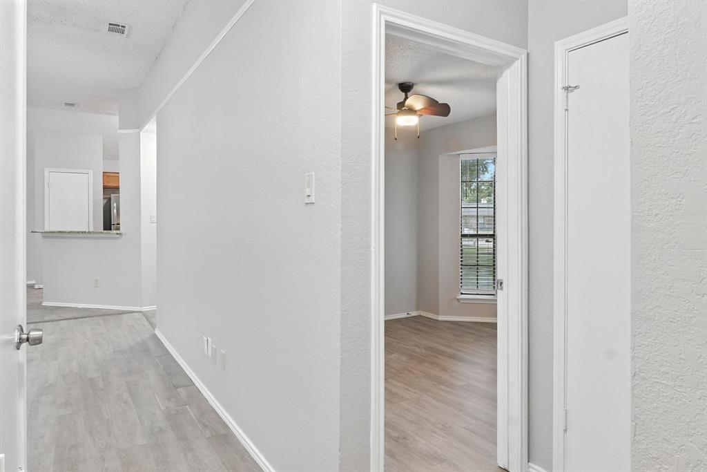 Charming 3-bedroom, 2-bath home sits on a quiet cul-de-sac in Rowlett’s Lakecrest neighborhood. Inside, you’ll find an open-concept layout with vaulted ceilings, great natural light, and a spacious living room that flows into the dining area and kitchen. The home has been recently refreshed with full interior paint, giving it a bright and updated feel throughout. The primary suite includes an en-suite bath and walk-in closet, while the secondary bedrooms offer flexible space for guests or a home office. Enjoy a private, fenced backyard and a two-car garage. One or more photos have been virtually staged.