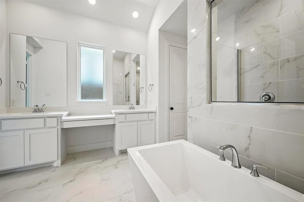 Stunning 1 story home, offering 4 bedrooms, 4.5 baths, study, entertainment room, & 3-car tandem garage. Offering 12 ceilings, 8ft. interior doors, wood in entry, extended entry including hallways, family room, garage entry, rear entry, kitchen, nook, pantry and study. Built In double oven and microwave, 5 burner gas cooktop and pot and pan drawers. Patio with a greenbelt view, freestanding tub with separate shower in primary bath!!! Greenbelt lot with lots of trees!!