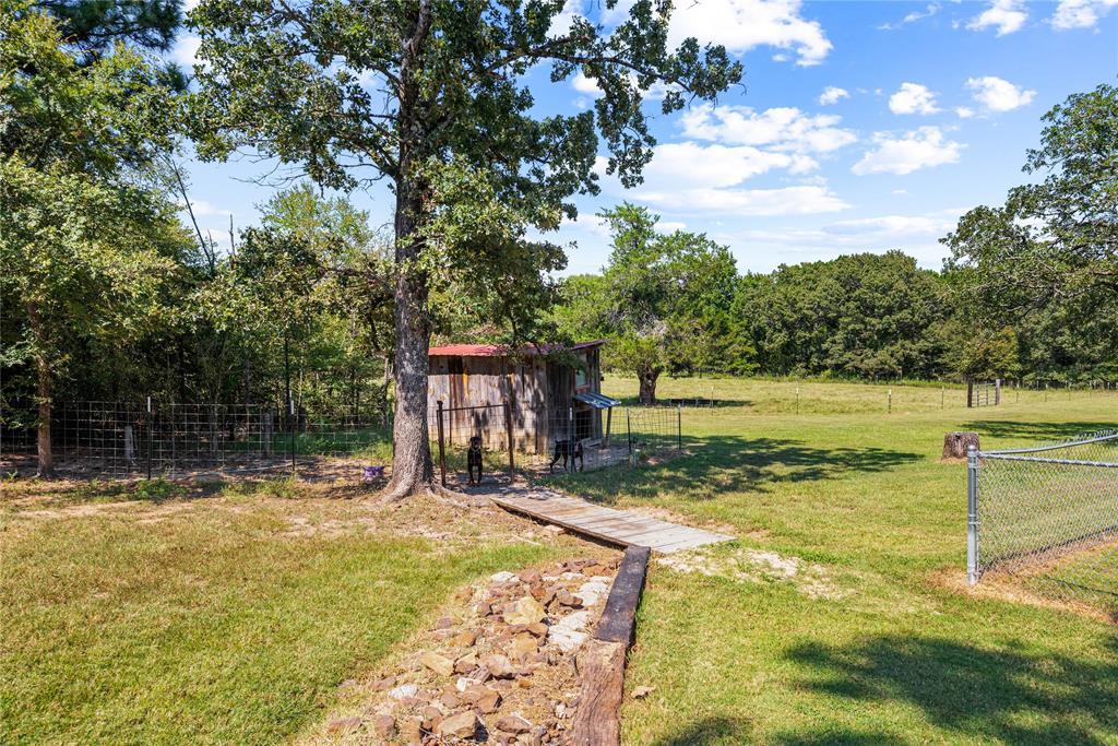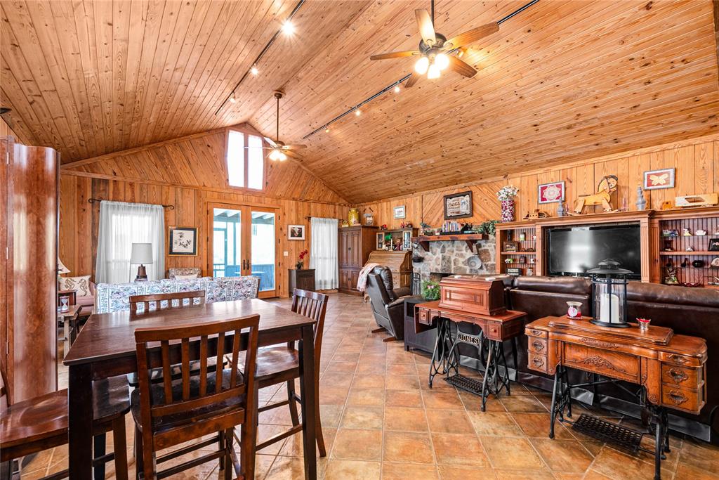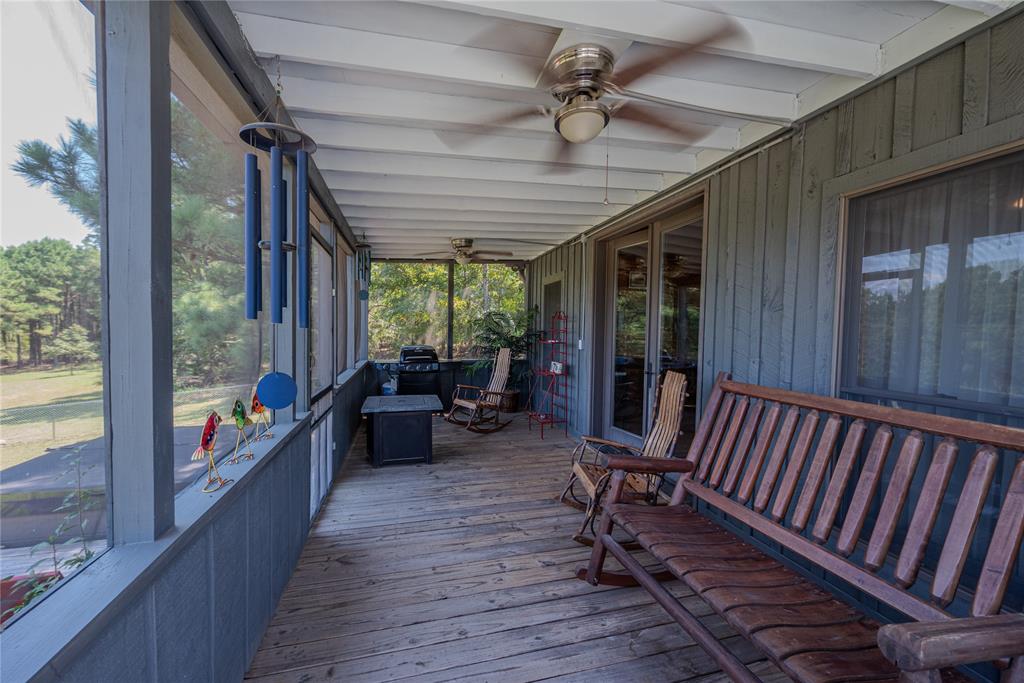 Set on 30 acres of rolling terrain, this 1,968 sq. ft. 2-bedroom, 2-bath home blends rustic character with modern comfort. The open floorplan is filled with thoughtful details—refurbished antique doors, handmade cabinetry, updated fixtures, and abundant storage throughout. The kitchen features a propane gas stovetop, while the home’s propane system also supports the fireplace, water heater, and serves as backup to the HVAC heat pump. A screened back porch and wrap-around deck provide the perfect setting for entertaining or simply soaking in the peaceful views. The property is fully fenced with 5-strand barbed wire and includes two ponds. Outbuildings abound: a 60x30 insulated shop with 200-amp service, half bath, and two versatile rooms; a detached insulated garage; tractor shed; insulated dog kennel; plus an RV cover with 50-amp service, water, and sewer hookups. With improved pastures ideal for cattle or horses and cleared trails leading to the back acreage, this property offers both functionality and seclusion. A rare opportunity to enjoy country living with room to work, play, and truly spread out.