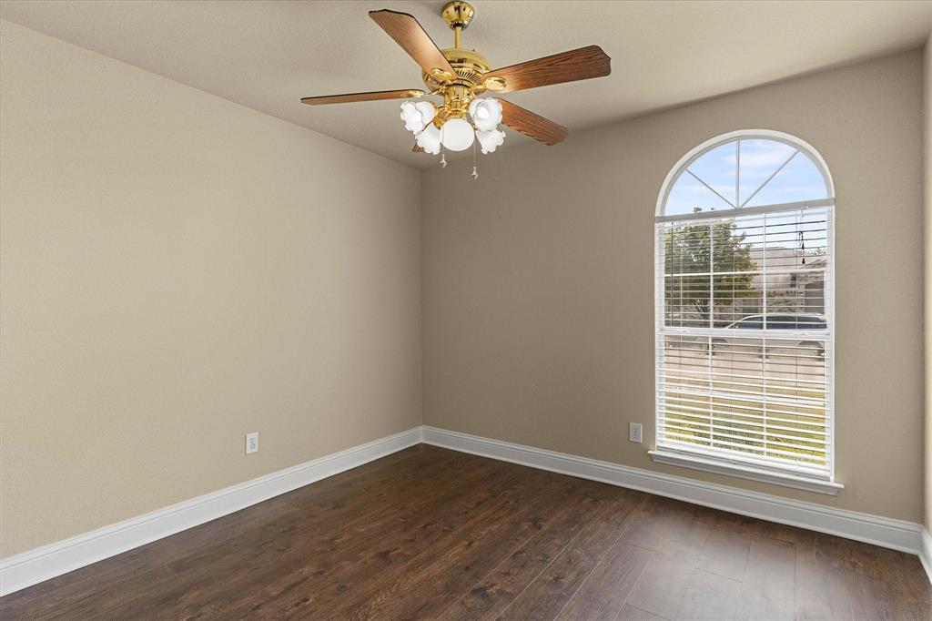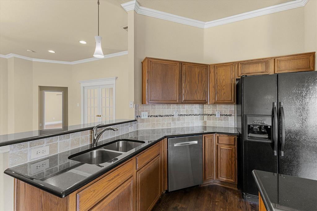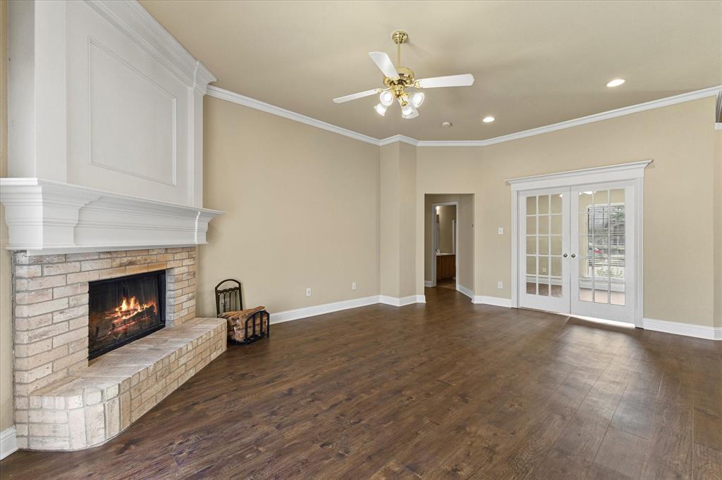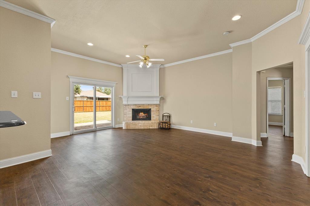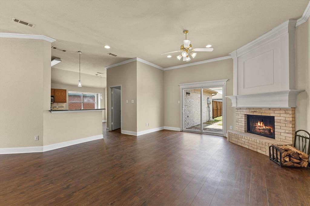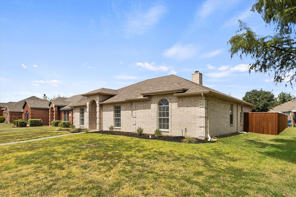 This move-in ready beauty showcases a balanced blend of comfort and function. It features crown molding, freshly touched-up neutral paint and decorative ledges. Recently installed luxury vinyl plank flooring flows throughout the common areas and bedrooms, well-suited for a busy lifestyle. The formal dining room is a versatile space that could also be used as a home office or second living area. The island kitchen offers an abundance of cabinetry, granite countertops, tumbled stone backsplash with a mosaic accent strip, stainless appliances including a smooth top range and Bosch dishwasher, pantry and sunny breakfast nook with a cozy window seat. The refrigerator can stay! The warm and inviting Family Room, with a corner wood-burning fireplace, is the heart of the home. The generously sized primary suite boasts an ensuite bath with dual sinks, sit-down vanity, soaking tub, recently renovated separate shower and a large walk-in closet. The secondary bedrooms both have ceiling fans and share the hall bath. Bedroom 2 would make a perfect home office, craft or playroom with its French doors. The backyard is ready for outdoor entertaining with its open patio ideal for grilling. The backyard is large enough to accommodate areas for kids, pets and adults! There is even a handy storage shed for your tools and lawn equipment. It's in close proximity to I-30, SH-66 and PGBT, allowing different options for your commute. Conveniently located near schools, parks, shopping, dining, nature areas, Sapphire Bay and beautiful Lake Ray Hubbard. Updates include: wood-look LVP flooring, cedar privacy fence (2025); primary bath shower enclosure and frameless glass door (2024); gutters (2022); foundation repairs with transferrable lifetime warranty (2019); HVAC system (2017); roof (2016).
