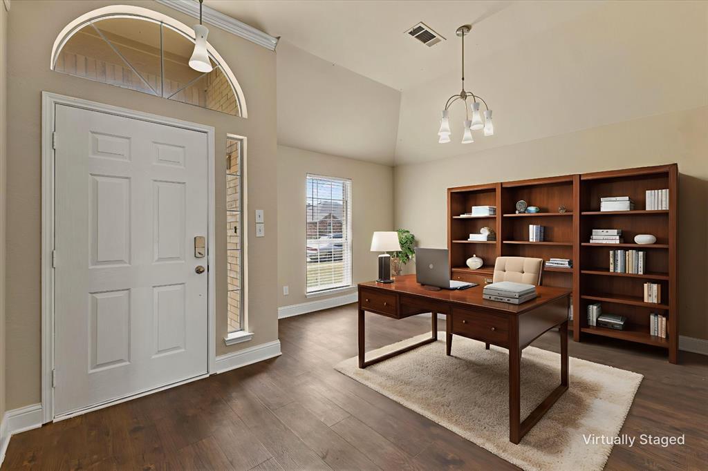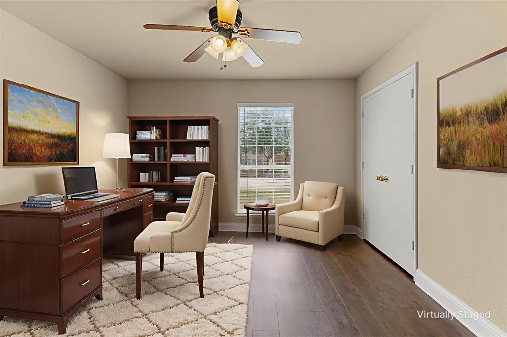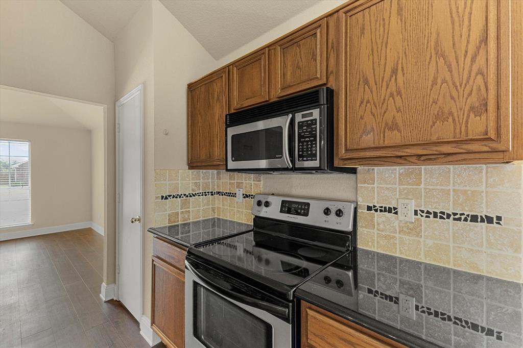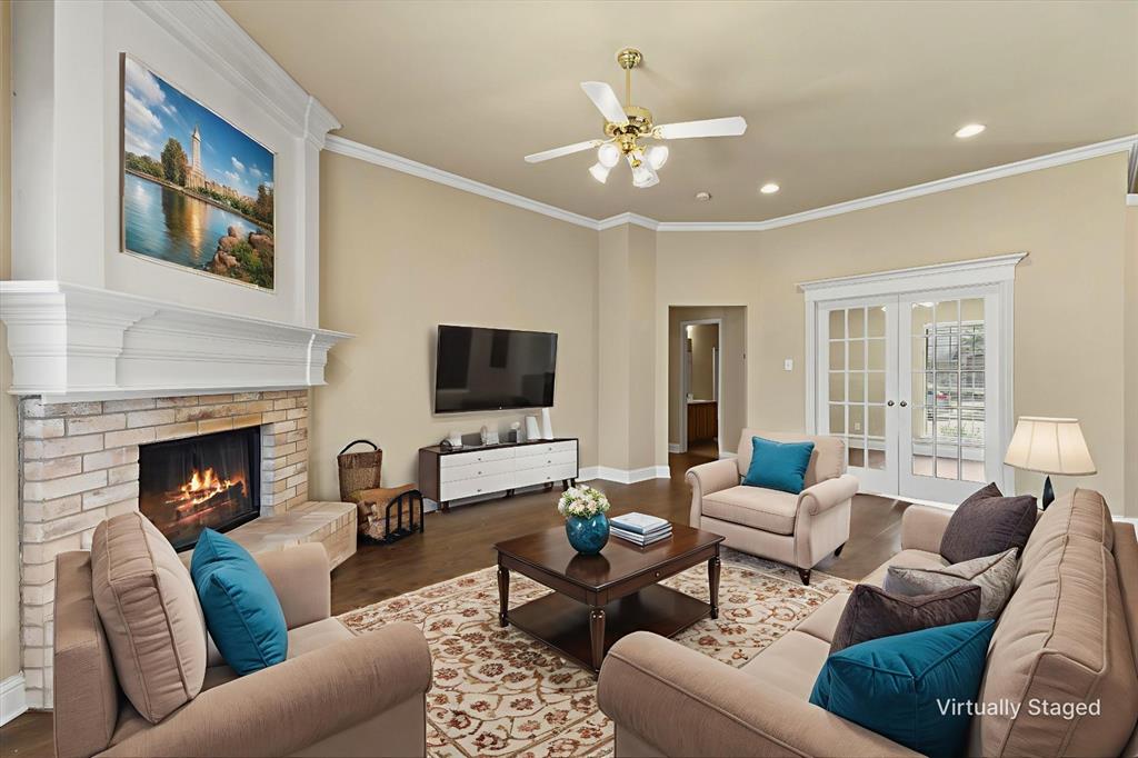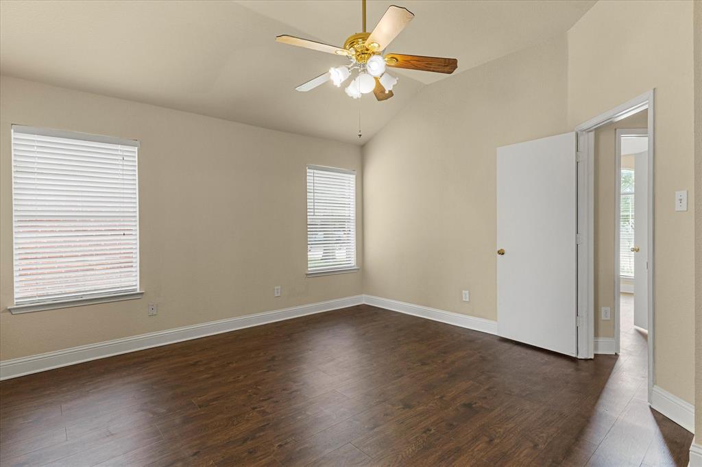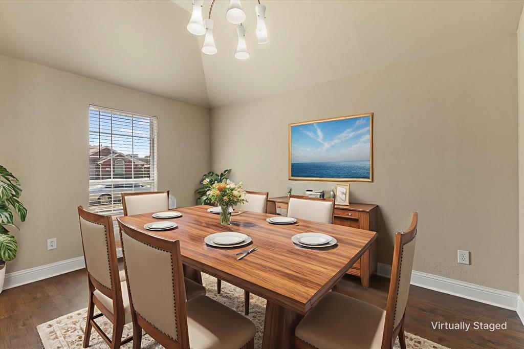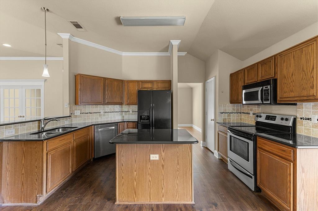 This move-in ready beauty showcases a balanced blend of comfort and function. It features crown molding, freshly touched-up neutral paint and decorative ledges. Recently installed luxury vinyl plank flooring flows throughout the common areas and bedrooms, well-suited for a busy lifestyle. The formal dining room is a versatile space that could also be used as a home office or second living area. The island kitchen offers an abundance of cabinetry, granite countertops, tumbled stone backsplash with a mosaic accent strip, stainless appliances including a smooth top range and Bosch dishwasher, pantry and sunny breakfast nook with a cozy window seat. The refrigerator can stay! The warm and inviting Family Room, with a corner wood-burning fireplace, is the heart of the home. The generously sized primary suite boasts an ensuite bath with dual sinks, sit-down vanity, soaking tub, recently renovated separate shower and a large walk-in closet. The secondary bedrooms both have ceiling fans and share the hall bath. Bedroom 2 would make a perfect home office, craft or playroom with its French doors. The backyard is ready for outdoor entertaining with its open patio ideal for grilling. The backyard is large enough to accommodate areas for kids, pets and adults! There is even a handy storage shed for your tools and lawn equipment. It's in close proximity to I-30, SH-66 and PGBT, allowing different options for your commute. Conveniently located near schools, parks, shopping, dining, nature areas, Sapphire Bay and beautiful Lake Ray Hubbard. Updates include: wood-look LVP flooring, cedar privacy fence (2025); primary bath shower enclosure and frameless glass door (2024); gutters (2022); foundation repairs with transferrable lifetime warranty (2019); HVAC system (2017); roof (2016).
