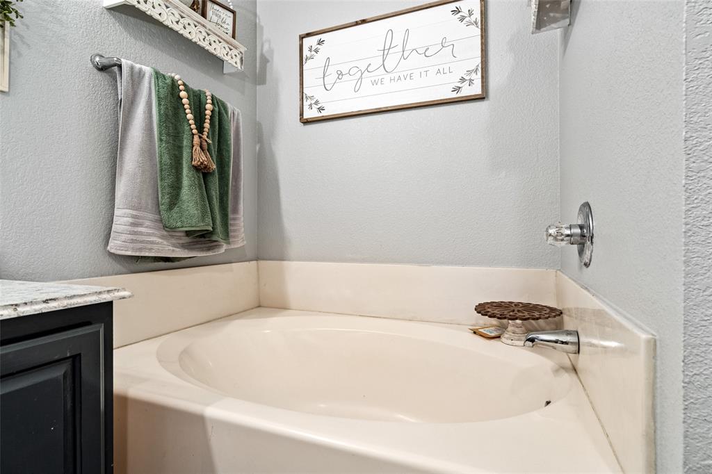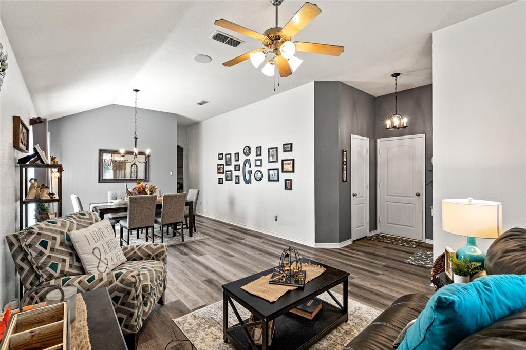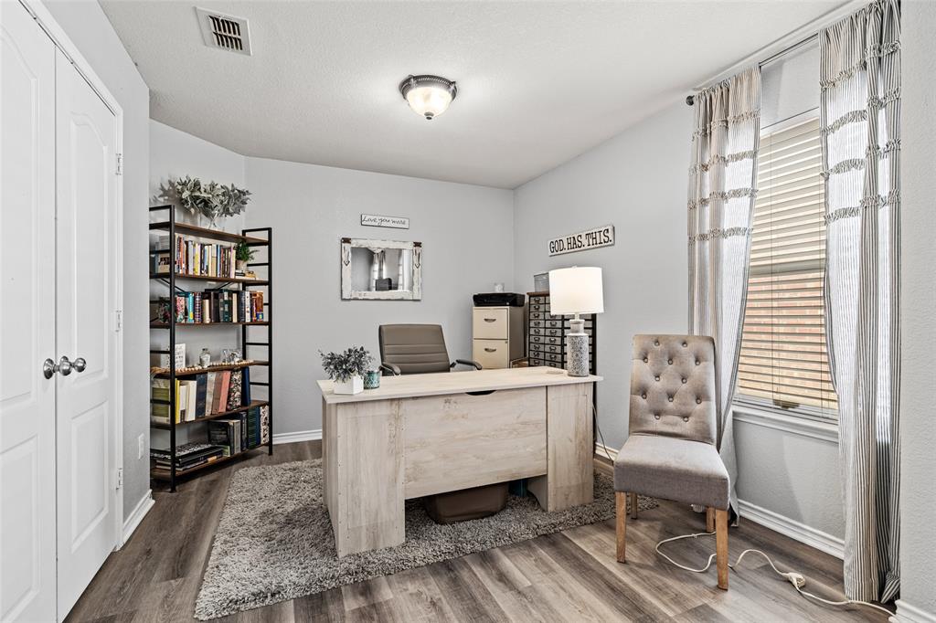 Quaint 3 bedroom and 2 full baths with extra office space. Home is equipped with an amazing open floor plan and several accommodating spaces for a growing family or multi-generational living. This charming home is newly painted and has new vinyl plank flooring, new fixtures, family and living room spaces for entertaining. Eat in Breakfast nook has a full wall of custom cabinetry for extra storage a coffee bar! The Laundry room is attached to kitchen and has ample space for a freezer or new buyer could add shelving for another pantry space. Office area or en suite is attached to the private primary suite with a separate closet for the office and 1 walk in closet. The primary bath has a seperate shower and garden tub. Close to fantastic walking trails, sidewalks to parks, shopping in Alliance Presidio areas and less than a mile to Hwy. 170. Perfectly located home is 20 min to the DFW airport and is in Northwest ISD and state acclaimed high-tech Byron Nelson High School. Don't miss this home definitely under neighborhood appraisal values.