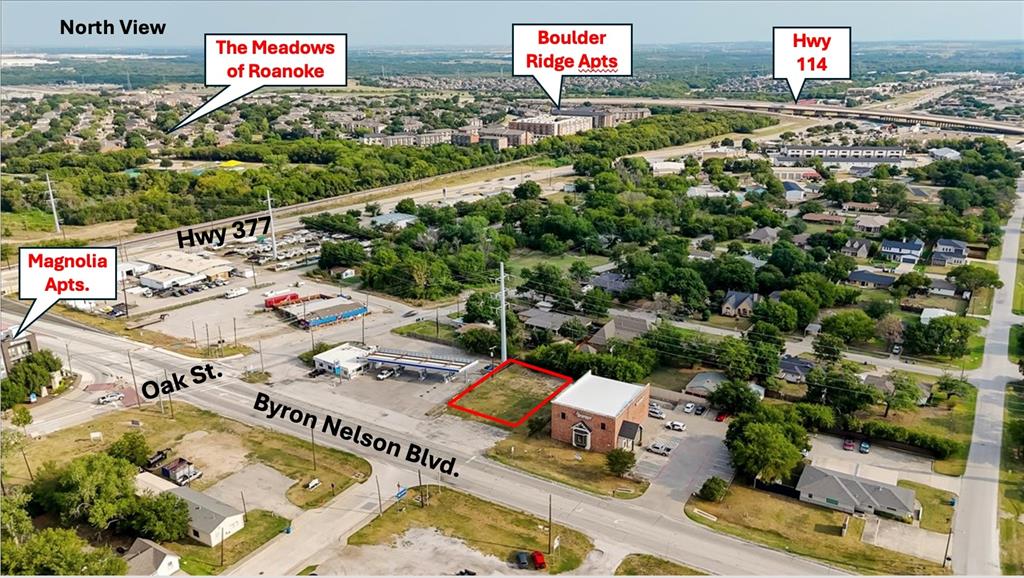 Approximately 0.3 acres with frontage along Byron Nelson Boulevard, offering excellent visibility on a high-traffic corridor. The property is zoned retail and was formerly the location of the Treehouse lot. Situated in the thriving community of Roanoke, this site provides strong potential for a variety of commercial uses.