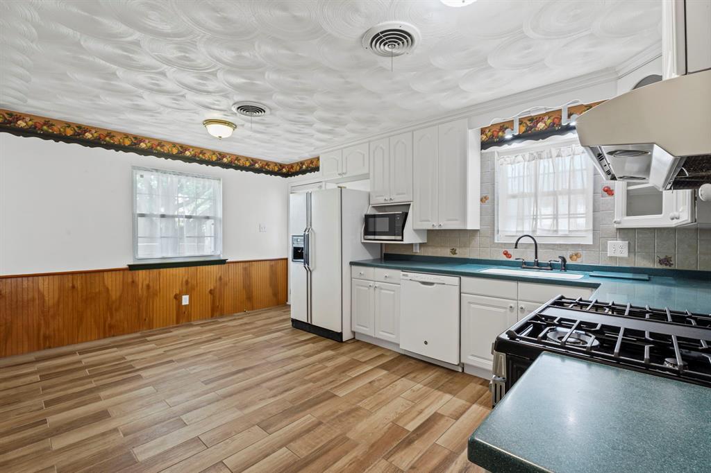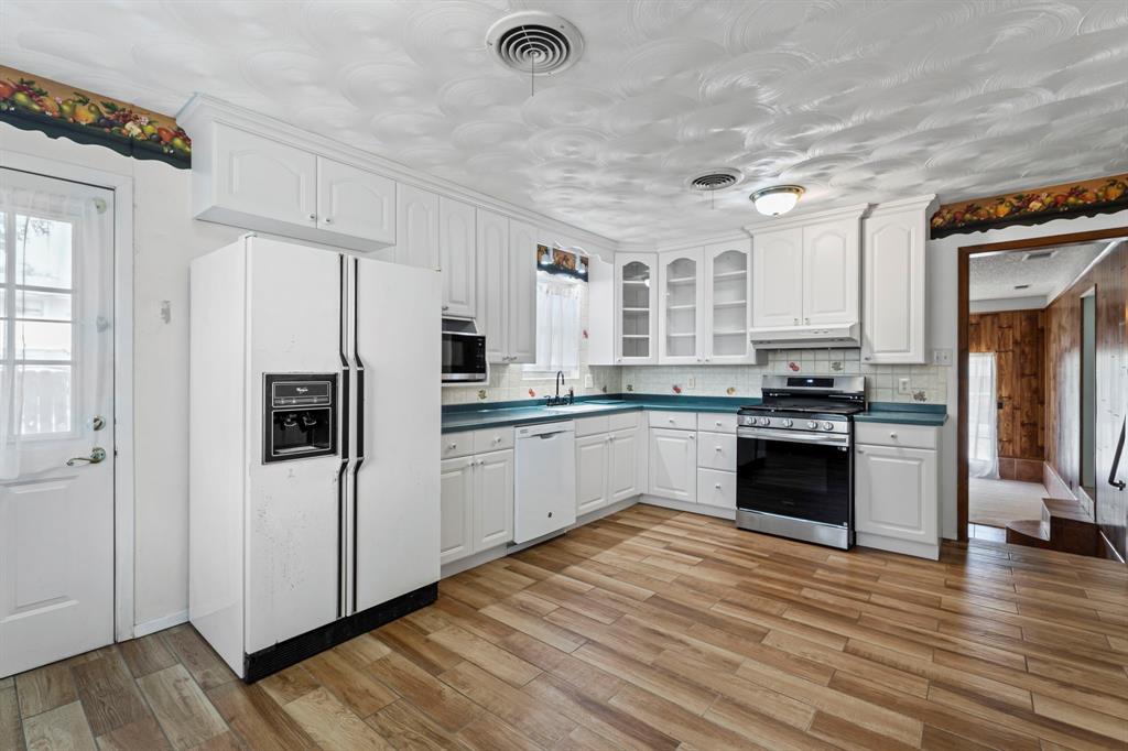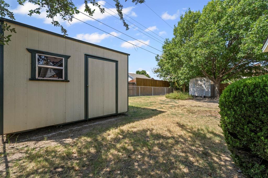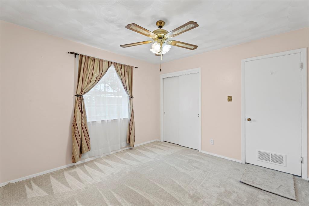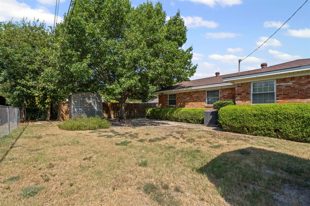 Updated, well-maintained for many years. This cute three-bedroom, two-bath home features a formal living room and a den and is move-in ready. Kitchen remodel includes new cabinets, countertops, appliances, gas range, and tile flooring and backsplash. Other updates include vinyl windows, new HVAC 7-2025, new carpet 8-2025, new Rheem HWH 2-2025, ceiling fans, a large eat-in kitchen, tile floors, wainscoting, Corian counters, a tile backsplash, updated cabinets, a gas range, microwave, oven, and dishwasher. Other extras: mini blinds, window coverings, walk-in closets, decorator colors. Den features include tile and carpet flooring, a utility closet with washer and dryer, fireplace, and a bay window. Bath features include tile flooring, tub shop combo, stainless fixtures. Exterior features include vinyl siding, gutters, brick exterior. Large fenced backyard with 2 storage buildings. Fridge, microwave, and washer-dryer remain with the home, as well as built-in appliances.