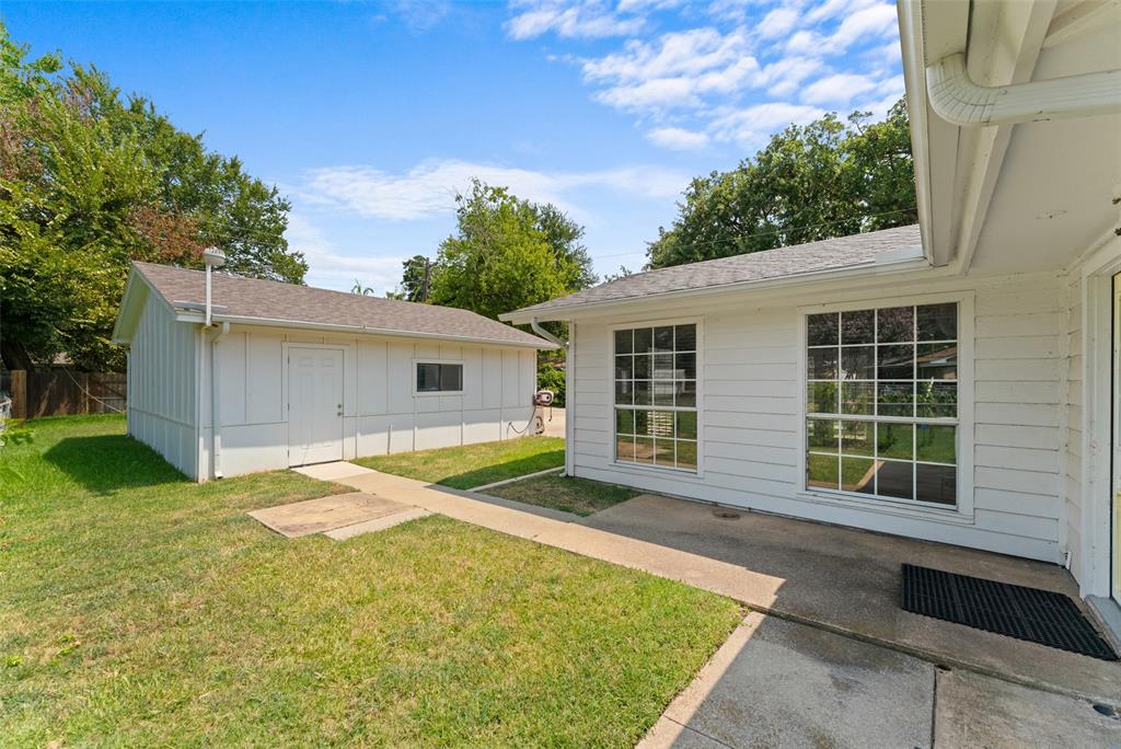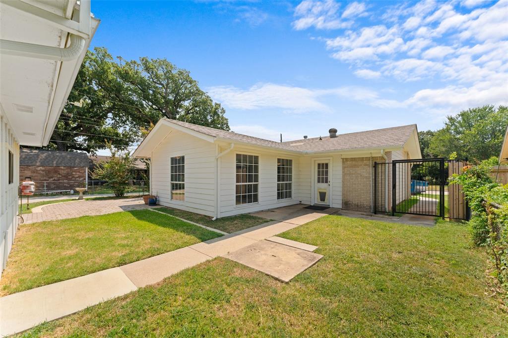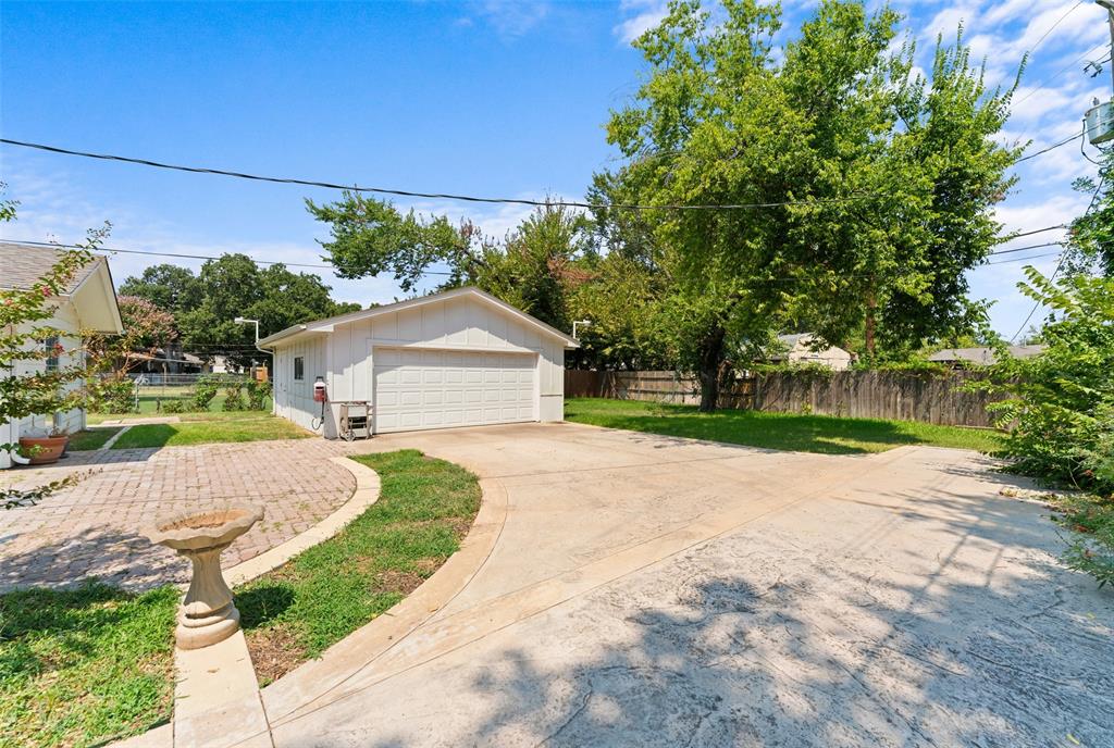 Come see this Lewisville home less than 5 minutes from the lake! Sitting on an over-sized lot, this property boasts a large circle drive along with a gated entrance to your detached 2 car garage. Indoors you'll find a sprawling living room with great natural lighting and easy access into the kitchen and both back patios. A Spacious kitchen features ample storage and counter space for, ideal for those gourmet chefs! The primary bedroom and bath are tucked away from the main living areas in the home, creating some peace and tranquility for it's new occupants. Outdoors you will find two patios and a fully fenced yard creating a blank canvas for you to make all your own. Positioned just minutes from major highways and downtown Lewisville, you'll have convenient access to numerous dining and shopping options! Don't miss out on this opportunity to own a fabulous property near Lake Lewisville.