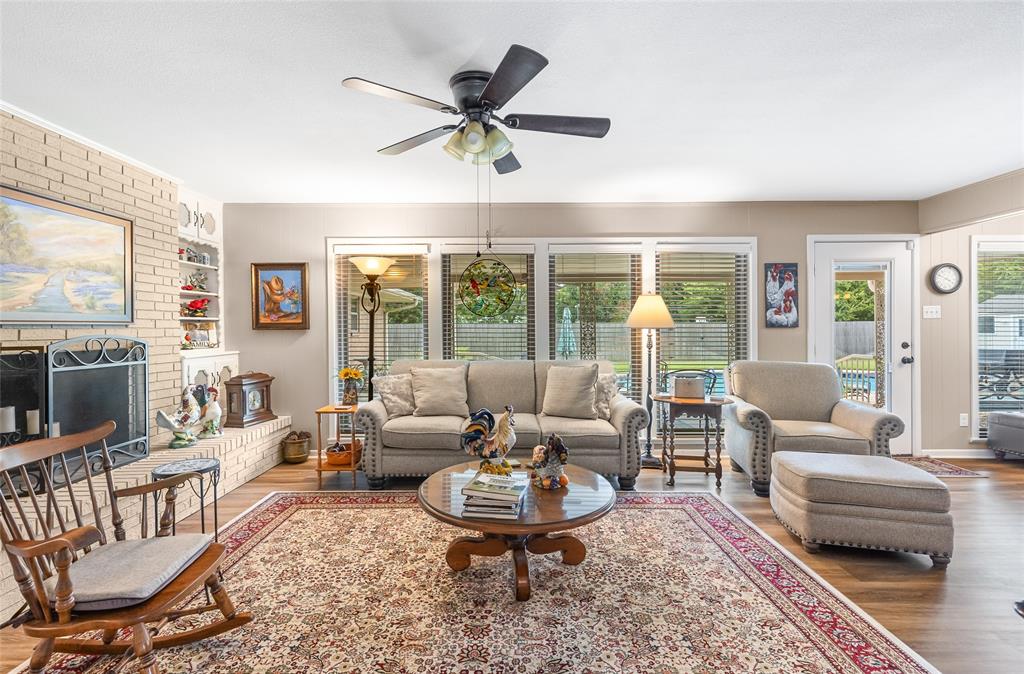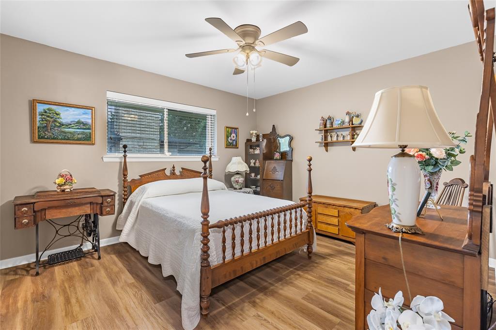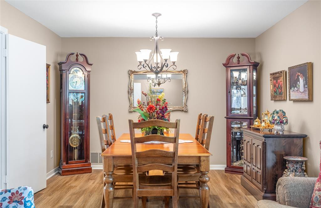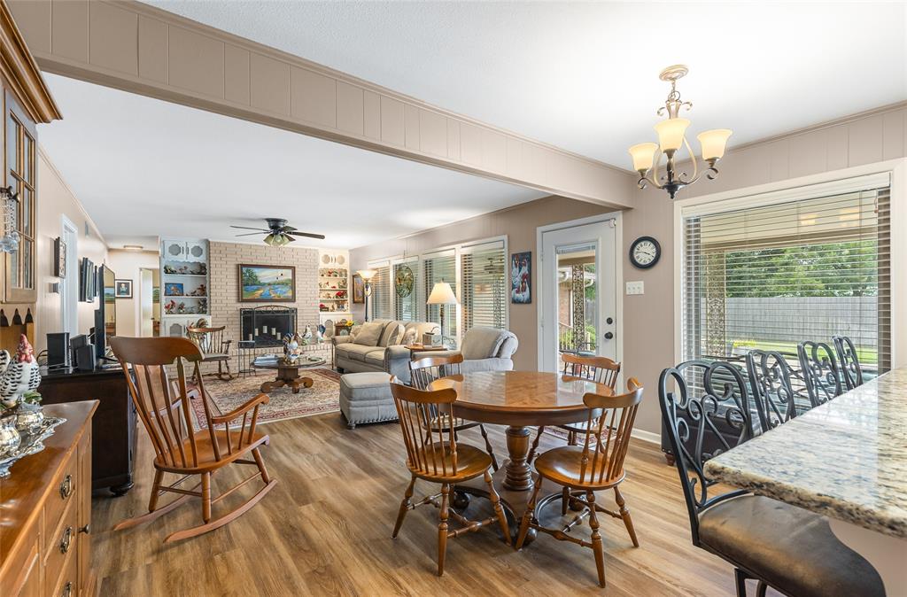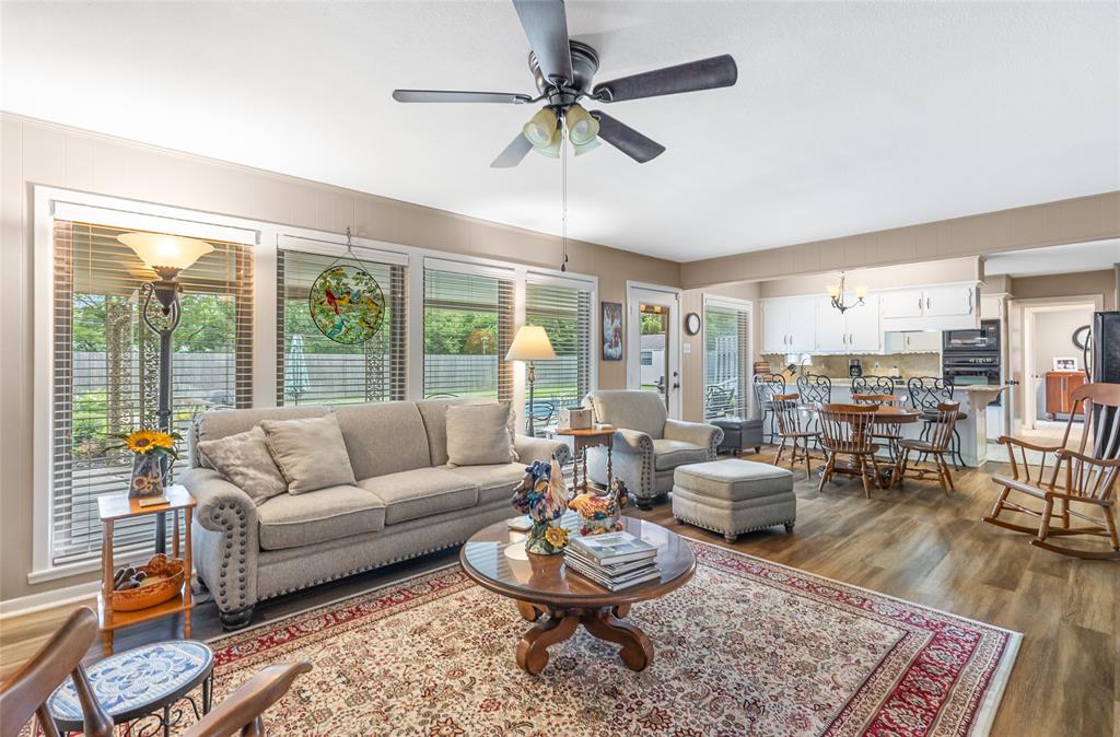 Charming and spacious home situated on over half an acre with mature trees, a sparkling pool, and two versatile outbuildings! This meticulously maintained property offers a peaceful, private retreat with countless upgrades throughout. Enjoy summer days in the resurfaced 42x18 pool (2023), complete with a 10-ft deep end, surrounded by a large concrete pool deck and covered patio — perfect for outdoor entertaining. The established St. Augustine lawn, mature trees, and sprinkler system create a lush, inviting landscape. Inside, the home features luxury vinyl plank and ceramic tile flooring throughout. The oversized primary suite overlooks the pool and boasts separate vanities, dual closets, and serene views. The split-bedroom layout offers privacy and space, complemented by two living areas, two dining areas, and a spacious kitchen with granite countertops and a new dishwasher (2025). Major system updates include: new HVAC (2023), new energy-efficient windows (2024); plus there are two water heaters to service each end of the house. The ADT security system provides added peace of mind. The property features two fully finished outbuildings for ultimate flexibility: a 25x10 workshop with electricity and spray foam insulation, and a 14x20 detached office complete with soundproof insulation, carpeted interior, with heating and cooling — ideal for a quiet home office, studio, or guest space. With abundant storage, thoughtful updates, and a resort-style backyard, this home is truly an oasis. Don’t miss your chance to own this unique and beautifully cared-for property!