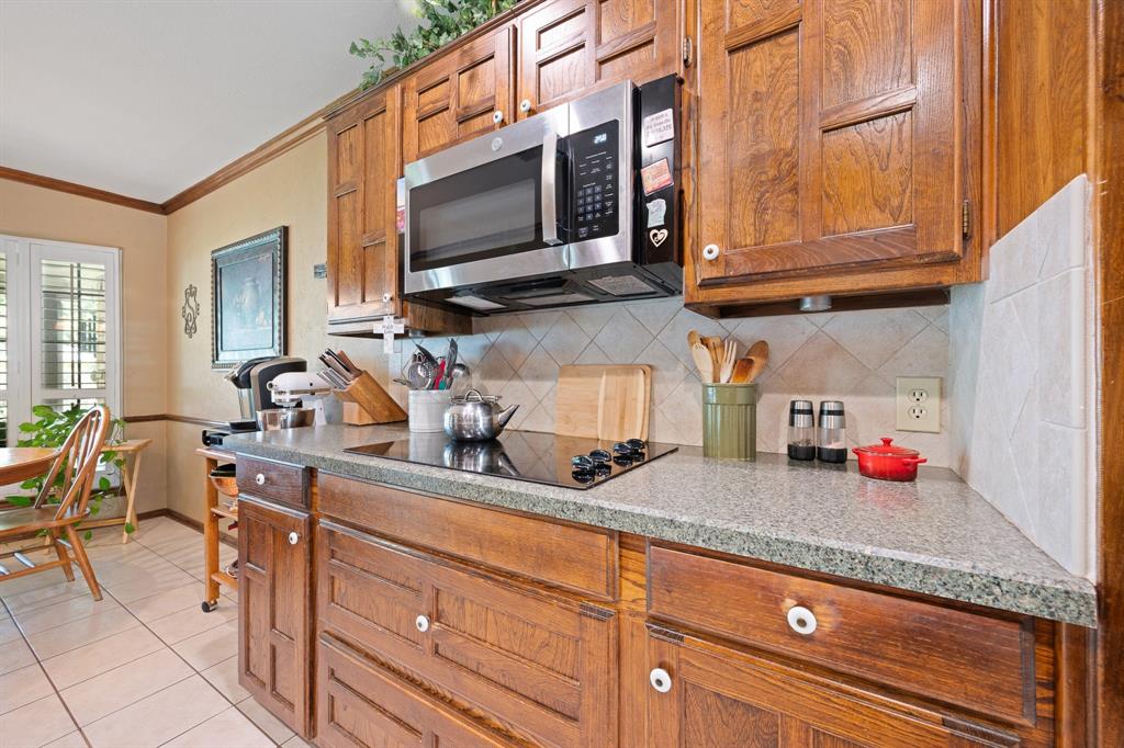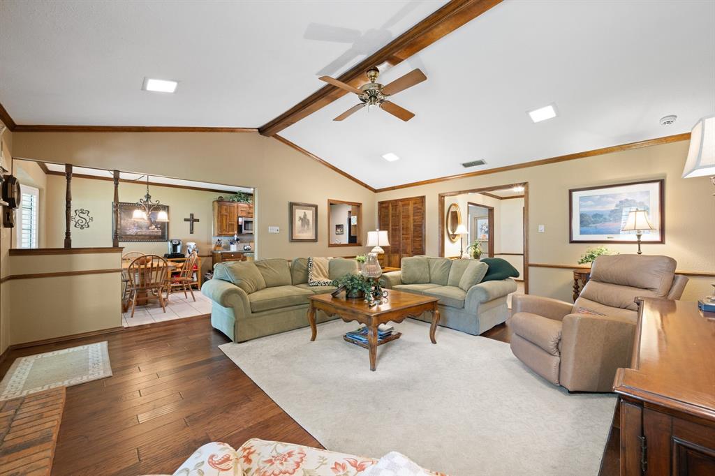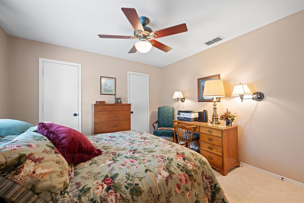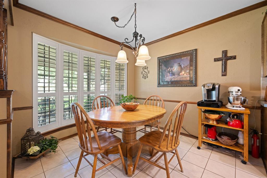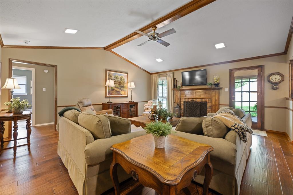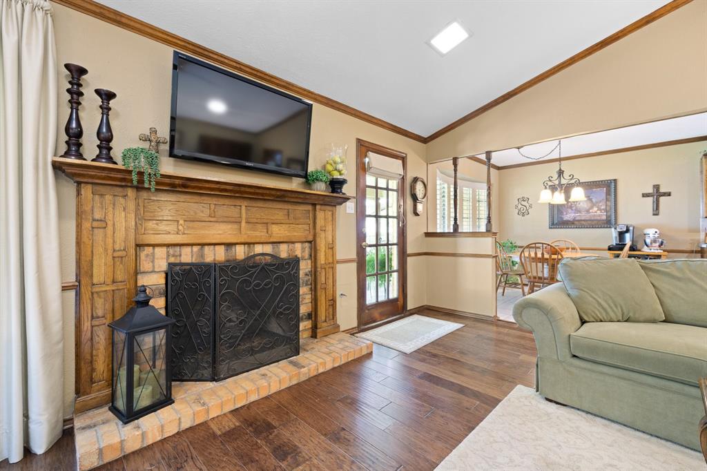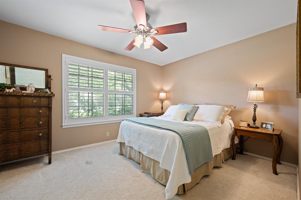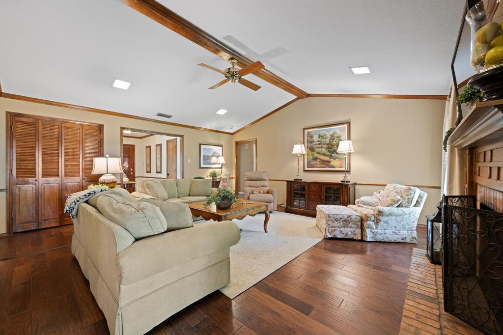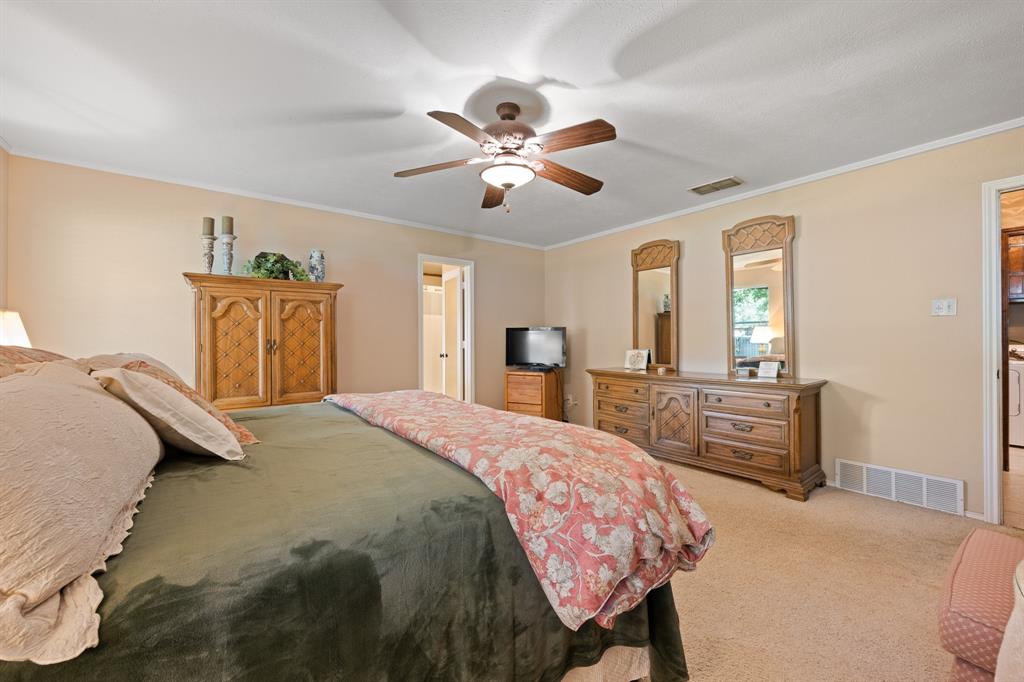 Welcome to this beautiful brick home situated on a desirable corner lot, surrounded by a lush green lawn, established trees, and thoughtfully designed landscaping. The side-entry garage adds curb appeal, while the private backyard offers a peaceful retreat. A brand-new roof was just installed in August 2025, giving you peace of mind for years to come. Step inside to a spacious living area with raised ceilings that create an open, airy feel. The cozy gas log fireplace is the centerpiece, perfect for gatherings, and the convenient wet bar—currently used as extra storage—adds flexibility. Flowing seamlessly into the wide galley kitchen, you’ll appreciate the updated appliances including a smooth-top stove, stainless steel microwave, and oven. A breakfast nook overlooks the backyard, while the formal dining room offers plenty of space for entertaining. Throughout the home, you’ll notice the timeless charm of plantation shutters. The split-bedroom floor plan provides privacy and functionality. The extra-large primary suite easily accommodates a king bed and oversized furniture. Its ensuite bathroom features dual sinks, two walk-in closets, and a tub-shower combination. The secondary bedrooms are equally impressive with generous closet space. Bedroom two includes a built-in desk and walk-in closet, while bedroom three boasts two closets. The guest bathroom is well-appointed with excellent storage. Step outside to enjoy the large, private backyard with a gorgeous shade tree—ideal for play or relaxation. A covered patio offers the perfect spot for outdoor dining, and a storage shed with electricity on the exterior that provides additional utility. This home combines comfort, character, and thoughtful updates, making it a must-see!