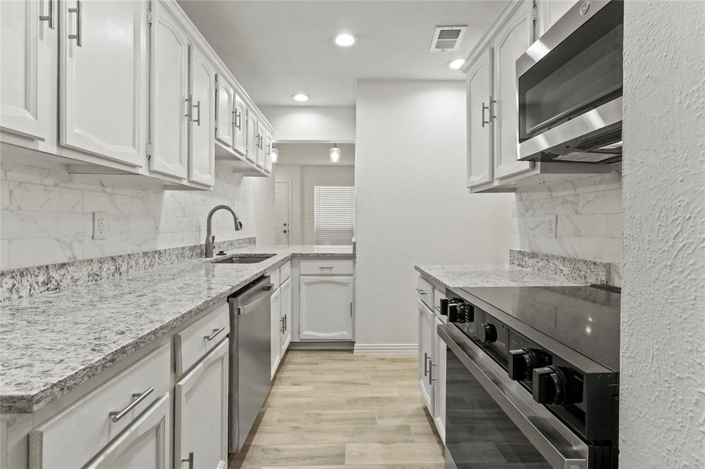 Welcome to this beautifully updated 2-bedroom, 2-bathroom home nestled in a quiet Garland neighborhood. Step inside to find a bright and open floor plan featuring fresh paint, modern fixtures, and stylish finishes throughout. The newly remodeled kitchen boasts sleek countertops, updated cabinetry, and stainless steel appliances—perfect for cooking and entertaining. Both bedrooms are generously sized, with the primary suite offering a private bath for comfort and convenience. With its prime location near shopping, dining, schools, and easy highway access, this move-in-ready home is the perfect blend of comfort and modern living. Don’t miss your chance to own this Garland gem!