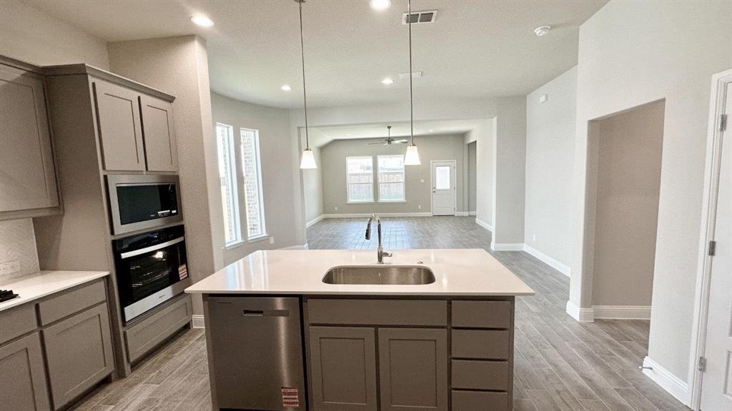 New and now selling! D.R. Horton is now selling in the new phase at the fabulous community of Eagle Creek in Denton and Denton ISD!! Gorgeous open concept single Story 4 bedroom Blue Jay Floorplan-Elevation M, on a south facing corner lot, with an estimated Fall completion. Large Chef's Kitchen with seating Island, Pendant lights, abundant Cabinets, tiled backsplash, built-in stainless steel Appliances and wide Pantry. Spacious Living and luxurious main Bedroom at the rear of the Home with dual sink Vanity, large walk-in Shower, linen closet and walk-in Closet. Granite Countertops in Kitchen and Quartz vanities in both full Baths. Designer Pkg including tiled Entry, Halls, Living, Kitchen and Wet areas plus Home is Connected Smart Home Technology. Mud Room, Tankless Water Heater, covered back Patio, gutters, front exterior Coach Lights, 6 foot fenced backyard, landscape Pkg with full Sprinkler System and more! Community Playground, Club House and Pool. Close proximity to Downtown Denton, UNT, TWU, The Square, Rayzor Ranch Town Center and Restaurants, I-35E & I-35W.