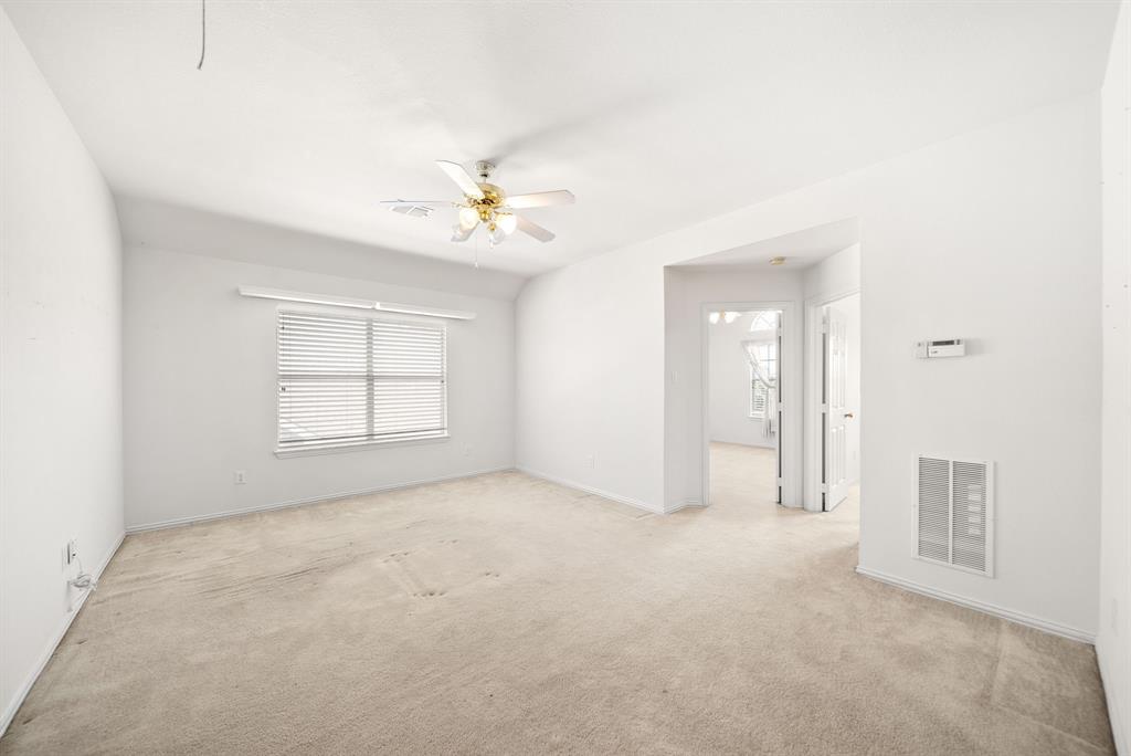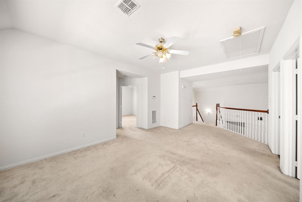 Upstairs, a large game media room provides a second living area, perfect for play or relaxation. The primary suite features a spacious bathroom with dual vanities, soaking tub, separate shower and walk-in closet. Secondary bedrooms offer plenty of space for family or guests. Outside, mature trees shade the fenced backyard, and a huge extended garage offers workshop or storage space. While the home does need updating and cosmetic improvements, it provides a great canvas to customize to your taste. If you’re looking for a sizable home with strong bones in a gated community, bring your vision and make this property shine.