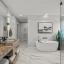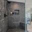 The spa-like primary suite is a retreat all its own, boasting a massive walk-in shower with body sprayers, a separate garden tub, floating vanities with granite counters, and decorative lighting that enhances the serene atmosphere.