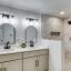 The spacious primary suite offers a private retreat with a fully remodeled en-suite bathroom featuring a walk-in shower, dual vanities, and designer finishes. Secondary bedrooms are generously sized and share a beautifully updated full bath with double sinks and modern tile work. A convenient half bath is located off the main living area for guests.