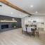 Enjoy an open-concept layout highlighted by a painted brick fireplace, luxury vinyl plank flooring, and plenty of natural light. The kitchen is a true showpiece with white shaker cabinets, quartz countertops, large island with bar seating, and stainless-steel appliances—perfect for entertaining.