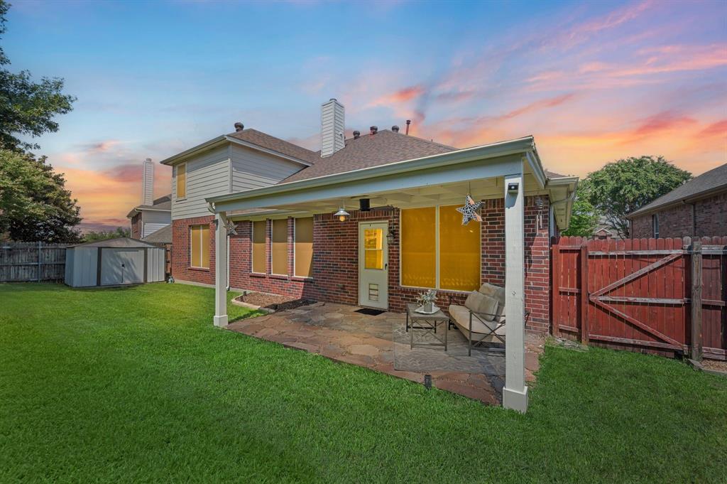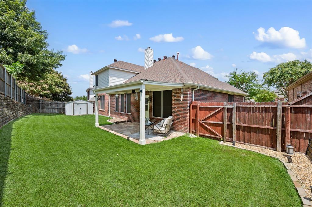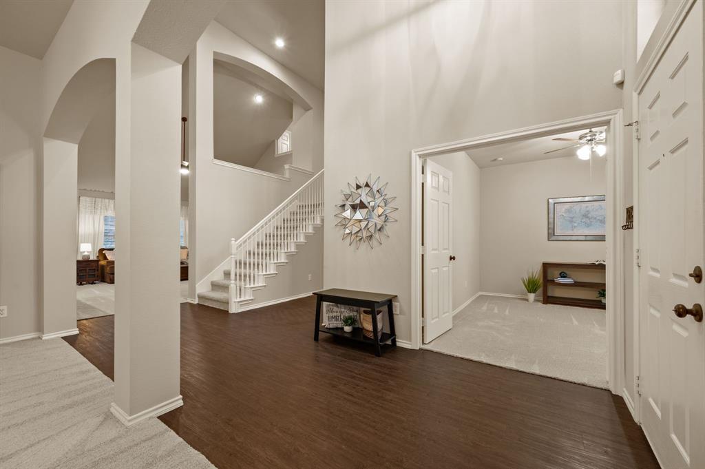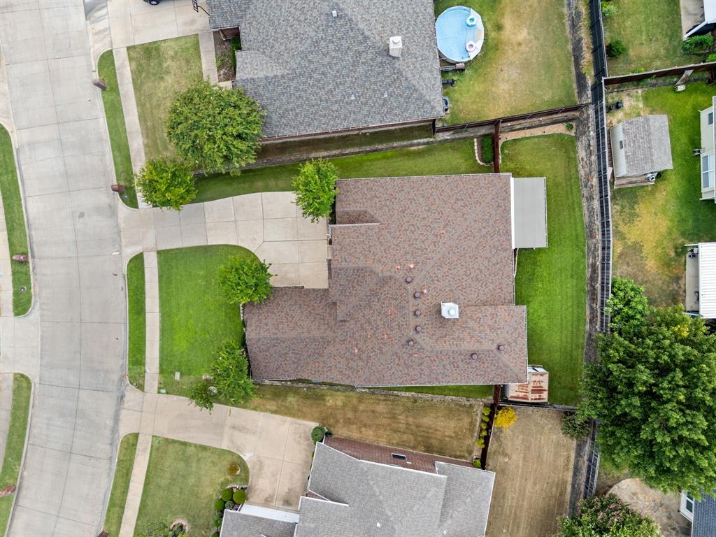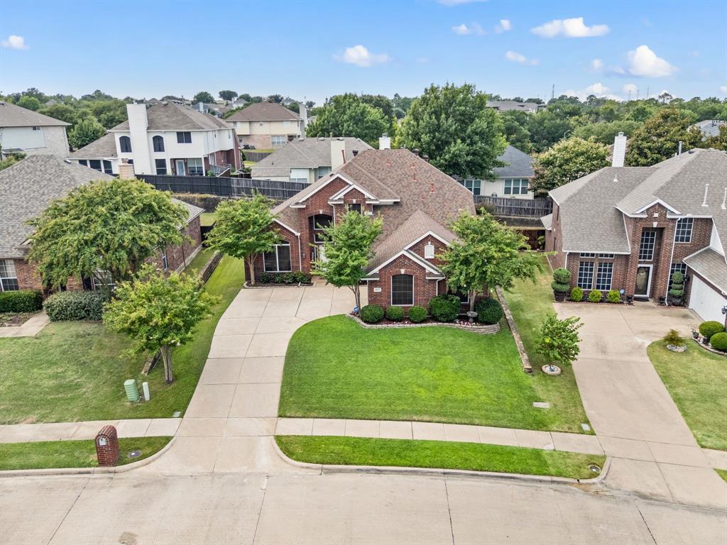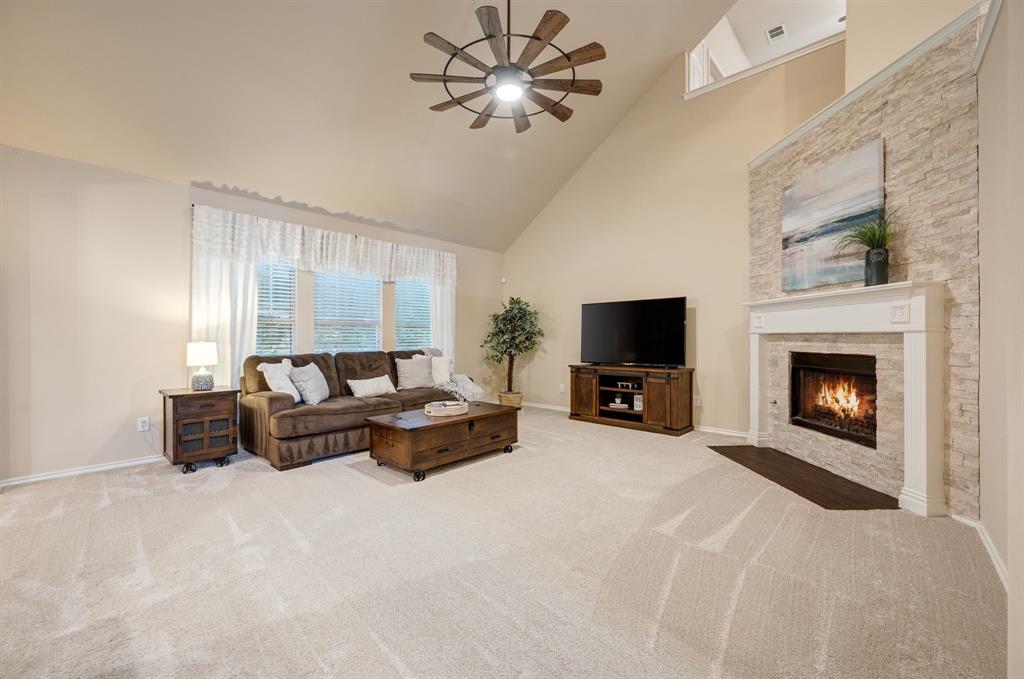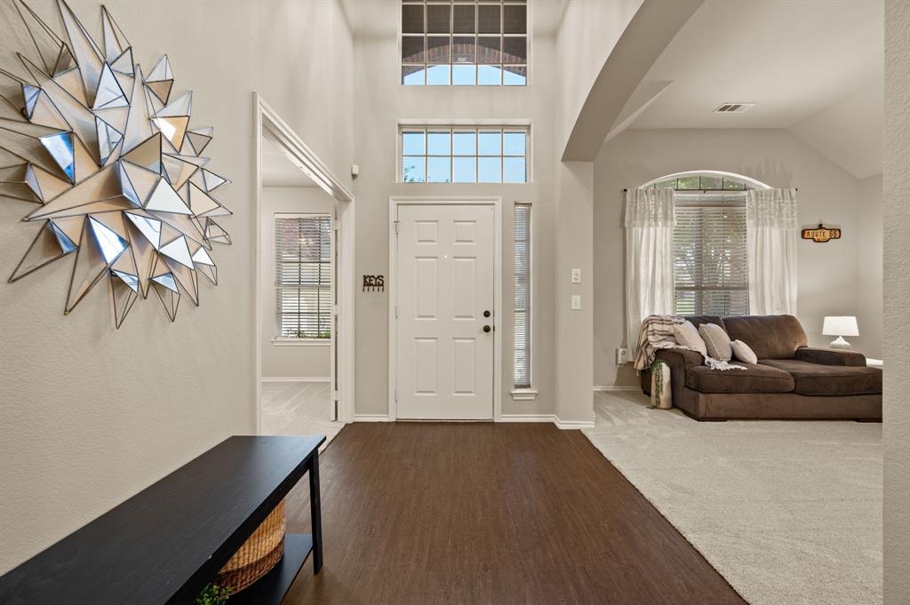 Gorgeous 4-bedroom, 2.5-bath plus main floor office with closet offers a flexible layout that can accommodate a variety of options. Large front flex room offers endless possibilities; use it as a game room, second living, dining area, living room & dining room combo, pool table room, office space etc. Sure to make your home the perfect hang out or workspace. Main floor dedicated office with a closet provides a quiet workspace or easily converts to a fifth bedroom. Spacious open floorplan flows effortlessly from the oversized family room with striking stone fireplace, walls of windows & high ceilings to the newly updated light and bright kitchen with gorgeous granite countertops, stainless steel appliances, ample counter & cabinet space, timeless LVP & charming breakfast area. Private main floor primary retreat offers a generous layout and tastefully updated spa-like ensuite bath, perfect for unwinding at the end of the day. Upstairs you will find three additional bedrooms, full bath and loft area that offers great space perfect for family, guests, or hobbies. Oversized garage with cabinetry & shelves offers extra room for a workshop and features a mini-split system, offering year-round comfort for hobbies, storage, DIY home projects or car enthusiasts. Fully fenced backyard with covered patio is amazingly private; ideal for relaxing, dining alfresco or hosting guests with lots of room for kids and furry family members alike to play. Located in a great neighborhood with easy access to I-635 and I-30, this fabulous move-in ready home also offers a newer roof, updated lighting, LVP flooring & new carpet! Great place to call home!