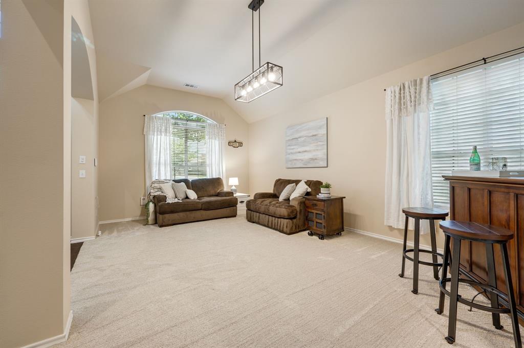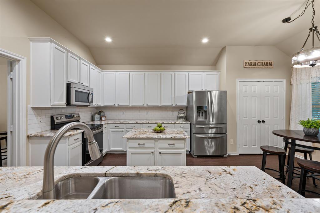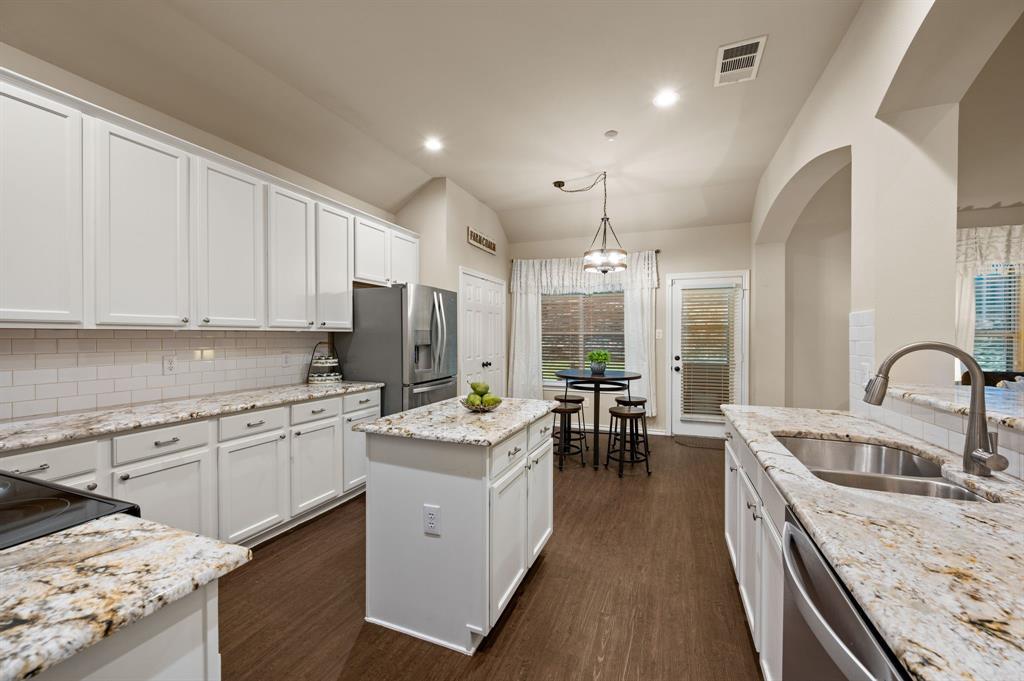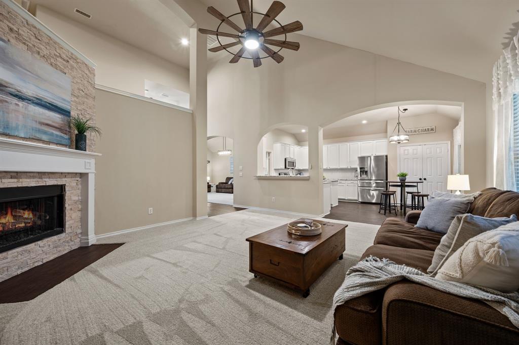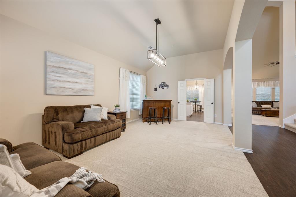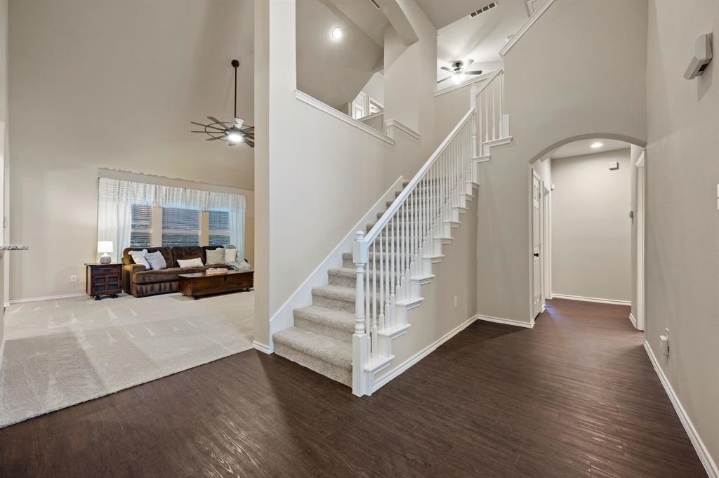 Gorgeous 4-bedroom, 2.5-bath plus main floor office with closet offers a flexible layout that can accommodate a variety of options. Large front flex room offers endless possibilities; use it as a game room, second living, dining area, living room & dining room combo, pool table room, office space etc. Sure to make your home the perfect hang out or workspace. Main floor dedicated office with a closet provides a quiet workspace or easily converts to a fifth bedroom. Spacious open floorplan flows effortlessly from the oversized family room with striking stone fireplace, walls of windows & high ceilings to the newly updated light and bright kitchen with gorgeous granite countertops, stainless steel appliances, ample counter & cabinet space, timeless LVP & charming breakfast area. Private main floor primary retreat offers a generous layout and tastefully updated spa-like ensuite bath, perfect for unwinding at the end of the day. Upstairs you will find three additional bedrooms, full bath and loft area that offers great space perfect for family, guests, or hobbies. Oversized garage with cabinetry & shelves offers extra room for a workshop and features a mini-split system, offering year-round comfort for hobbies, storage, DIY home projects or car enthusiasts. Fully fenced backyard with covered patio is amazingly private; ideal for relaxing, dining alfresco or hosting guests with lots of room for kids and furry family members alike to play. Located in a great neighborhood with easy access to I-635 and I-30, this fabulous move-in ready home also offers a newer roof, updated lighting, LVP flooring & new carpet! Great place to call home!