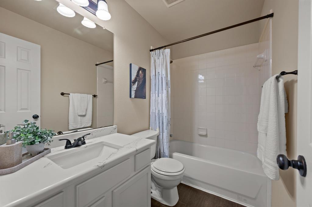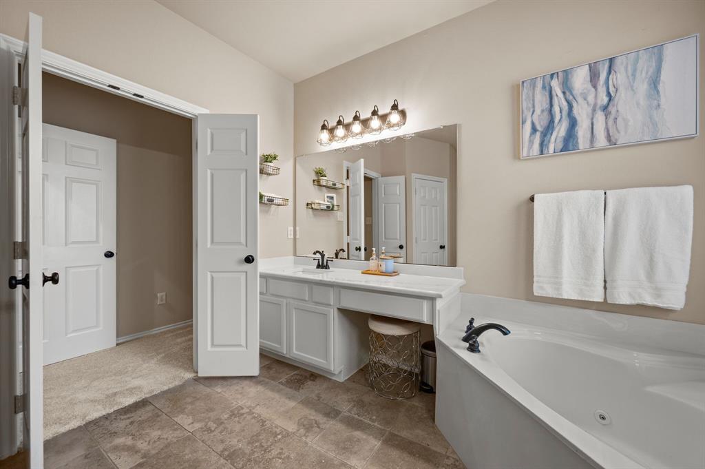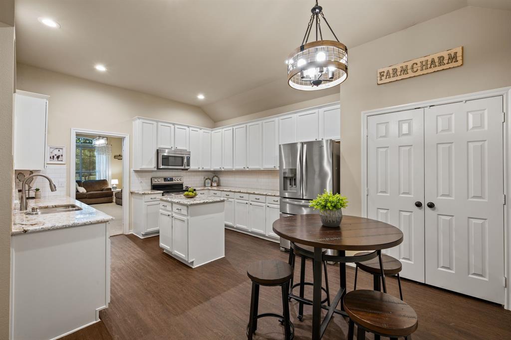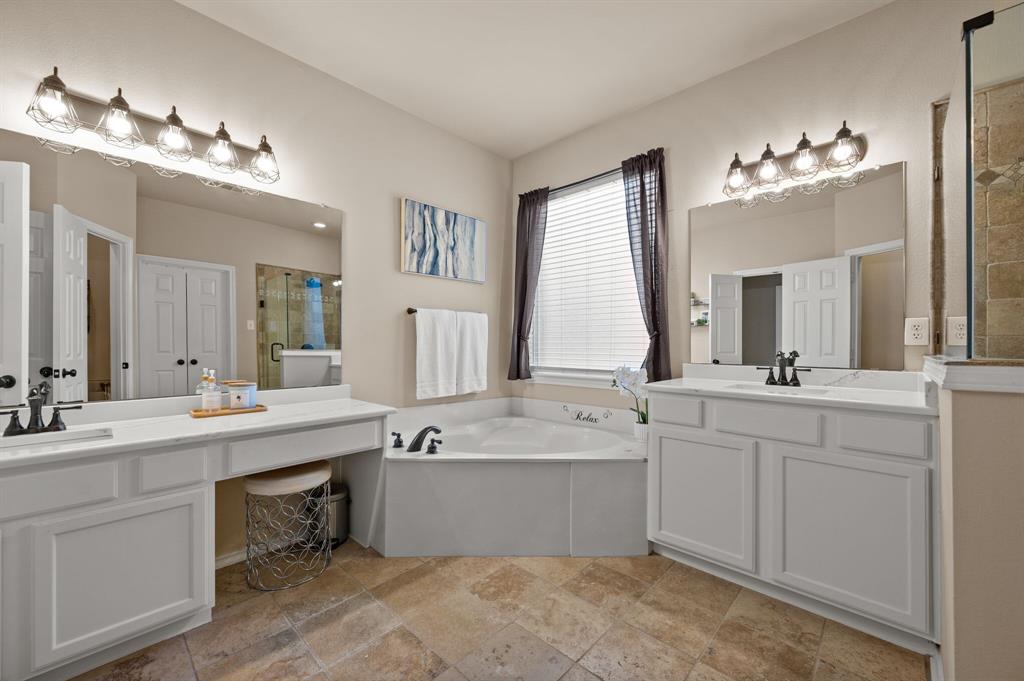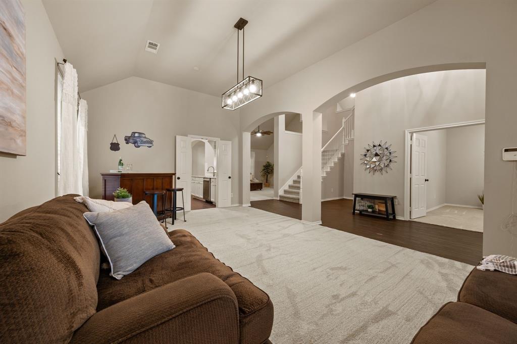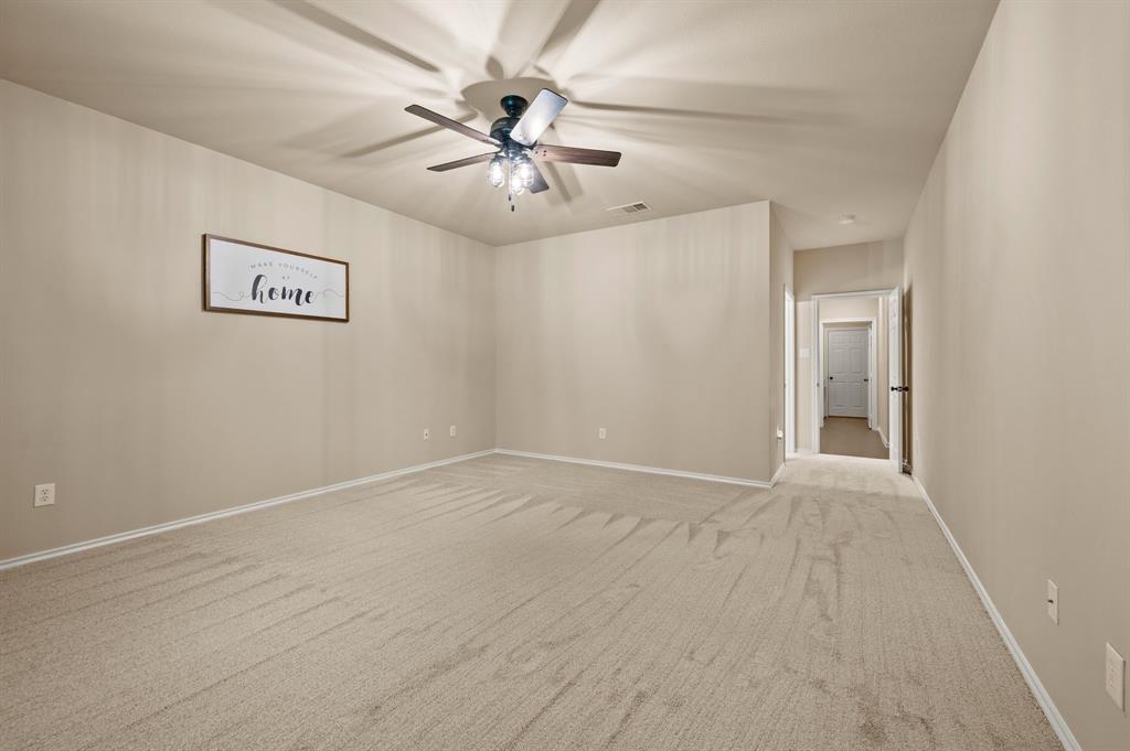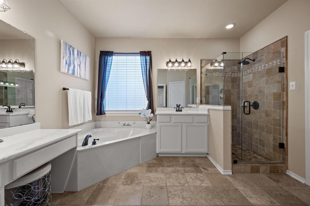 Gorgeous 4-bedroom, 2.5-bath plus main floor office with closet offers a flexible layout that can accommodate a variety of options. Large front flex room offers endless possibilities; use it as a game room, second living, dining area, living room & dining room combo, pool table room, office space etc. Sure to make your home the perfect hang out or workspace. Main floor dedicated office with a closet provides a quiet workspace or easily converts to a fifth bedroom. Spacious open floorplan flows effortlessly from the oversized family room with striking stone fireplace, walls of windows & high ceilings to the newly updated light and bright kitchen with gorgeous granite countertops, stainless steel appliances, ample counter & cabinet space, timeless LVP & charming breakfast area. Private main floor primary retreat offers a generous layout and tastefully updated spa-like ensuite bath, perfect for unwinding at the end of the day. Upstairs you will find three additional bedrooms, full bath and loft area that offers great space perfect for family, guests, or hobbies. Oversized garage with cabinetry & shelves offers extra room for a workshop and features a mini-split system, offering year-round comfort for hobbies, storage, DIY home projects or car enthusiasts. Fully fenced backyard with covered patio is amazingly private; ideal for relaxing, dining alfresco or hosting guests with lots of room for kids and furry family members alike to play. Located in a great neighborhood with easy access to I-635 and I-30, this fabulous move-in ready home also offers a newer roof, updated lighting, LVP flooring & new carpet! Great place to call home!