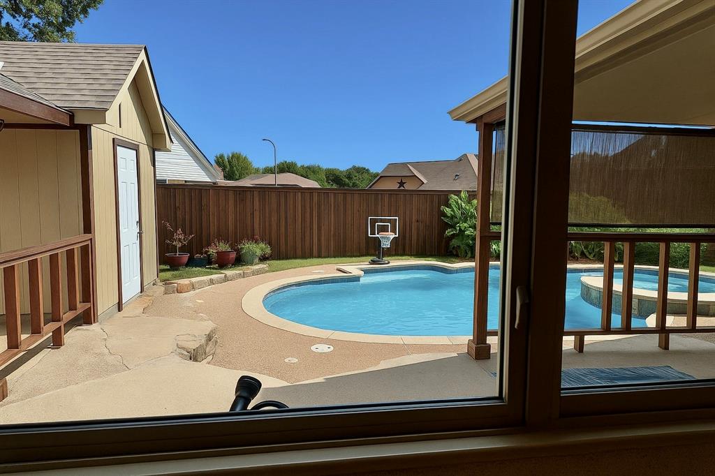 THIS LOVELY 3 BR, 2 BATH HOME ZONED TO KELLER ISD FEATURES AN EXQUISITE IN GROUND CHLORINE POOL AND ATTACHED SPA, COVERED PATIO HAS AN ADDITIONAL HIGH END FREE STANDING HOT TUB, THERE IS A STORAGE SHED WITH ATTACHED SECOND COVERED PATIO SPACE, AMBIENT OUTDOOR LIGHTING FOR BOTH PATIO SPACES, EXTENSIVE POOL DECKING FOR CHAISE LOUNGES AND OTHER POOL FURNITURE AS WELL AS A NEW UPGRADED, STAINED FENCE THAT SHOULD LAST FOR YEARS TO COME. THE POOL AND OUTDOOR AREA CAN BE ENJOYED FROM INSIDE THE HOME AS WELL WITH VIEWS FROM THE DINING, KITCHEN AND SPACIOUS LIVING ROOM. YOU WILL LOVE THE WOOD BURNING FIREPLACE, HIGH CEILINGS AND OPEN AREA TO THE DINING ROOM WITH FLOOR TO CEILING SLIDING GLASS DOORS TO THE BACK YARD. LOCATED IN THE HEART OF FORT WORTH, JUST MINUTES TO INTERSTATE 820, HWY 377, QUICK ACCESS TO I35W AND ALLIANCE TOWN CENTER WHERE YOU WILL FIND RESTAURANTS SHOPPING AND SEVERAL GROCERY STORES INCLUDING A NEW HEB.