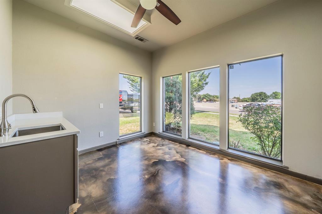 Excellent commercial opportunity in the heart of North Richland Hills! This 2,424 sq. ft. updated office building offers a prime location on the frontage road with excellent visibility and signage opportunities. The contemporary design features a welcoming reception area with soaring ceilings, a conference room with a designer wood accent wall, and nine private offices of various sizes, including 2–4 executive suites. The interior is thoughtfully designed with concrete flooring on the main level, LVP and tile upstairs, and large windows throughout that provide abundant natural light. Additional highlights include a spacious kitchen or break area with shelving, cabinets, and room for seating, bathrooms on both floors, and a dedicated phone closet for technology needs. This versatile space is ideal for a wide range of professional uses including medical, dental, legal, real estate, Title or general office and offers excellent functionality with a modern touch. Outstanding opportunity in a highly visible, convenient location!