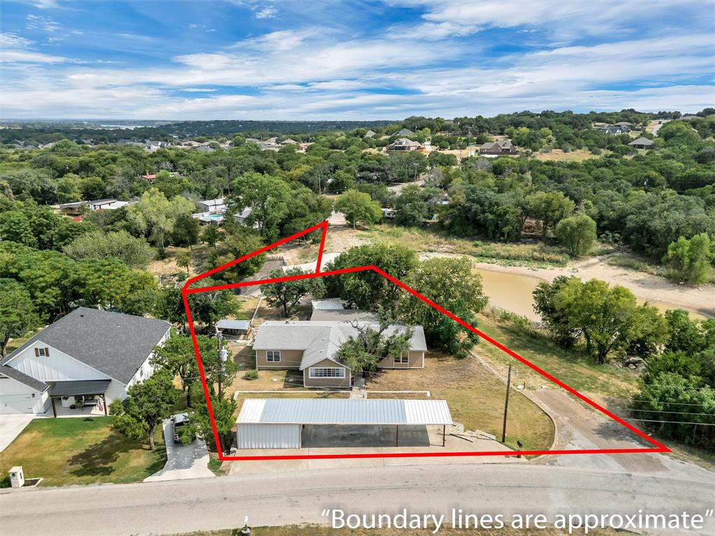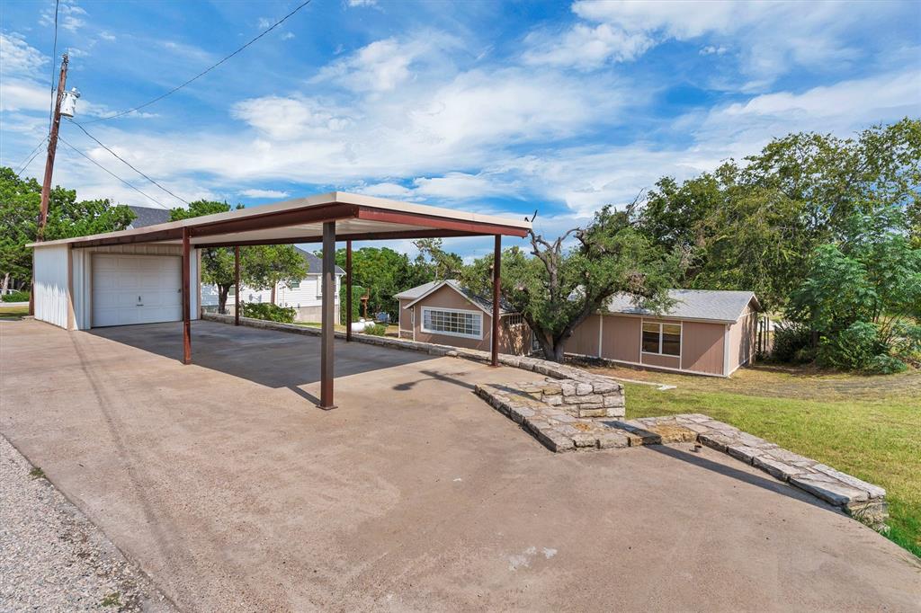 Unbelievable opportunity to own your own waterfront property on almost an acre of land. Located at the end of the Bell Tower Cove right at the Brand New Dam, this property will not disappoint. Seller has obtain easement rights on top of the Dam over to Scenic Dr where he has a private drive and gate from Scenic to his Shop out back of property. Stairs down to the Canal to kayak or park your boat. Tons of parking, really nice cabin like home. New Carpet, fresh paint and baseboards thru out home, New HVAC within approx. 2 yrs ago, Large Game, dining Family room, and gorgeous outdoors within this Lake community of Granbury TX Comanche Harbor. Big open deck on backside of property and a propane tank. 4 car carport in front with your very own shop-garage, and additional covered parking out back with another shop. VERY COOL Property!!
