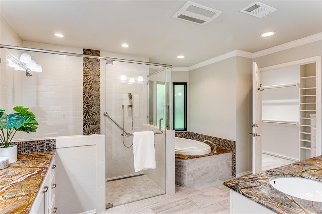 This home is equipped with several upgrades, including heated tile floors in the primary suite, whole house filtration water filtration system, soft close drawers, plantation shutters, Anderson windows, new paint, new wooden fence and more. The full list is attached to the listing.