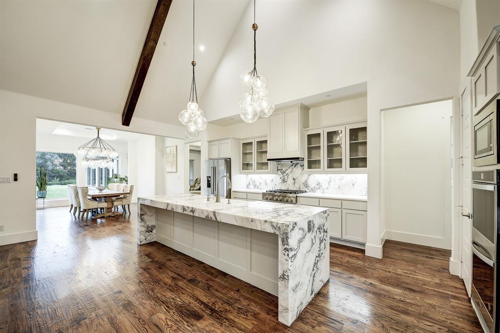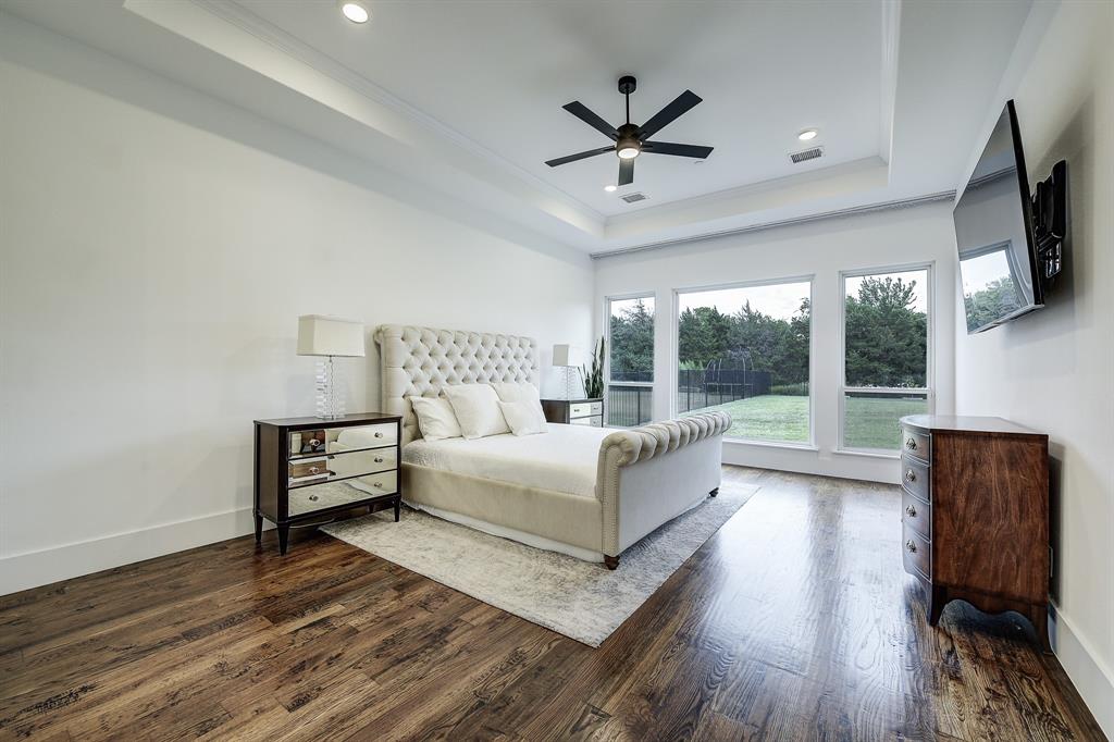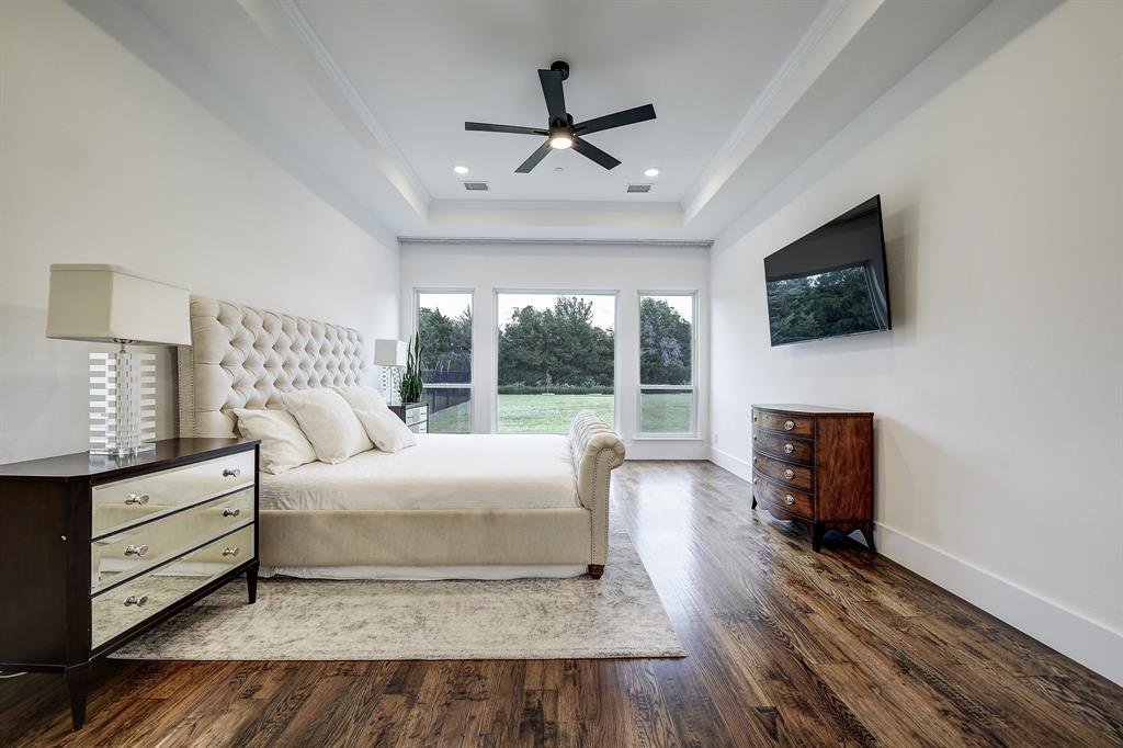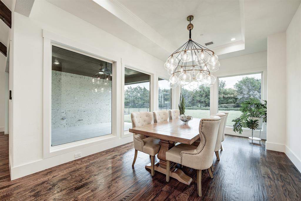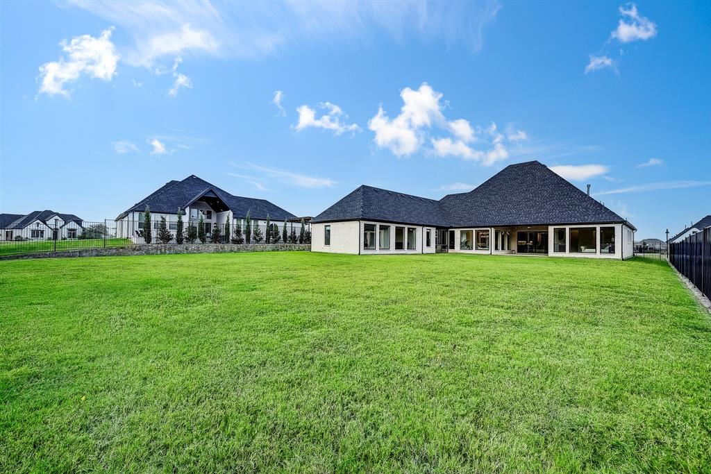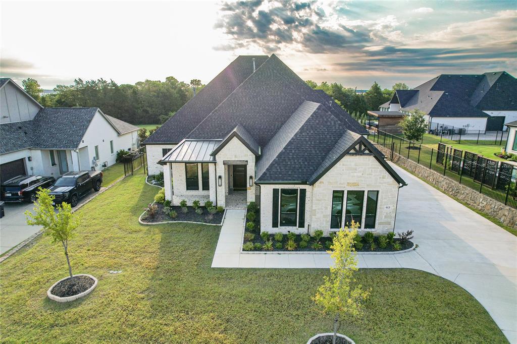 Stunning Modern Home in Prestigious Brockdale Estates located within the highly acclaimed Lovejoy ISD, this exquisite property offers a rare combination of elegance, functionality, and scenic beauty-with Lake Lavon adjacent to your backyard. A private mother-in-law suite with its own kitchen, living room, bonus room, laundry, bedroom, bathroom with frameless showerdoor, and separate garage entry makes this home ideal for multigenerational living or hosting extended guests in comfort and style, complete with an extended driveway for convenience. Inside, the open floor plan is filled with natural light pouring through expansive windows showcasing rich dark hardwood floors, beamed vaulted ceilings, custom built-ins, and a striking floor to ceiling tile like marble fireplace in the main living area. The chef’s kitchen is an entertainer’s dream, featuring a massive waterfall-edge marble island, stainless steel appliances, 6 burner gas stove, double ovens, marble backsplash, designer lighting, abundant custom cabinetry, and a large walk-in pantry with custom cabinets. The open floor plan extends to the large formal dining room with designer chandelier. The primary suite is a serene retreat with tray ceilings, oversized windows framing backyard views and a luxurious en-suite bath complete with dual vanities, large frameless glass shower with rainhead, a soaking tub, and a spacious walk-in closet with shelving-plus a built-in safe room for peace of mind. Additional highlights include a media room with tray ceilings and upgraded Cat 6 wiring, dedicated office with French doors, enclosed sunroom, dual garages with EV plugs, two tankless water heaters, fire sprinkler system, and a security system for modern comfort and efficiency. Set on a half-acre lot with a large covered patio and plenty of grassy space for play and entertaining, and backed by a tree-lined landscape leading toward Lake Lavon, this home perfectly blends modern sophistication with natural serenity.