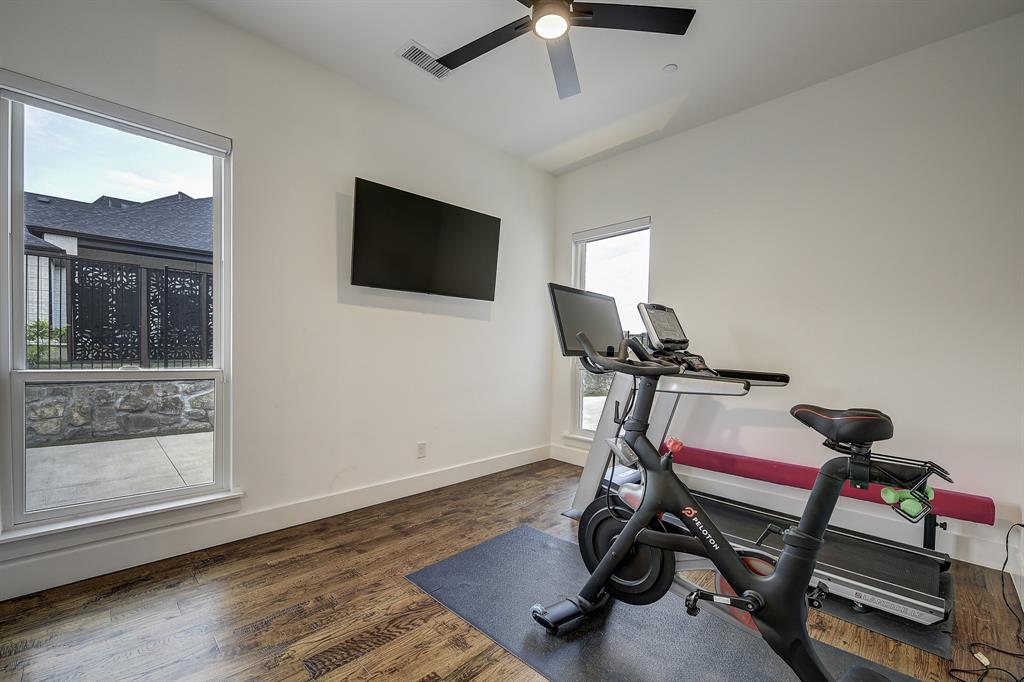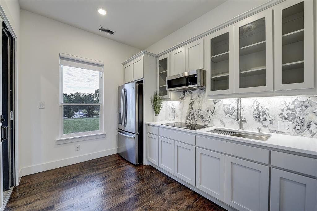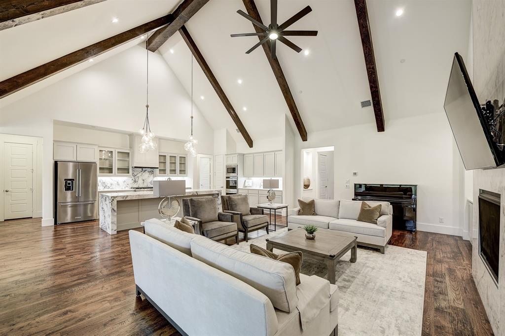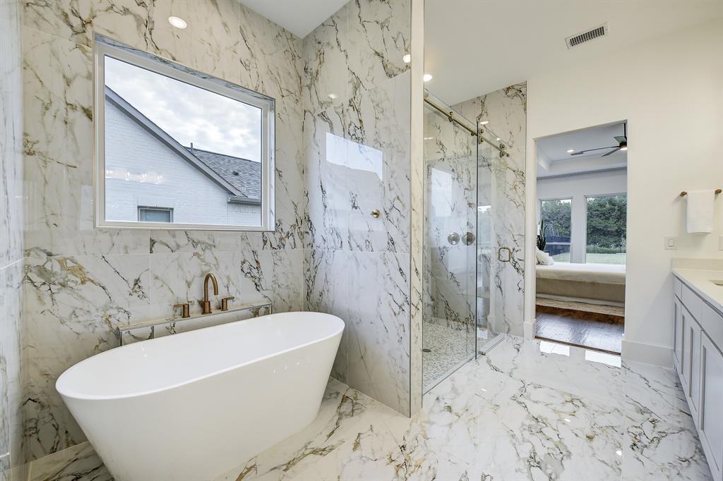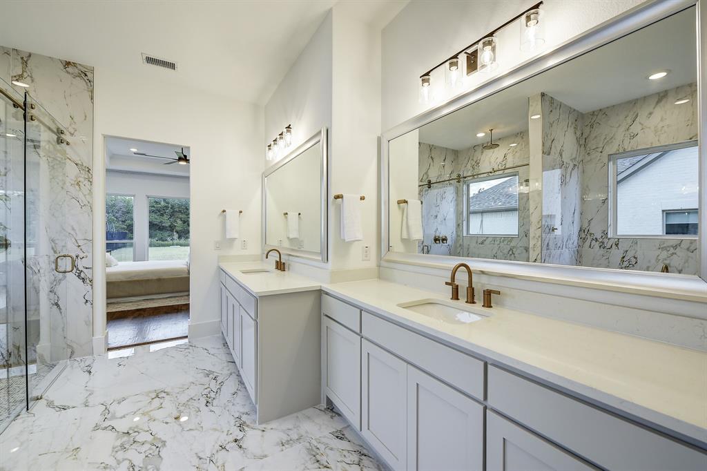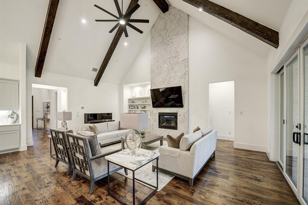 Stunning Modern Home in Prestigious Brockdale Estates located within the highly acclaimed Lovejoy ISD, this exquisite property offers a rare combination of elegance, functionality, and scenic beauty-with Lake Lavon adjacent to your backyard. A private mother-in-law suite with its own kitchen, living room, bonus room, laundry, bedroom, bathroom with frameless showerdoor, and separate garage entry makes this home ideal for multigenerational living or hosting extended guests in comfort and style, complete with an extended driveway for convenience. Inside, the open floor plan is filled with natural light pouring through expansive windows showcasing rich dark hardwood floors, beamed vaulted ceilings, custom built-ins, and a striking floor to ceiling tile like marble fireplace in the main living area. The chef’s kitchen is an entertainer’s dream, featuring a massive waterfall-edge marble island, stainless steel appliances, 6 burner gas stove, double ovens, marble backsplash, designer lighting, abundant custom cabinetry, and a large walk-in pantry with custom cabinets. The open floor plan extends to the large formal dining room with designer chandelier. The primary suite is a serene retreat with tray ceilings, oversized windows framing backyard views and a luxurious en-suite bath complete with dual vanities, large frameless glass shower with rainhead, a soaking tub, and a spacious walk-in closet with shelving-plus a built-in safe room for peace of mind. Additional highlights include a media room with tray ceilings and upgraded Cat 6 wiring, dedicated office with French doors, enclosed sunroom, dual garages with EV plugs, two tankless water heaters, fire sprinkler system, and a security system for modern comfort and efficiency. Set on a half-acre lot with a large covered patio and plenty of grassy space for play and entertaining, and backed by a tree-lined landscape leading toward Lake Lavon, this home perfectly blends modern sophistication with natural serenity.