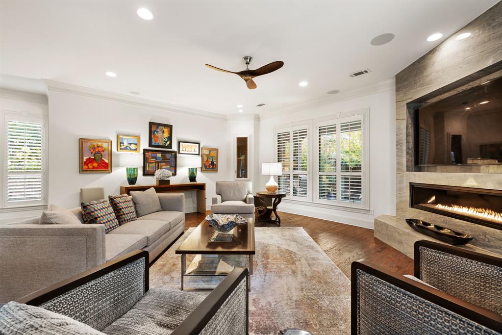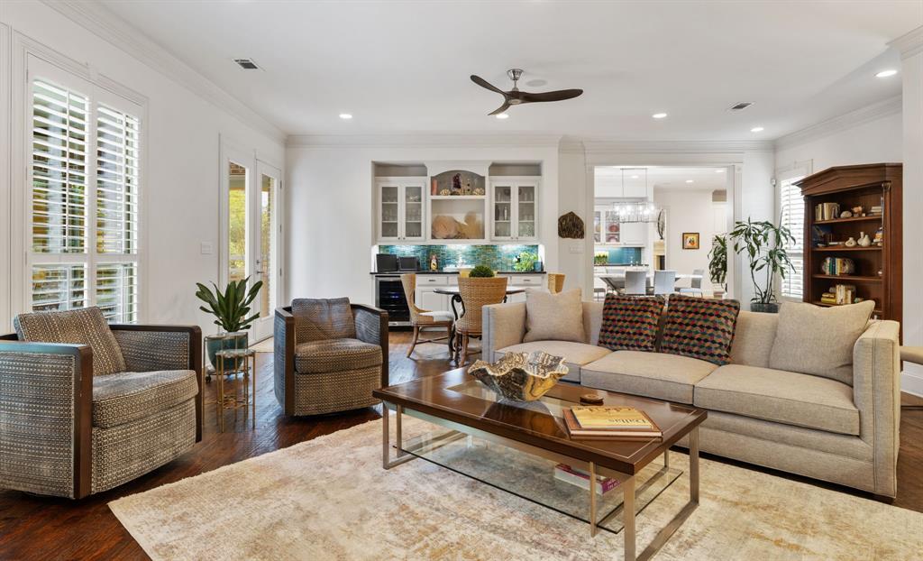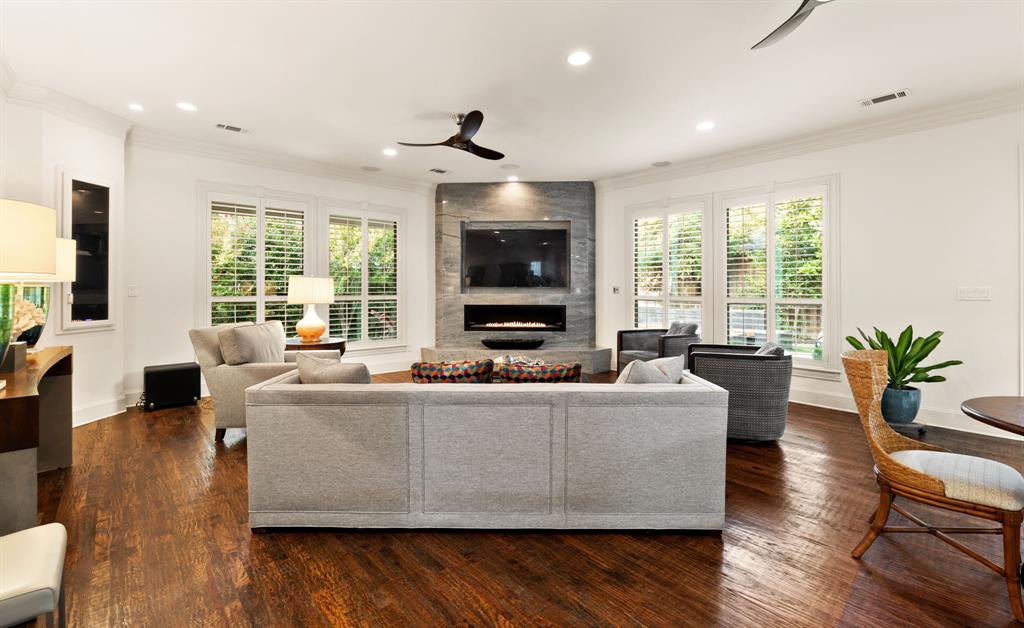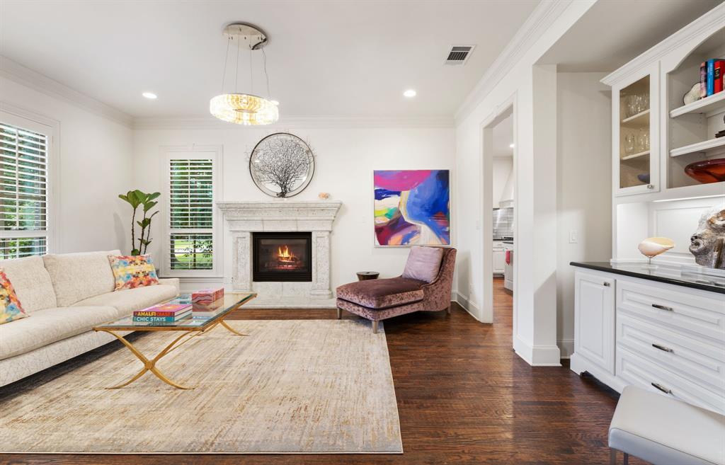 Great Room: Open floor plan with new fireplace, enhanced bar, updated paint and hardware