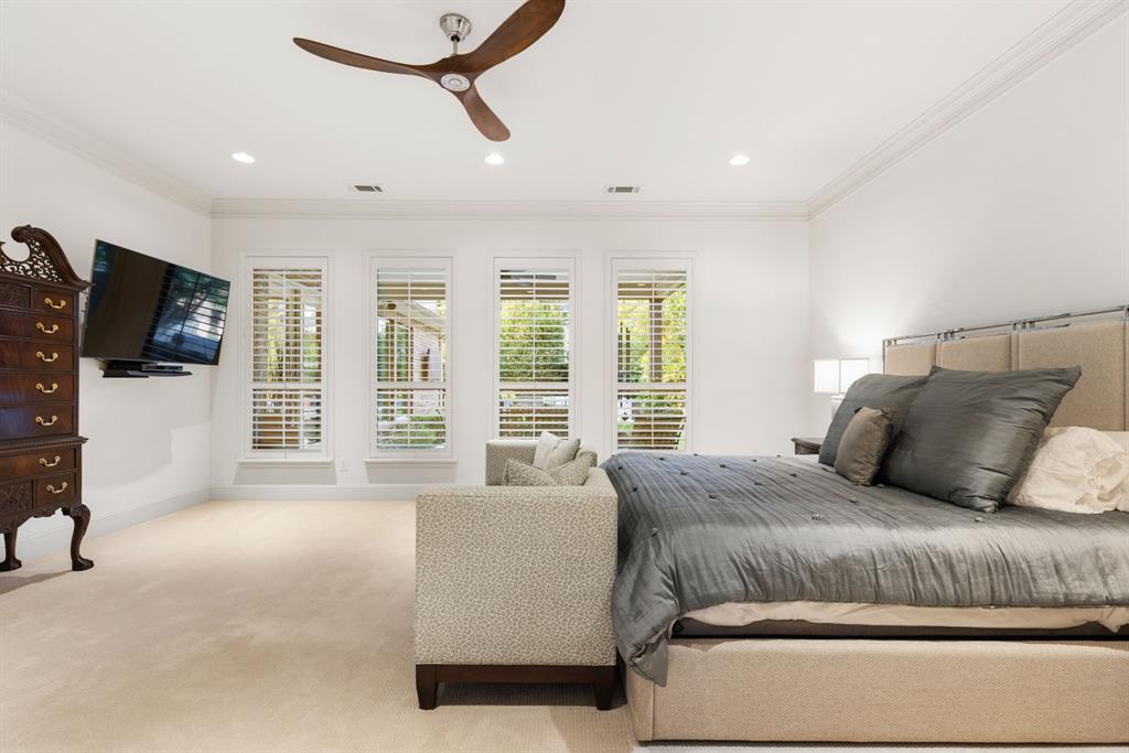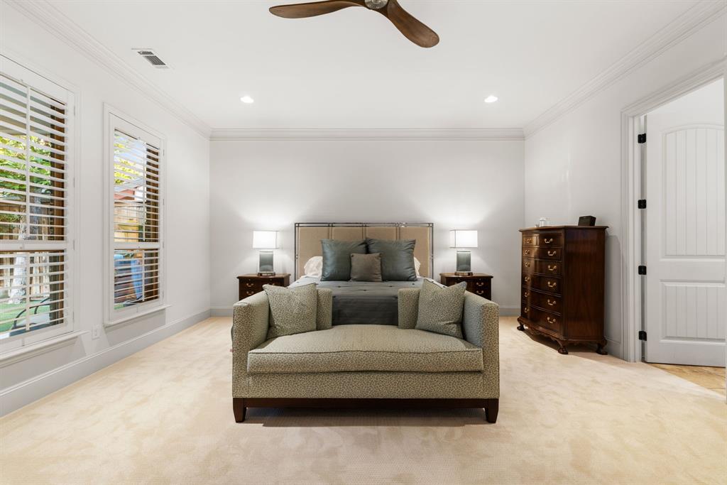 Downstairs Primary Suite: Spacious retreat with sitting area, spa-like bath, and walk-in closet