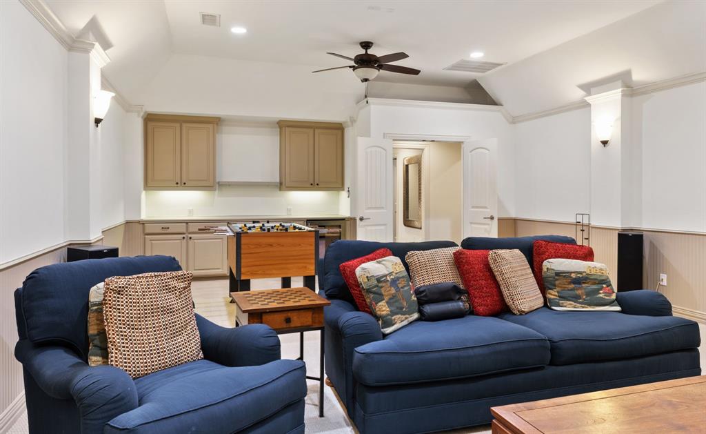 Upstairs Living: Three ensuite bedrooms with hardwoods plus a grand game room with wet bar