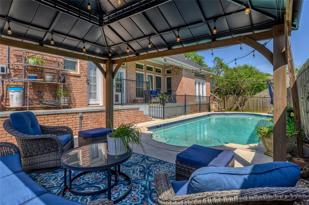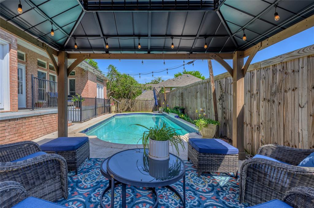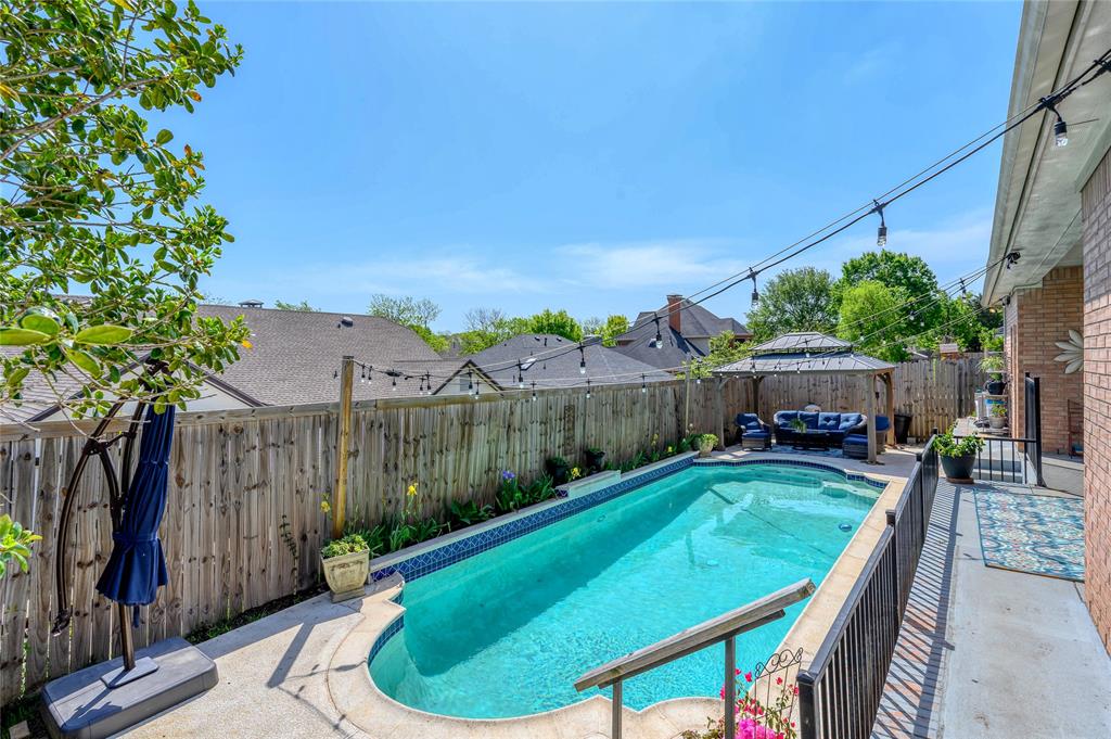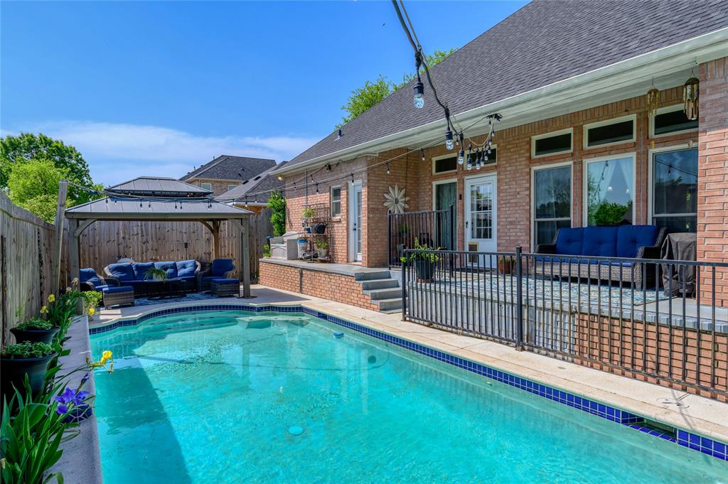 Out back, enjoy your own personal oasis—an inviting pool, mature landscaping, and plenty of space to lounge, play, or entertain.