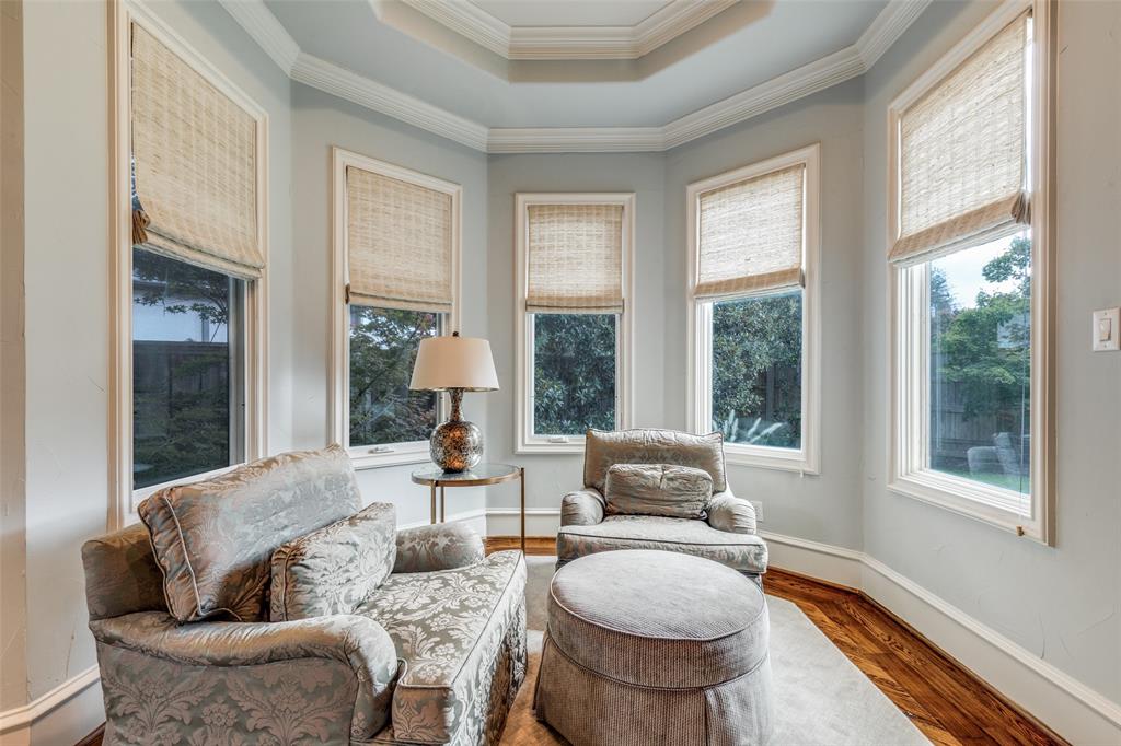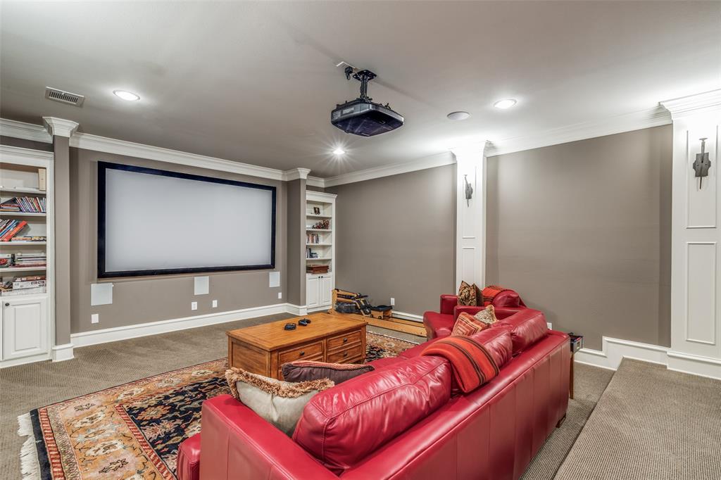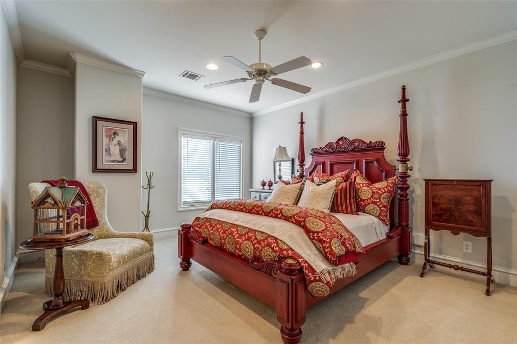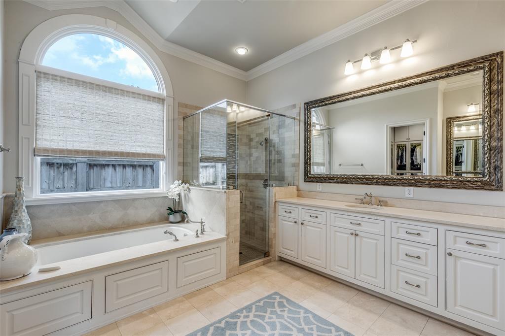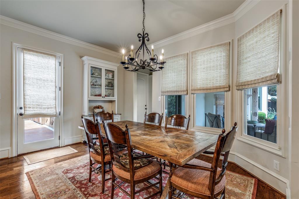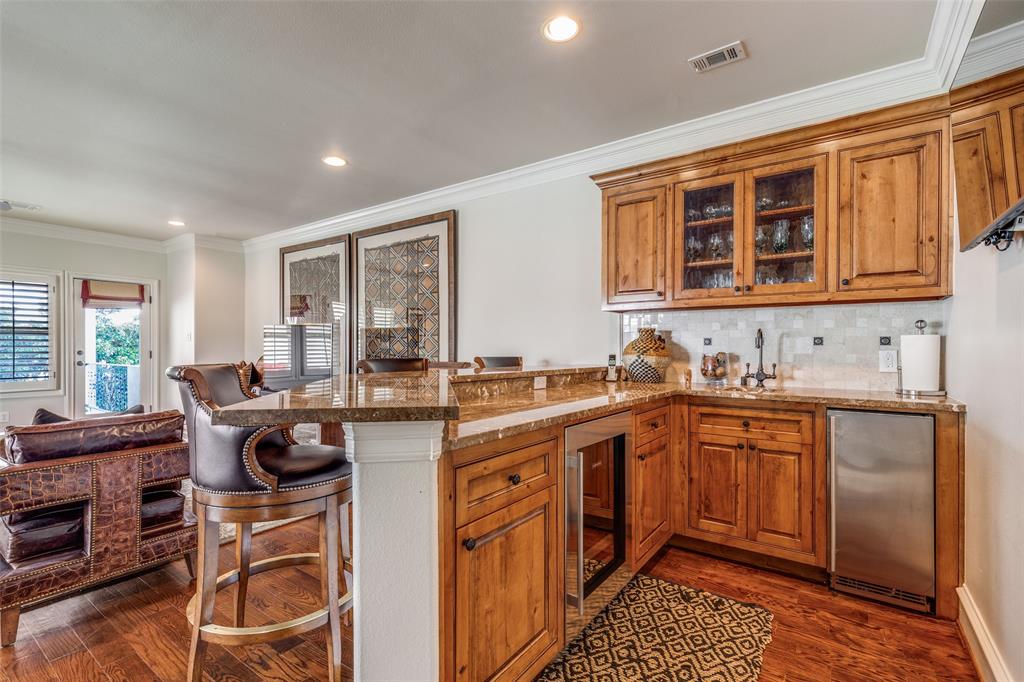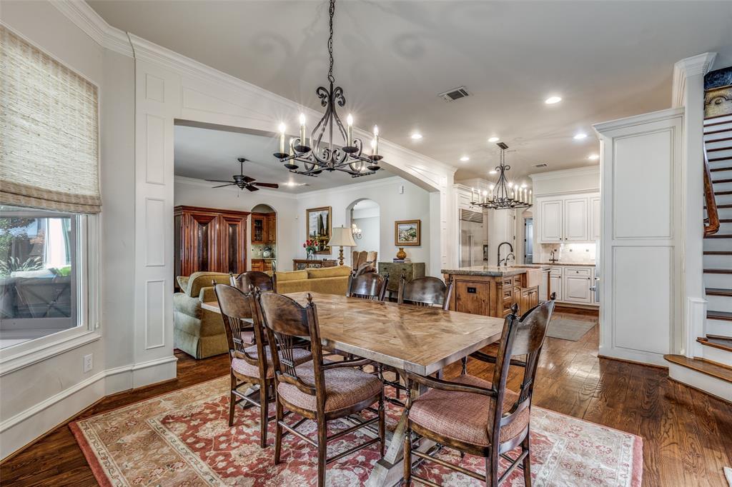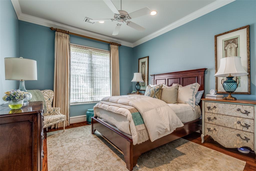 Beautifully maintained classic Mediterranean style home located on great block close to Preston Royal. Beautifully landscaped yard with circular drive in front and covered patio with fireplace in rear. First floor primary bedroom has sitting area, spacious bath with jetted tub, separate shower, double vanities and custom closet with wardrobes. Family room with fireplace views rear yard and patio and is open to kitchen. Kitchen has island with copper sink, marble countertop, builtin Subzero refrigerator, Viking 6 burner range and separate bar sink. Adjacent breakfast area. First floor also has spacious private office, open dining room, and additional bedroom and ensuite bath. Two sets of stairs lead to second level which comprises a large living area with wet bat, great storage and an upstairs balcony, media room, 3 bedrooms with ensuite baths, and a bonus room for crafts or exercise! A 2 car garage and separate 1 car garage create flexible parking options. Great floorplan for family living and entertaining!