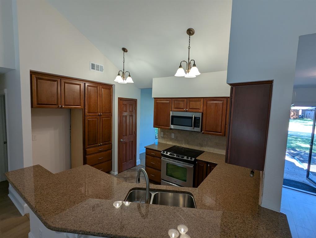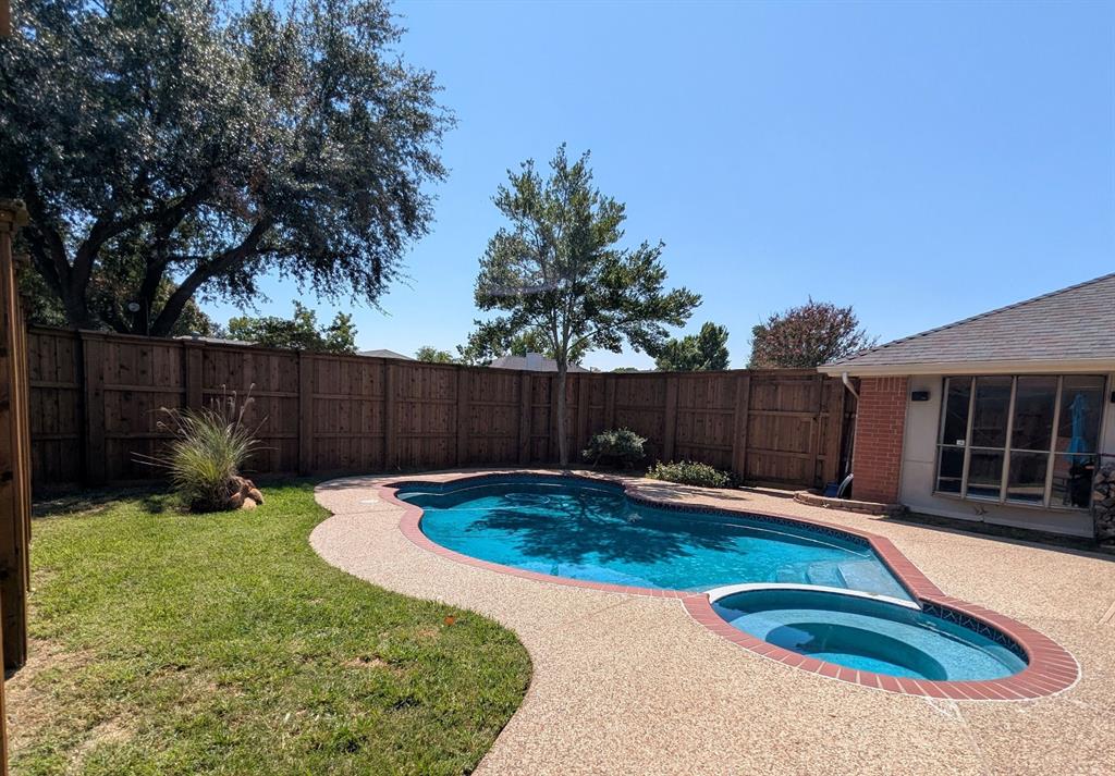 No HOA Wonderfully updated custom in North Mesquite. Beautiful kitchen, formal dining, and Living room with pretty fireplace a perfect place to relax when it's cold outside. This home also offers a backyard tropical paradise with pool and hot tub. Add great schools, EVP floors, fresh paint, master bath with separate shower, this home is perfect for your family. Beautifully updated Ranch Style Home in Mesquite! INCLUDING: New EVP flooring, fresh paint, new fixtures, granite countertops. Great location close to schools, parks and shopping, walking distance to Mesquite Heritage Trail and local Parks, Beasley Elementary and Kimbrough Middle School. North facing home offers open floor plan and is beautifully updated. Sidewalk can be repaired through the city of Mesquite at half price, about $700