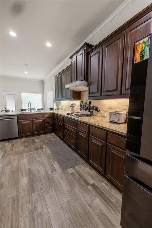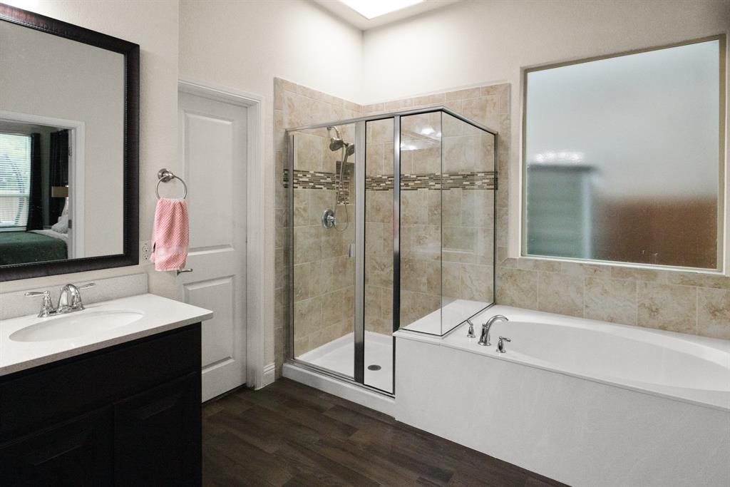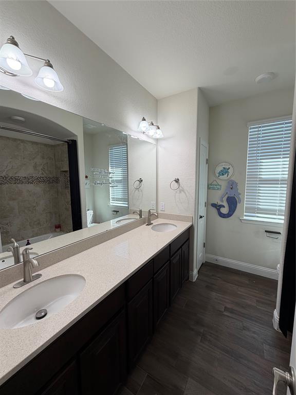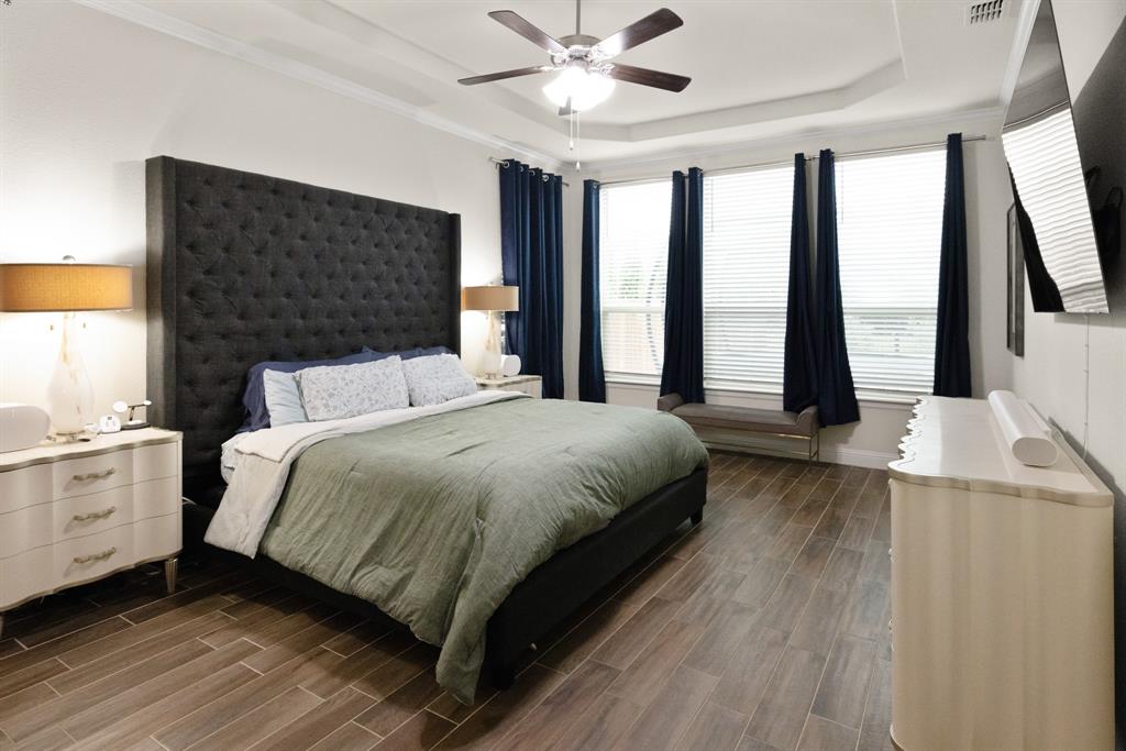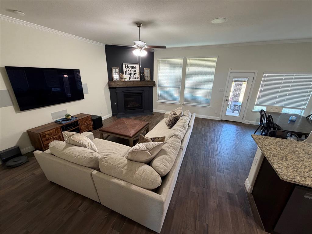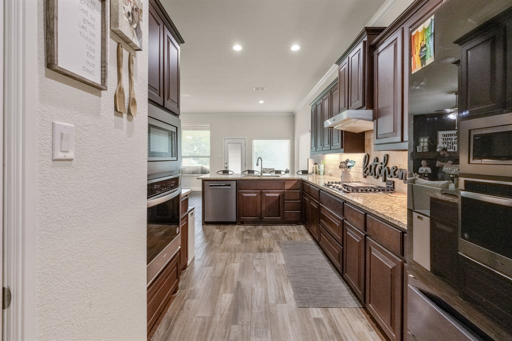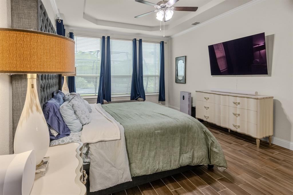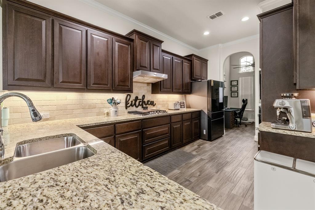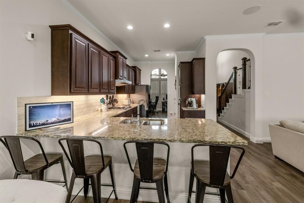 Immaculate 2-story home in Morningstar with 4 beds, 2.5 baths, 2,644 sq ft, and backing to a greenbelt for added privacy. Open-concept layout with numerous upgrades throughout. Living room features built-in Premier in-wall theater system, 8K receiver, and 77 in. TV (included). Kitchen offers upgraded appliances, including a new Signature Series dishwasher.