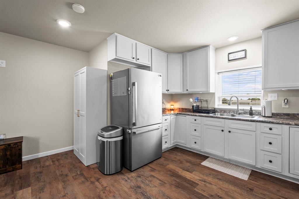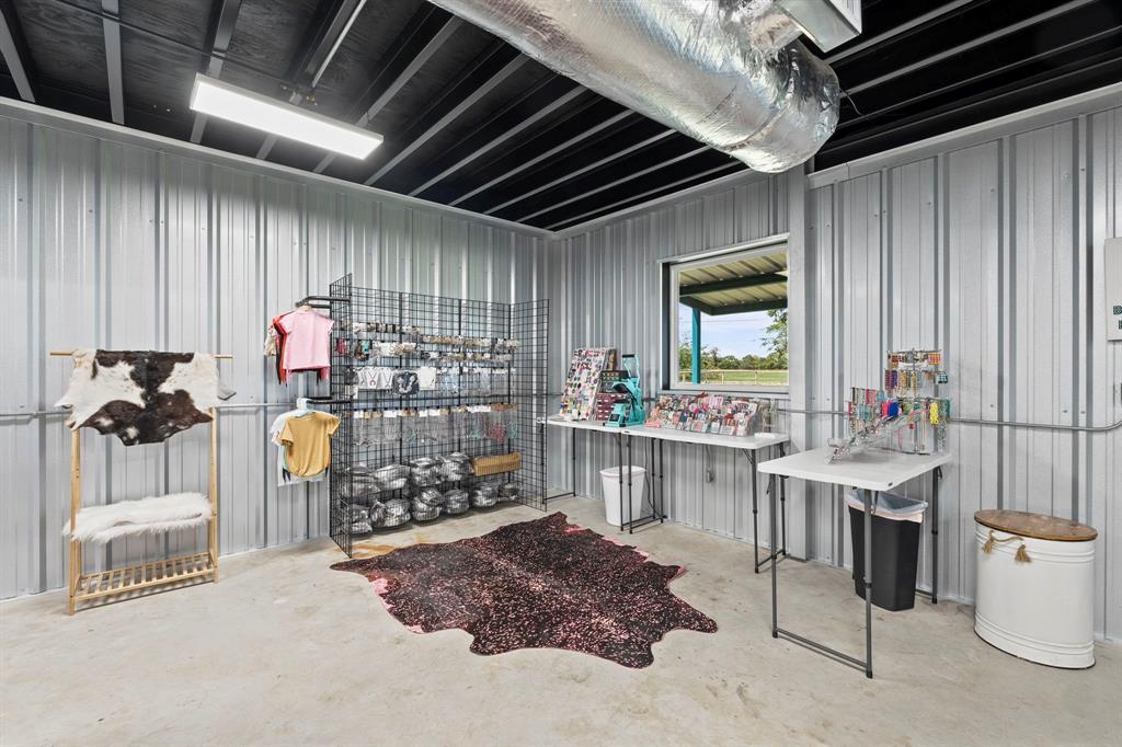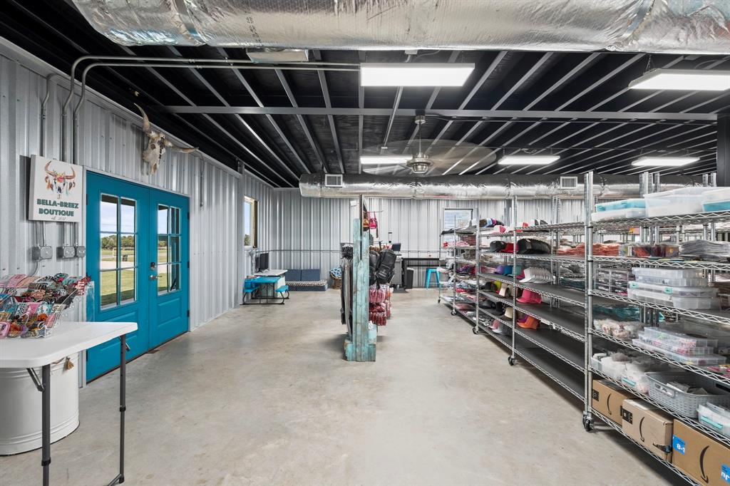 The design provides flexible use for both living and work. Downstairs includes a finished 2 car garage, mechanical room, and a break room with wet bar and half bath, along with a large workshop and storage area with an additional half bath. Upstairs offers the main living quarters with 2 bedrooms and 1.5 baths, plus an expansive open storage space of more than 3,000 sq ft, all fully climate controlled. In total, the property offers over 6,800 sq ft under roof, a rare find among barndominium style builds.