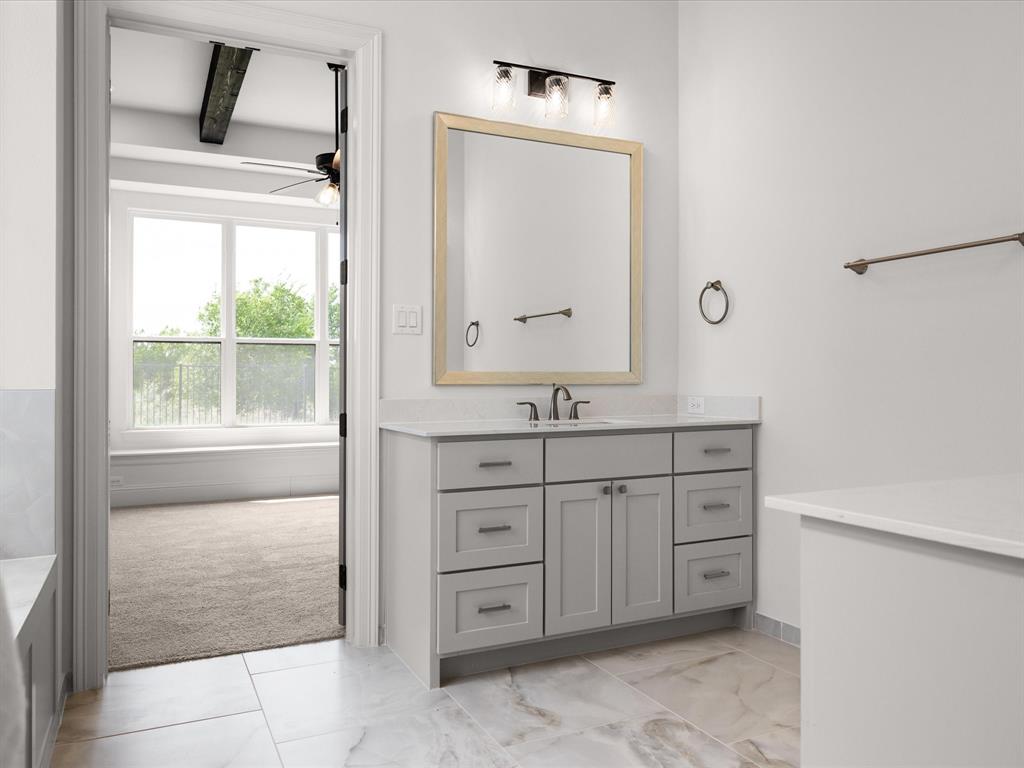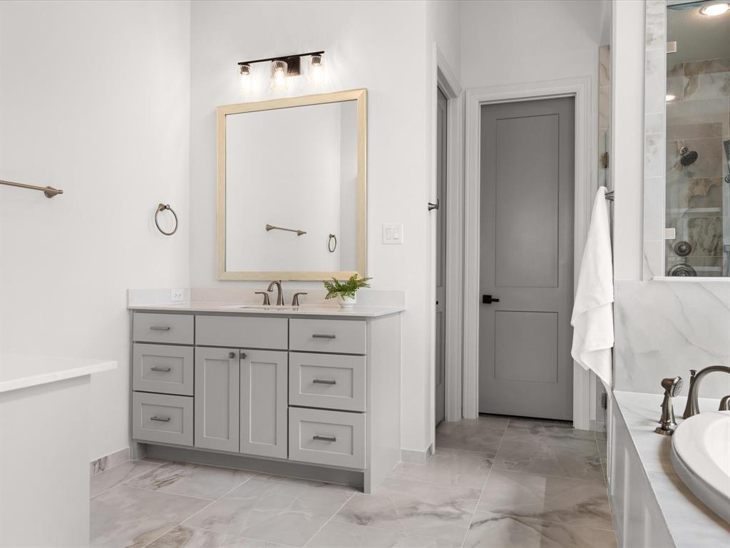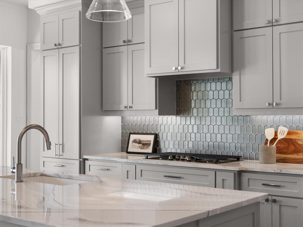 7104 Prairie Ridge Road is a Windmiller Homes estate in Argyle, Texas, located in Argyle ISD. The home has a stone and brick exterior with strong curb appeal. Inside, the open floor plan includes a family room with high ceilings and a modern fireplace, a kitchen with a large quartz island, custom cabinetry, double ovens, designer backsplash, and walk-in pantry. The primary suite features dual vanities, soaking tub, walk-in shower, and a large closet. A second bedroom is located downstairs, while the upstairs offers two additional bedrooms with walk-in closets and baths, along with a sitting room and open loft overlooking the main living area. The home also includes a formal dining room, study, covered patio, and dual garages. Located minutes from major highways, shopping, and dining, this property combines location, design, and functionality.