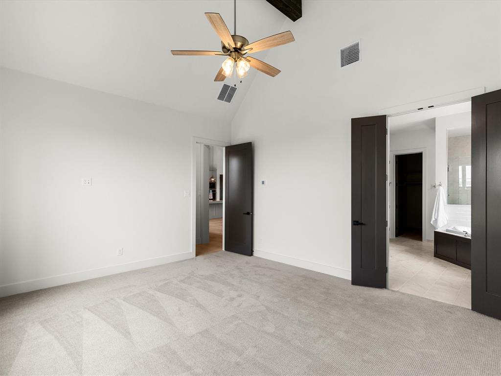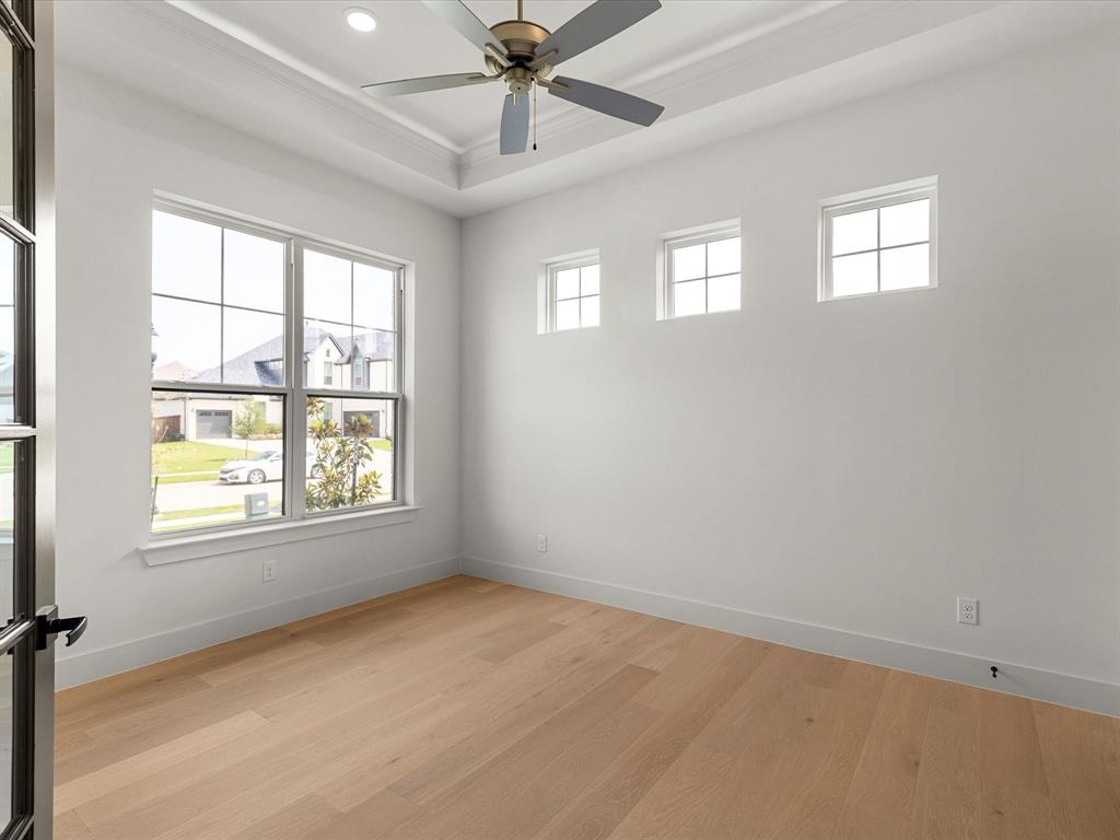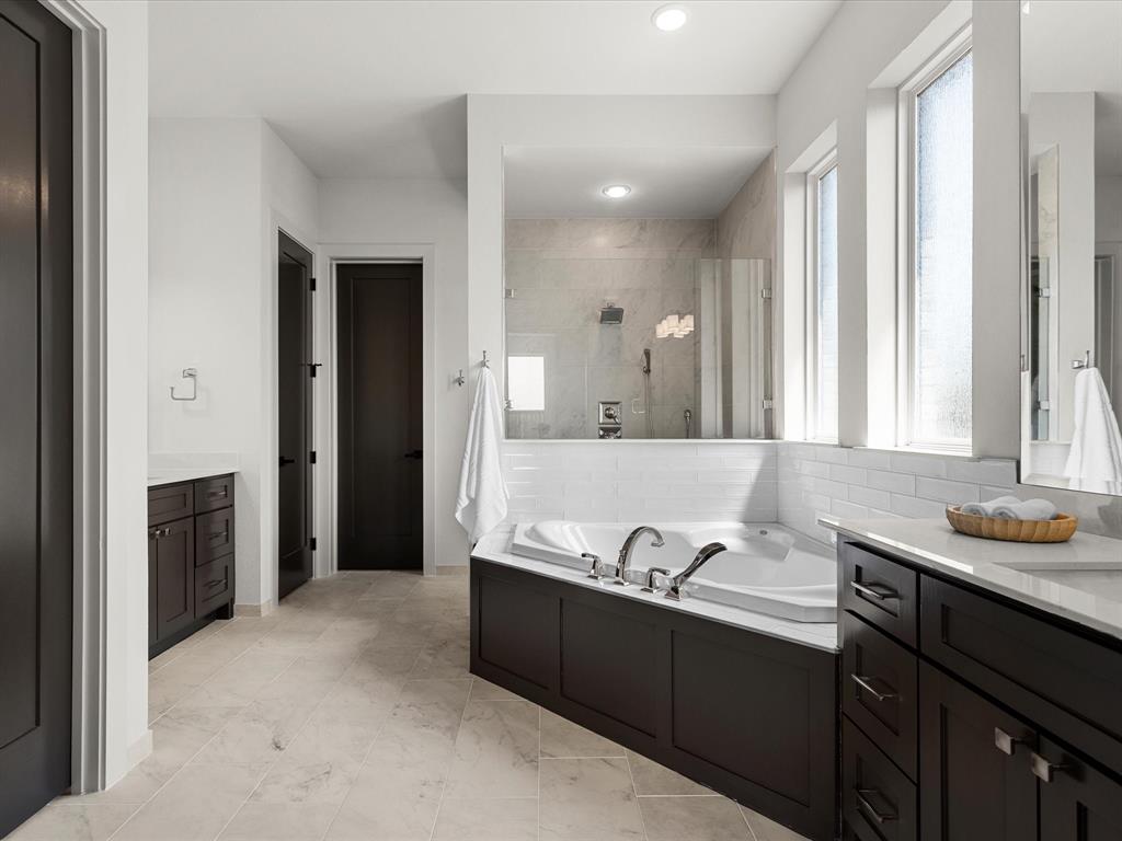 The luxurious primary suite offers a spa-like retreat with a soaking tub, oversized walk-in shower, dual vanities, and an expansive closet. Two additional bedrooms each come with private baths, giving everyone their own space and privacy. A dedicated study and elegant dining room add flexibility and function.