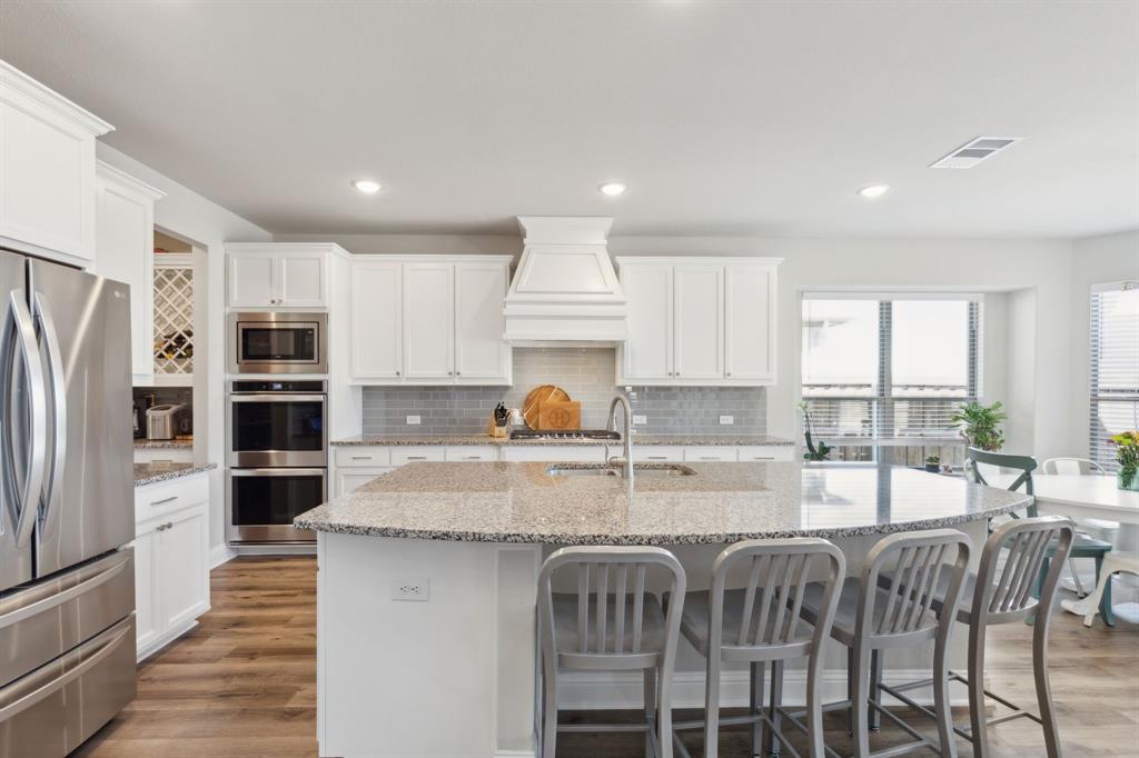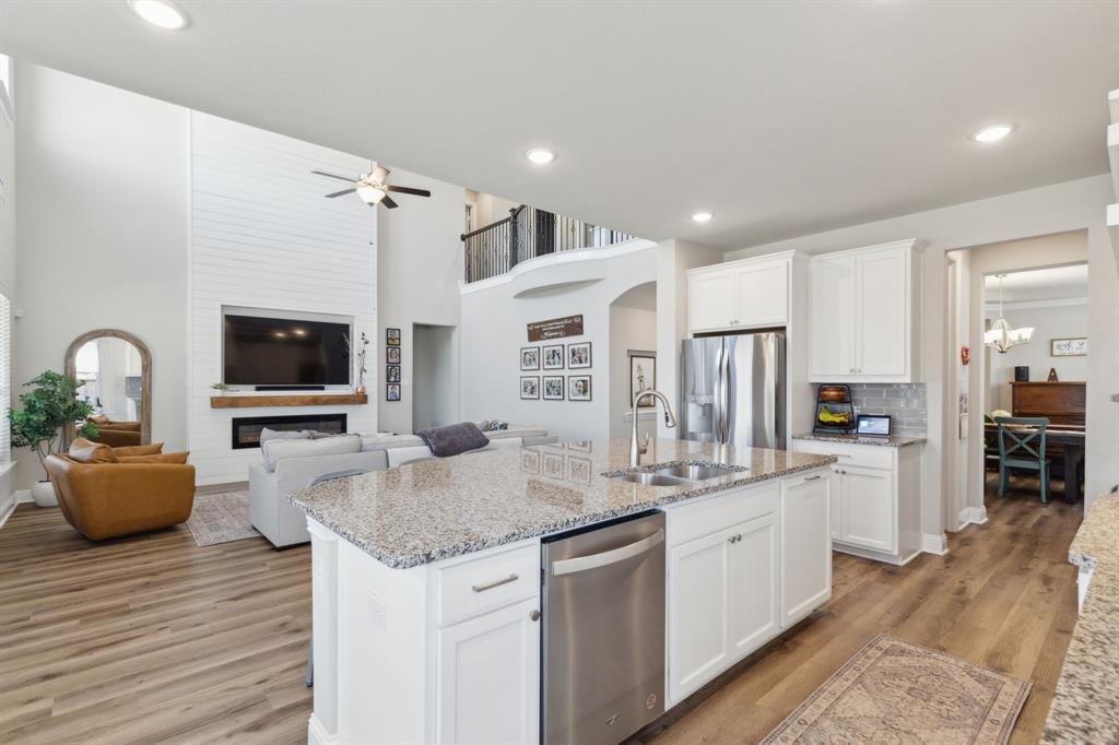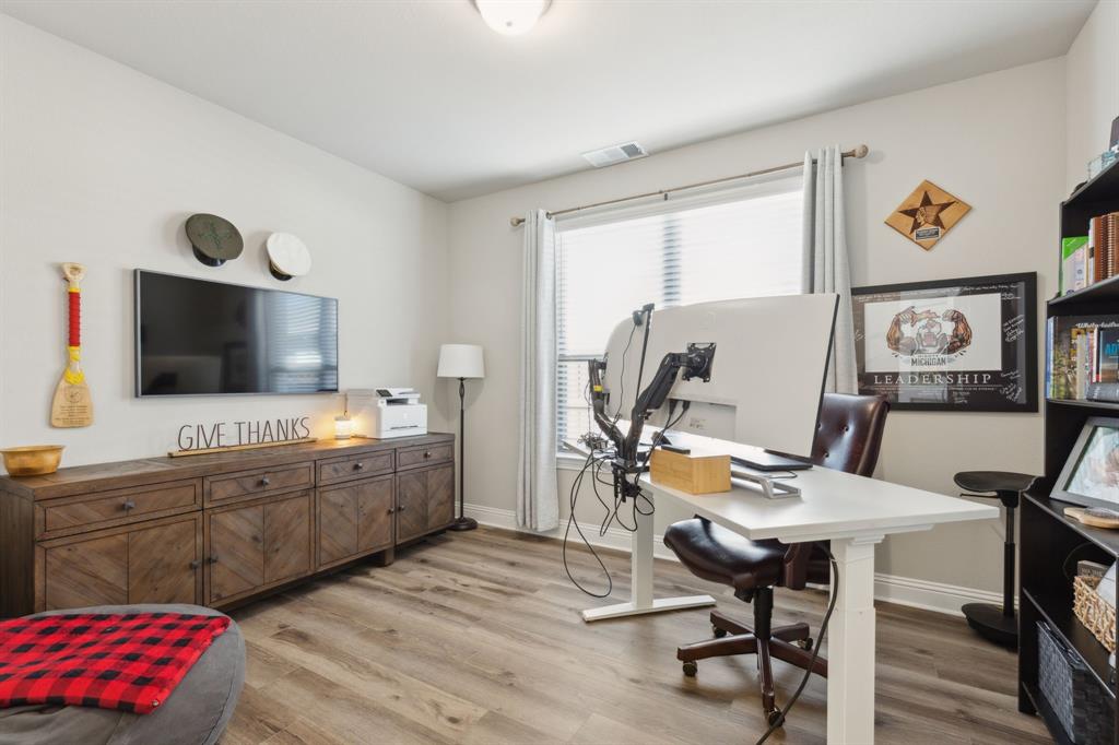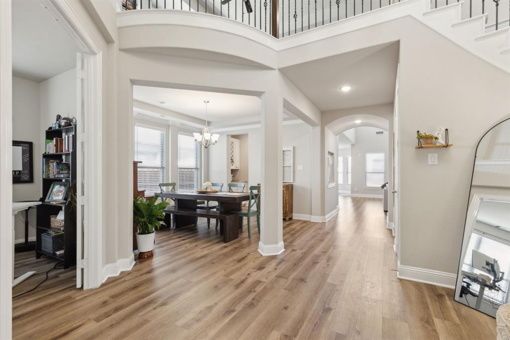 ****VA BUYERS - THERE IS AN ASSUMABLE LOAN IN PLACE AT A CURRENT INTEREST RATE OF 5.125%. PLEASE INQUIRE WITH LISTING AGENT FOR MORE INFORMATION. BETTER THAN NEW, meticulously maintained home. Space. Space. And more space! This modern 5 bedroom, 4.5 bathroom home is perfect for those who love a blend of comfort and style. Looks and feels never-lived-in with the added benefits of new landscaping, new custom 2 story fireplace wall, newly installed cabinet hardware, window treatments, included appliances, epoxy flooring in the garage and more! As you step inside, you'll be greeted by an open floor plan that effortlessly connects the living spaces, making it ideal for both relaxing and entertaining. The main living area features expansive windows that flood the space with natural light, highlighting the sleek finishes and contemporary design. The kitchen is a culinary dream, boasting high-end appliances and plenty of counter space to inspire your next gourmet meal. Retreat to the main level luxurious primary suite, complete with a spa-like bathroom that offers a peaceful escape at the end of the day. With four additional bedrooms, there's plenty of room for guests. This home also has a designated office space, 3 garage stalls, a bonus room, and a theater room…you’ll never want to leave home! Located on a quiet street with an unobstructed view in the backyard in the prestigious South Pointe Subdivision this home is conveniently located next to major highways and shopping; offering a perfect blend of tranquility, privacy, and accessibility. The subdivision also features highly rated Mansfield elementary, intermediate, and middle schools all within walking distance and community pool. This home won’t last much longer! Come take a look for yourself at what could be your new home at 1706 Trellis Drive in Mansfield, TX!