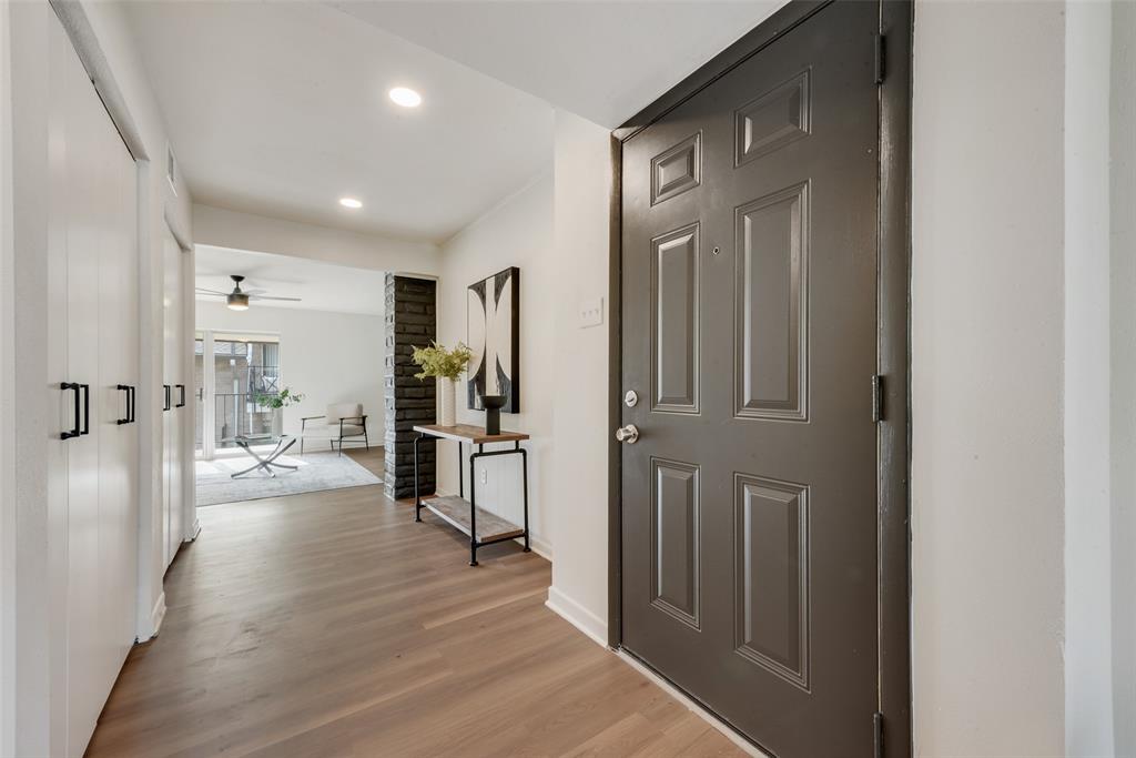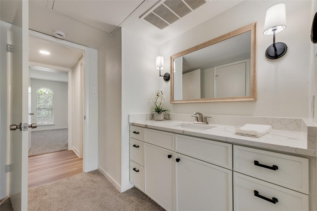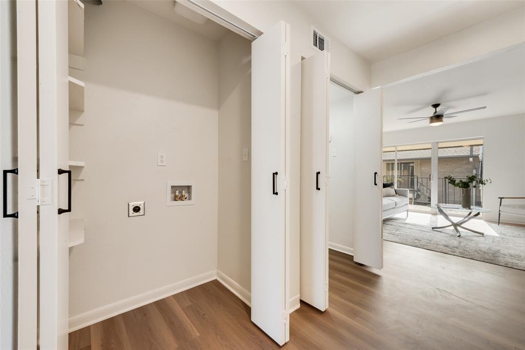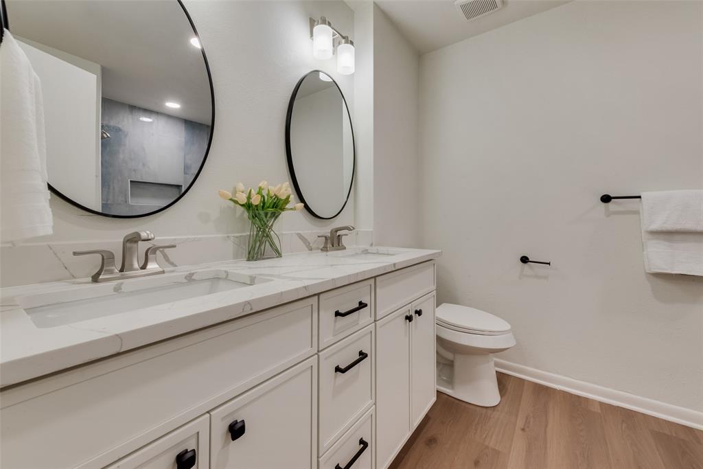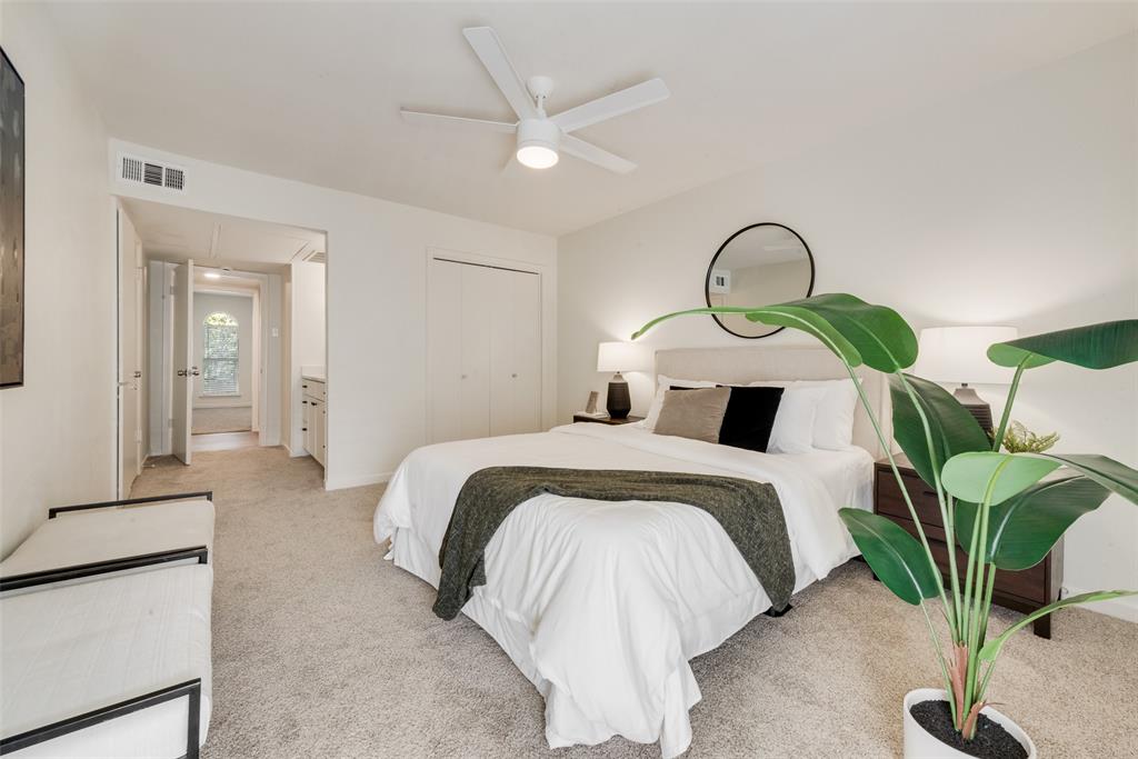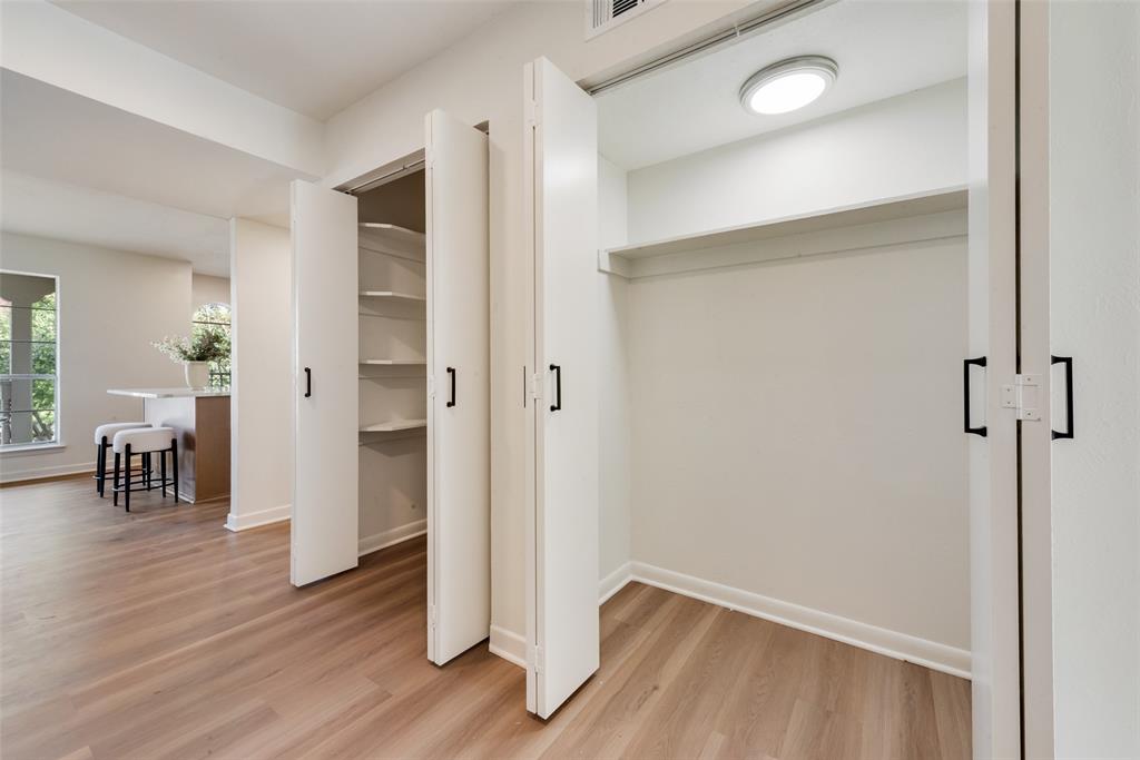 The spa-inspired bathroom is also all new and includes a double vanity and designer tile surround. Great storage throughout with lots of closet space. Separate second vanity is located near the primary walk-in closet for added ease. New flooring, fixtures, paint, and a smartly designed laundry area complete the home. Two conveniently assigned parking spaces right near the front door.