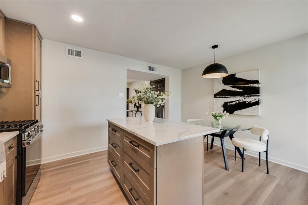 Enjoy relaxing in your spacious living room with plenty of natural light and a cozy fireplace. The stunning remodeled kitchen features quartz countertops, wood cabinets, brand-new stainless-steel appliances, a large island and two pantries.