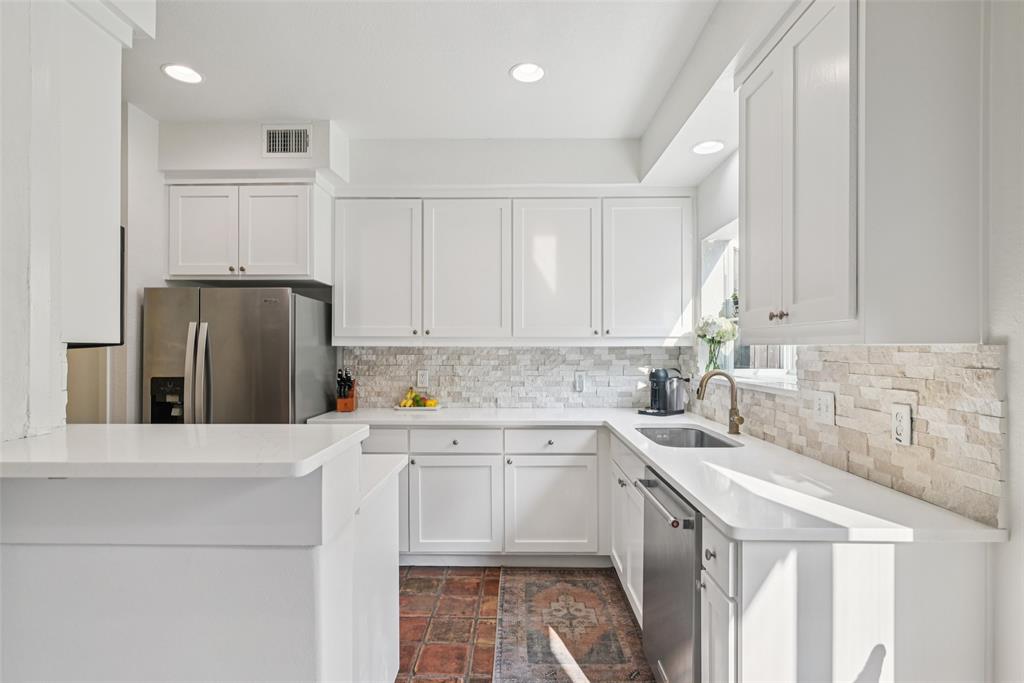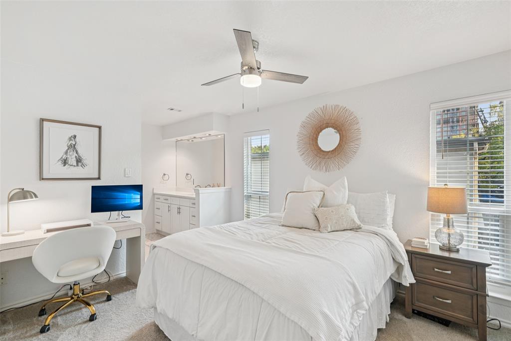 MULTIPLE OFFERS ~ OFFER DEADLINE 5pm FRIDAY SEP 5. Sophisticated updates, abundant natural light, and an unbeatable location define this stylish two-story condo. The open living and dining areas are anchored by a sleek fireplace and chic wet bar, with oversized windows filling the space with sunshine. The kitchen has been reimagined with clean-lined cabinetry, quartz countertops, and stainless-steel appliances. A downstairs half bath with a distinctive vanity completes the main level with flair.