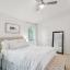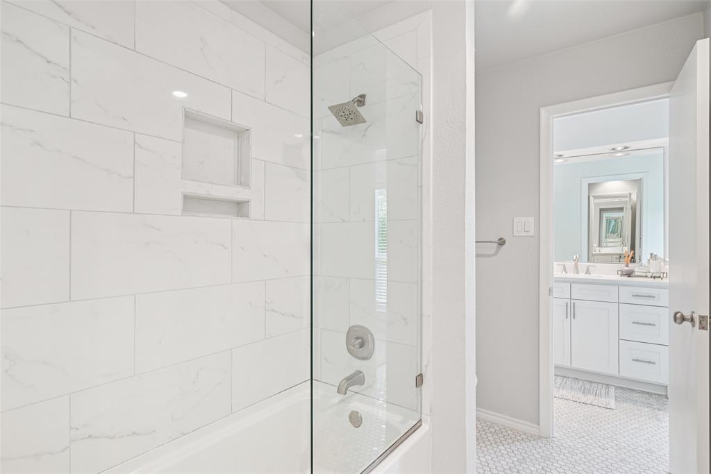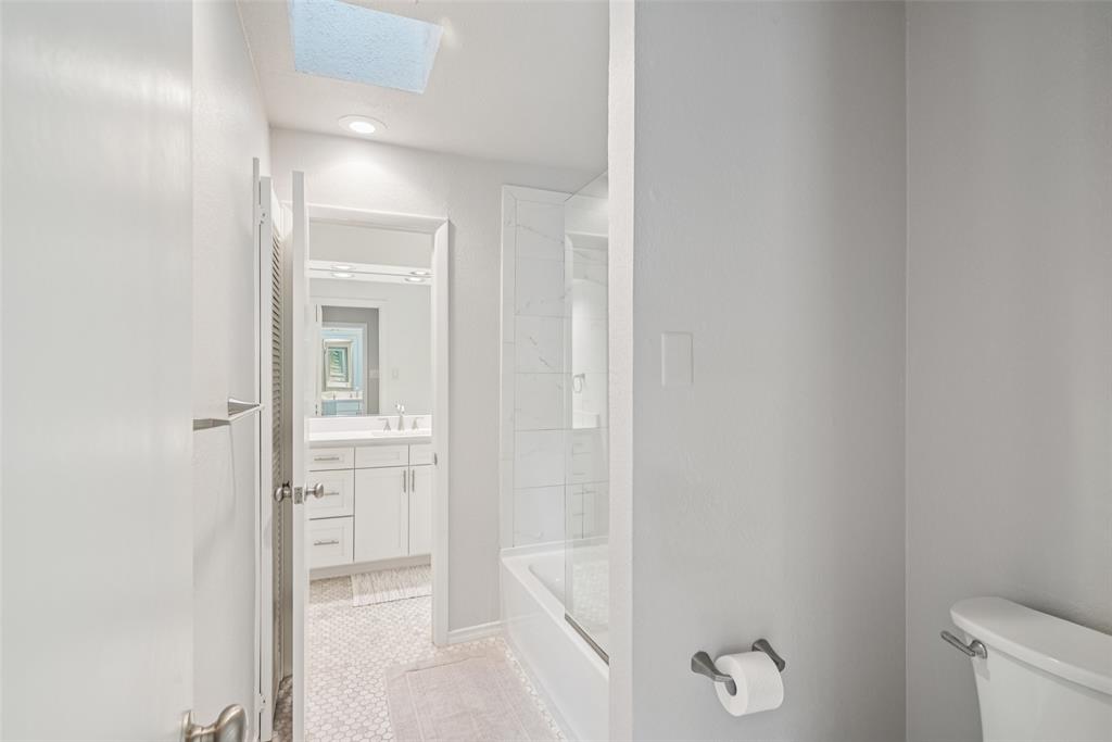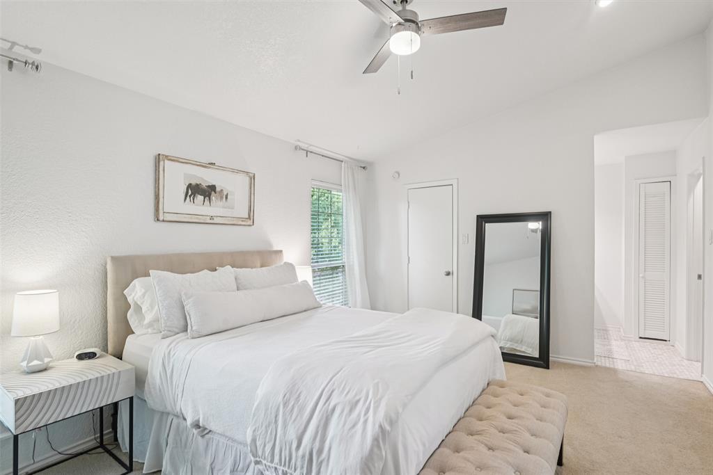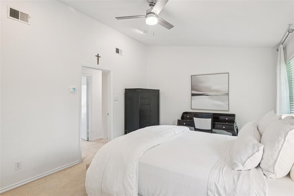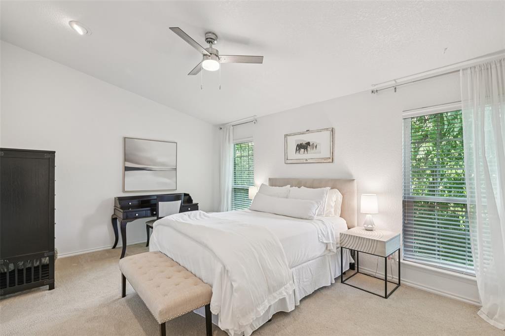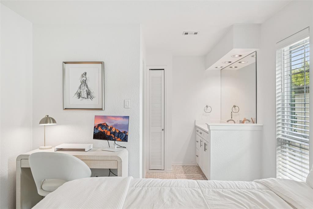 Upstairs, two serene bedrooms with vaulted ceilings create inviting retreats, whether for restful nights or flexible daytime use. Between them, a Jack & Jill bath features crisp finishes and private vanities, blending convenience with style.
