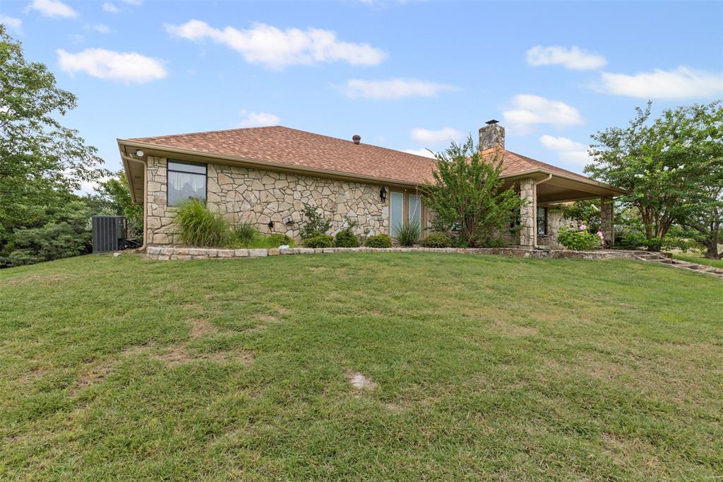 This is The Home with a view! Custom home strategically placed on 12 acres to enjoy a captivating view. Perfect quiet country living in Glen Rose! Stone exterior, big back porch to enjoy the view. Great room with vaulted ceiling, wood-burning fireplace & room for second dining area. Kitchen has island & lots of cabinets. 880 sq ft outbuilding with half bath and separate septic. Large kennels or pens with concrete slabs, provides lots of possibilities. Large update-remodel completed approximately 10 years ago.