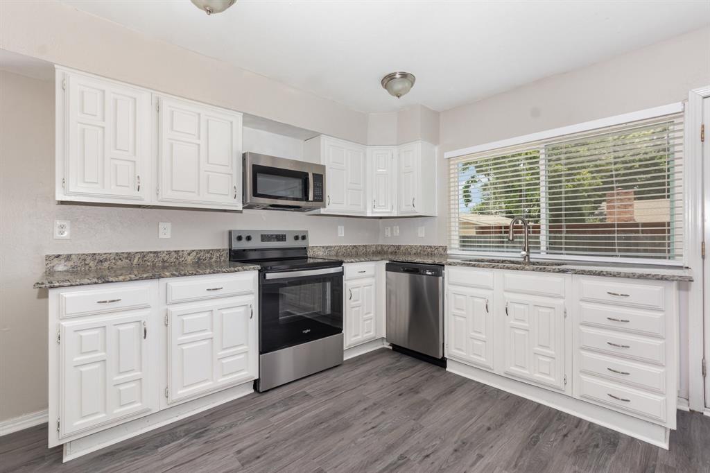 Updated home close to park and trails. Updated baths with pedestal sinks and updated fixtures. Kitchen features granite countertops, stainless steel appliances and painted cabinetry. Large wet bar off the living room also features granite countertops and is adjacent to the dining room. Oversized master bedroom with two separate closets. Kitchen and breakfast area overlooking spacious wood-fenced back yard. Easy access to shopping, dining and Central Expressway.