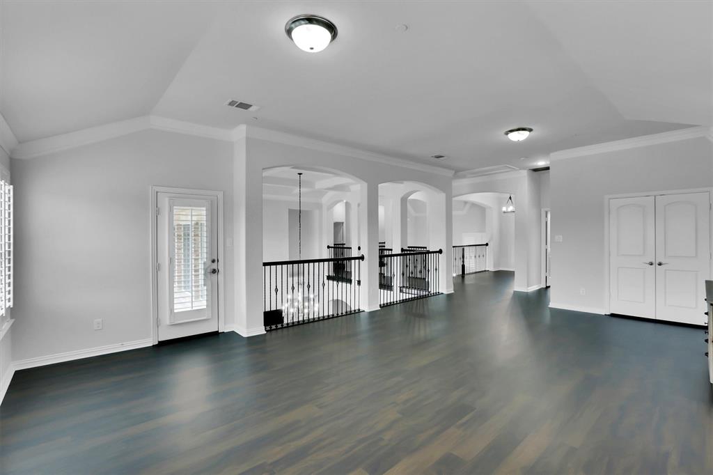 Stunning spacious home perfect for entertaining! On corner lot of cul de sac with 3 car garage! Beautiful open entry with soaring ceilings & striking staircase! Formal dining off entry! Gorgeous wood flooring, updated light fixtures. 2 story family room boasts lots of light! Spacious kitchen with large island, beautiful white cabinetry, granite counters, & SS appliances! HUGE master retreat with sitting area & spacious bath with double vanities, HUGE walk-in shower, custom closet, & extra flex space! Upstairs offers 3 large bedrooms PLUS a HUGE game room with balcony, office niche & impressive media room with Juliette balcony! Luxurious custom details & finishes! Large laundry! New Roof and HVAC in last two years. Owner may consider lease with option to purchase. Listing Broker is related to Owner.